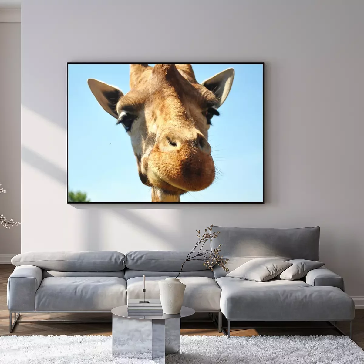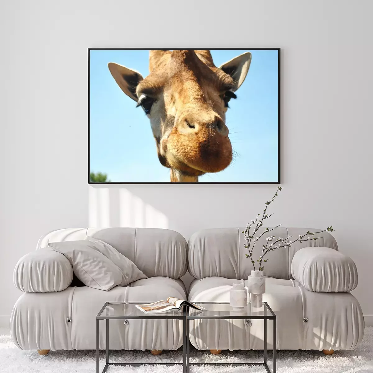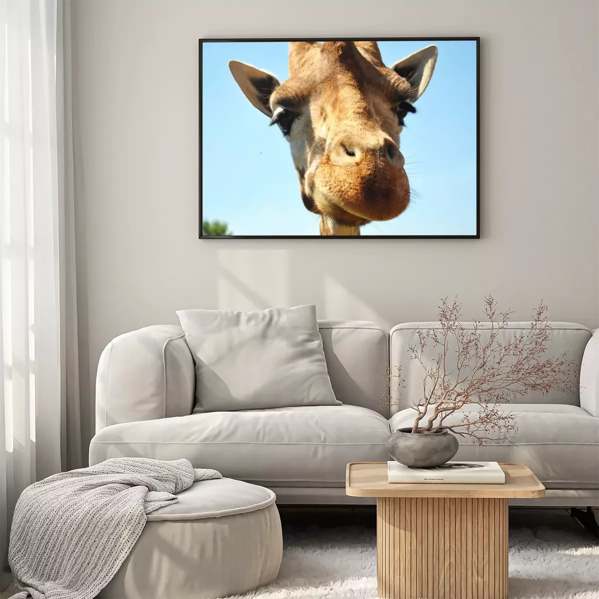 Poster: Lächelnde Giraffe in Nahaufnahme