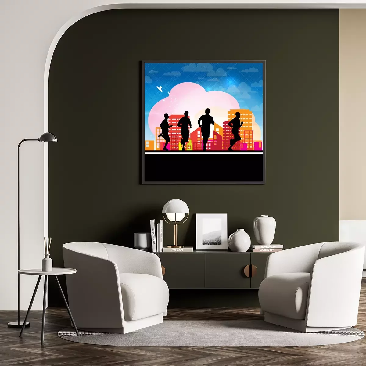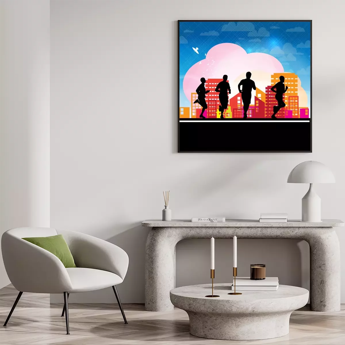 Poster: Läufer auf einem Stadthintergrund