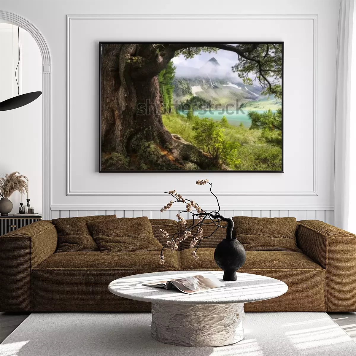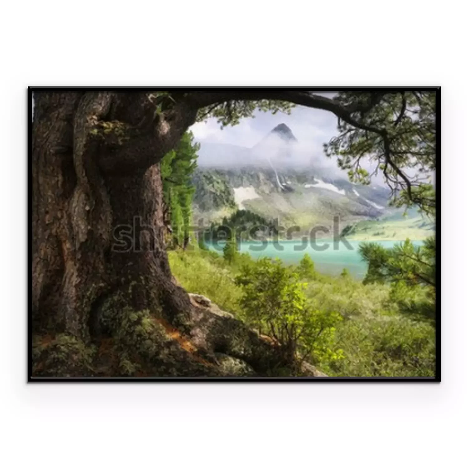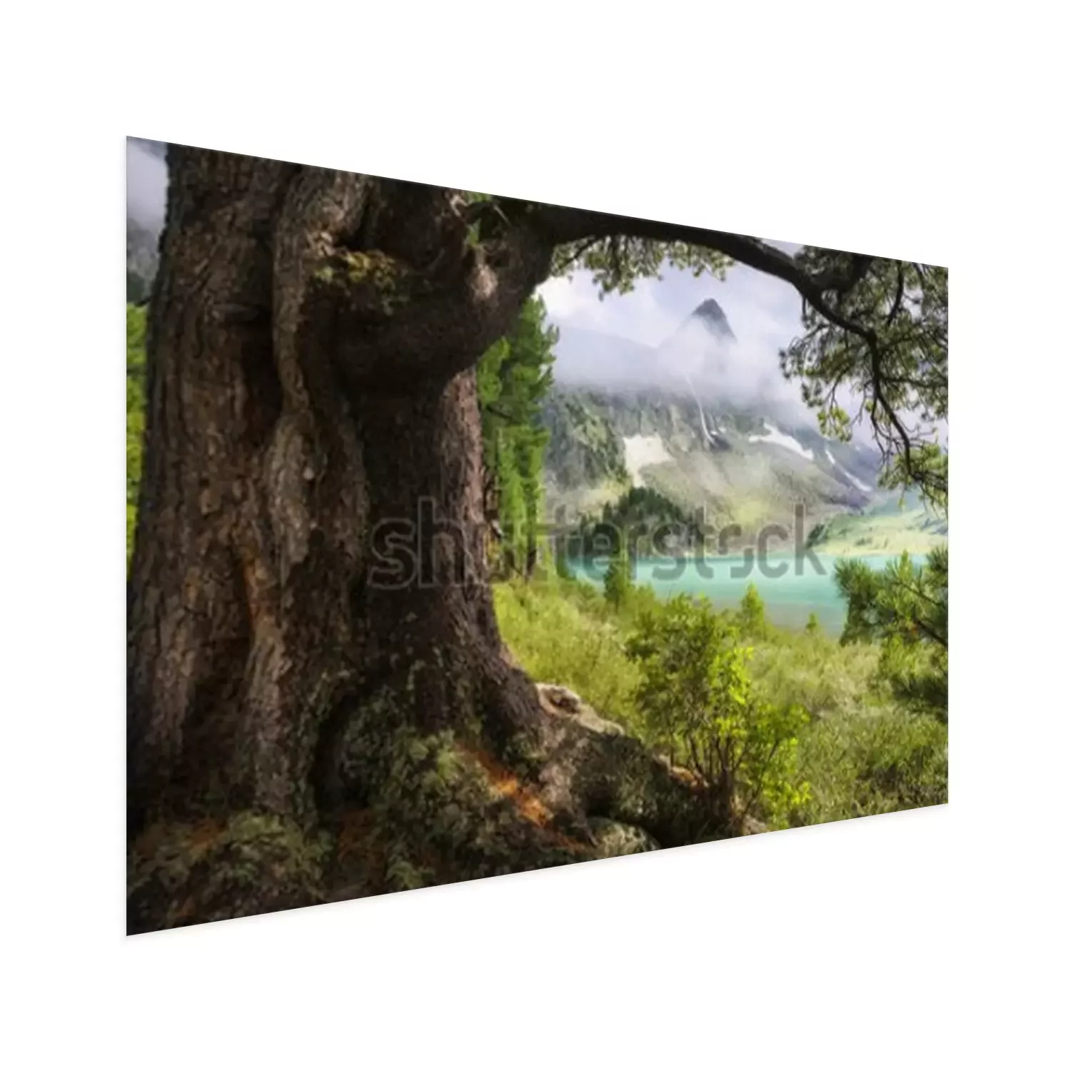 Poster: Landschaft Berge im Hintergrund Wald