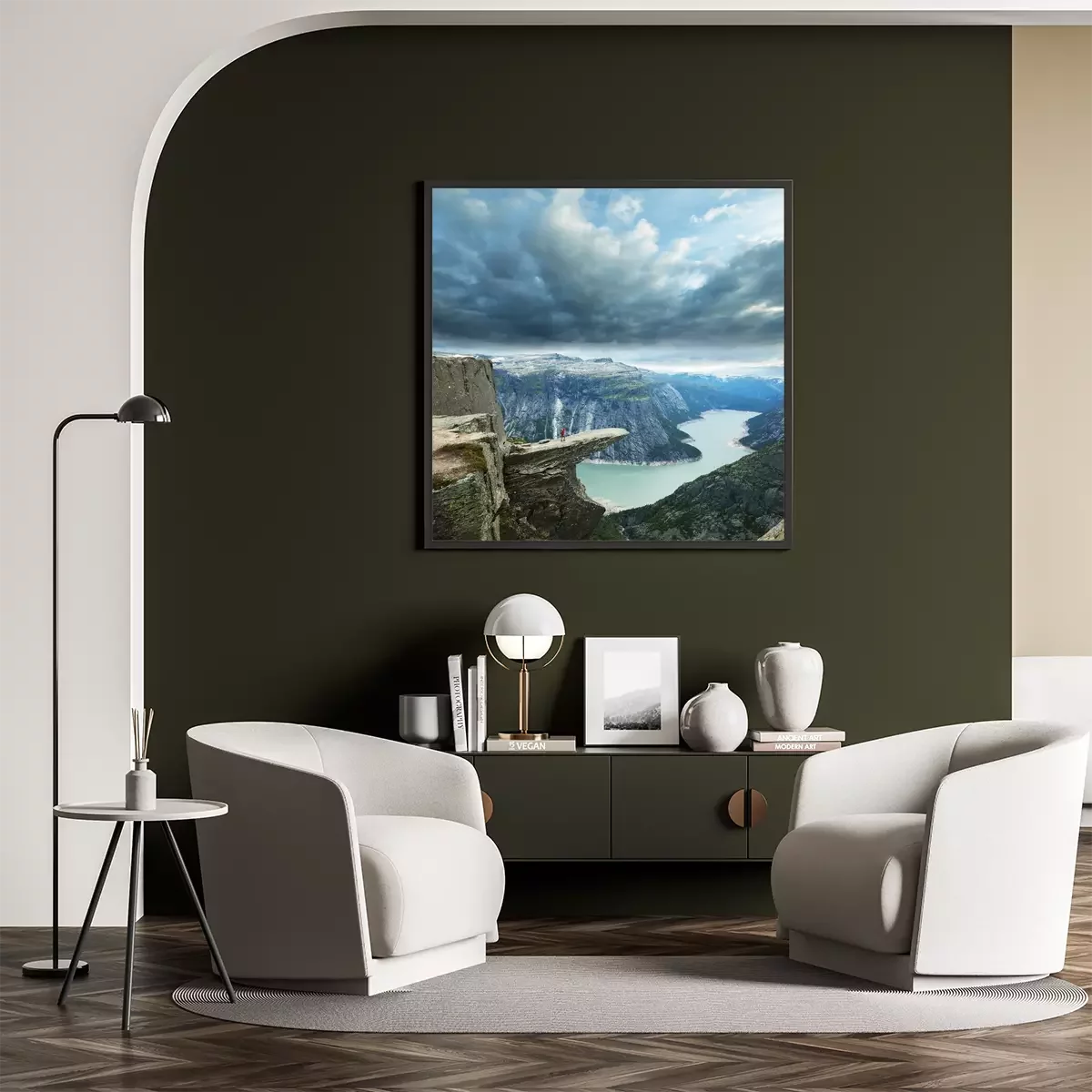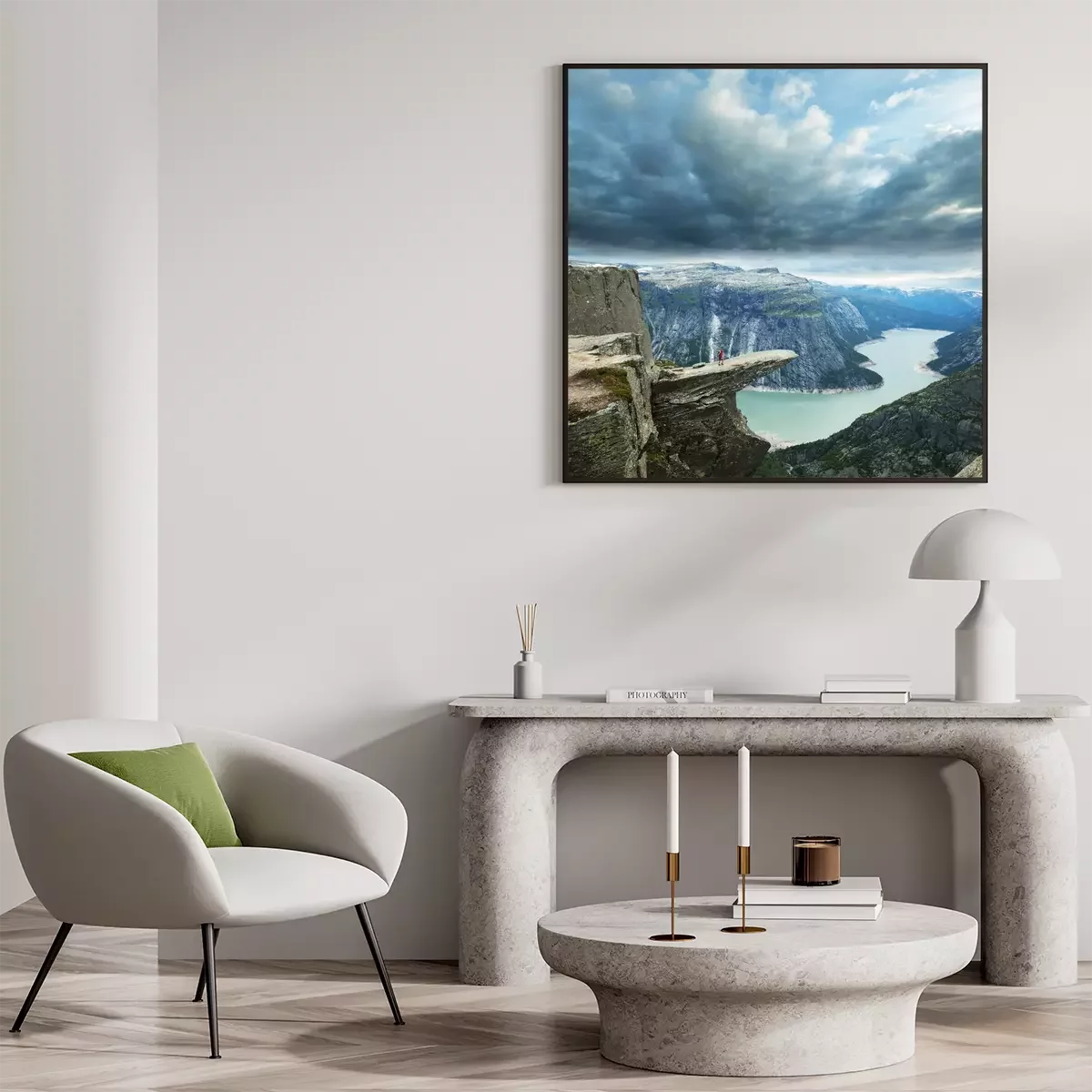 Poster: Landschaft mit einem Mann auf einer Klippe
