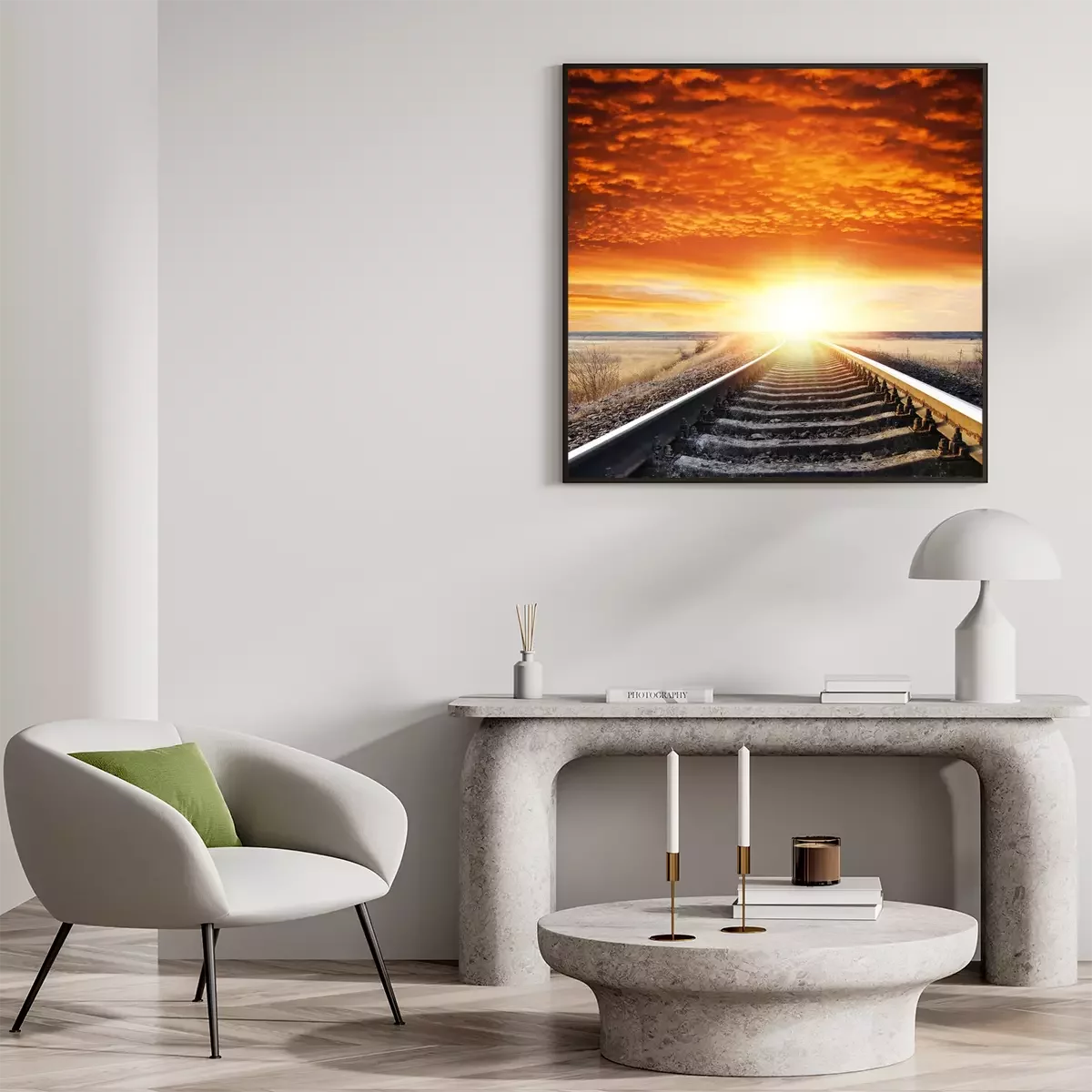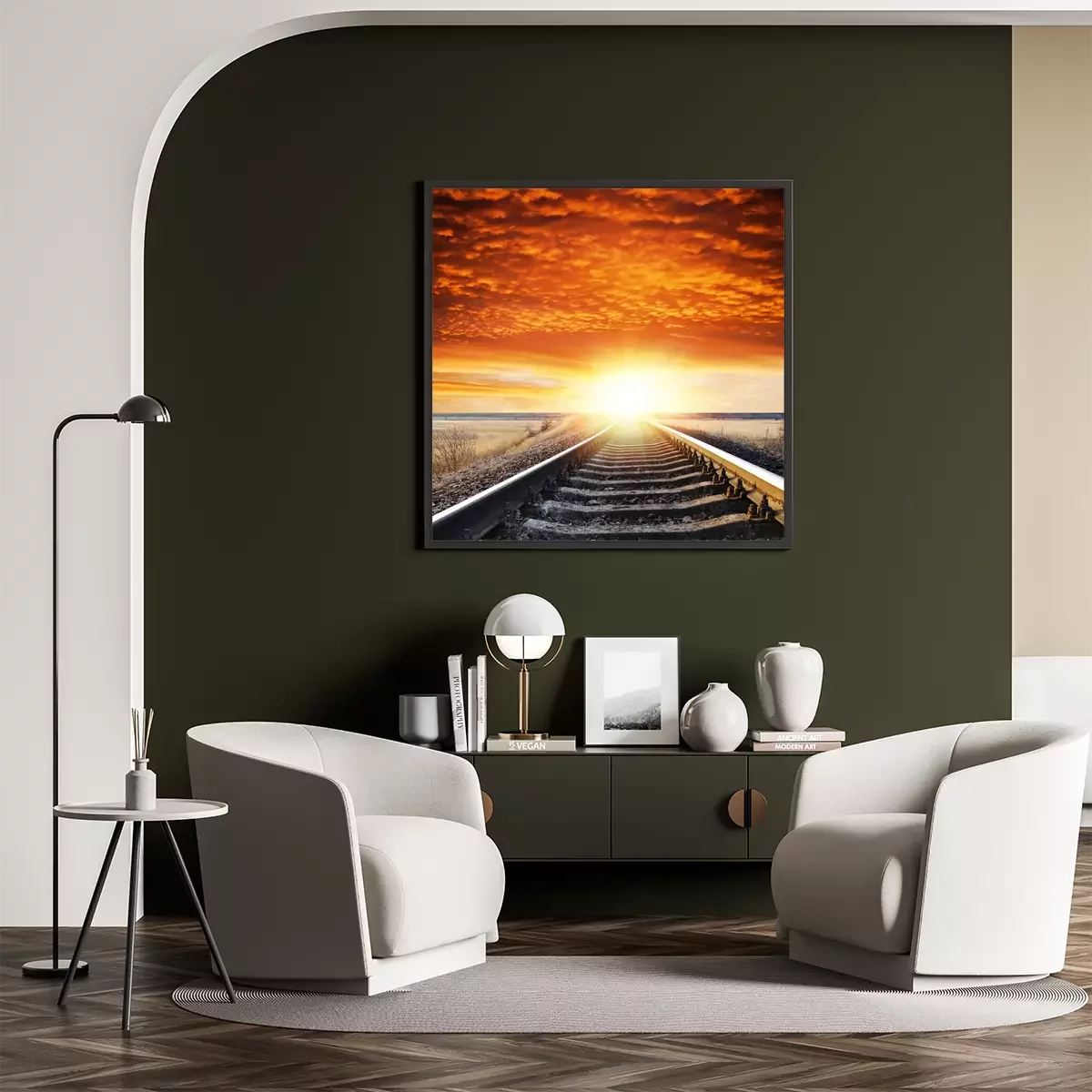 Poster: Landschaft mit Eisenbahnschienen