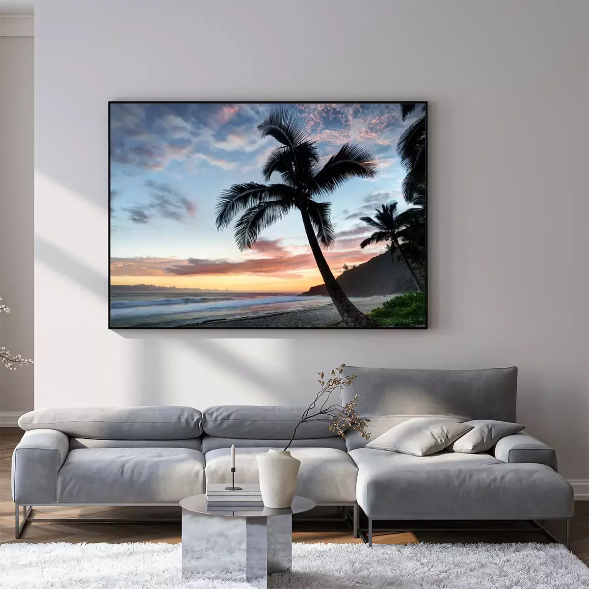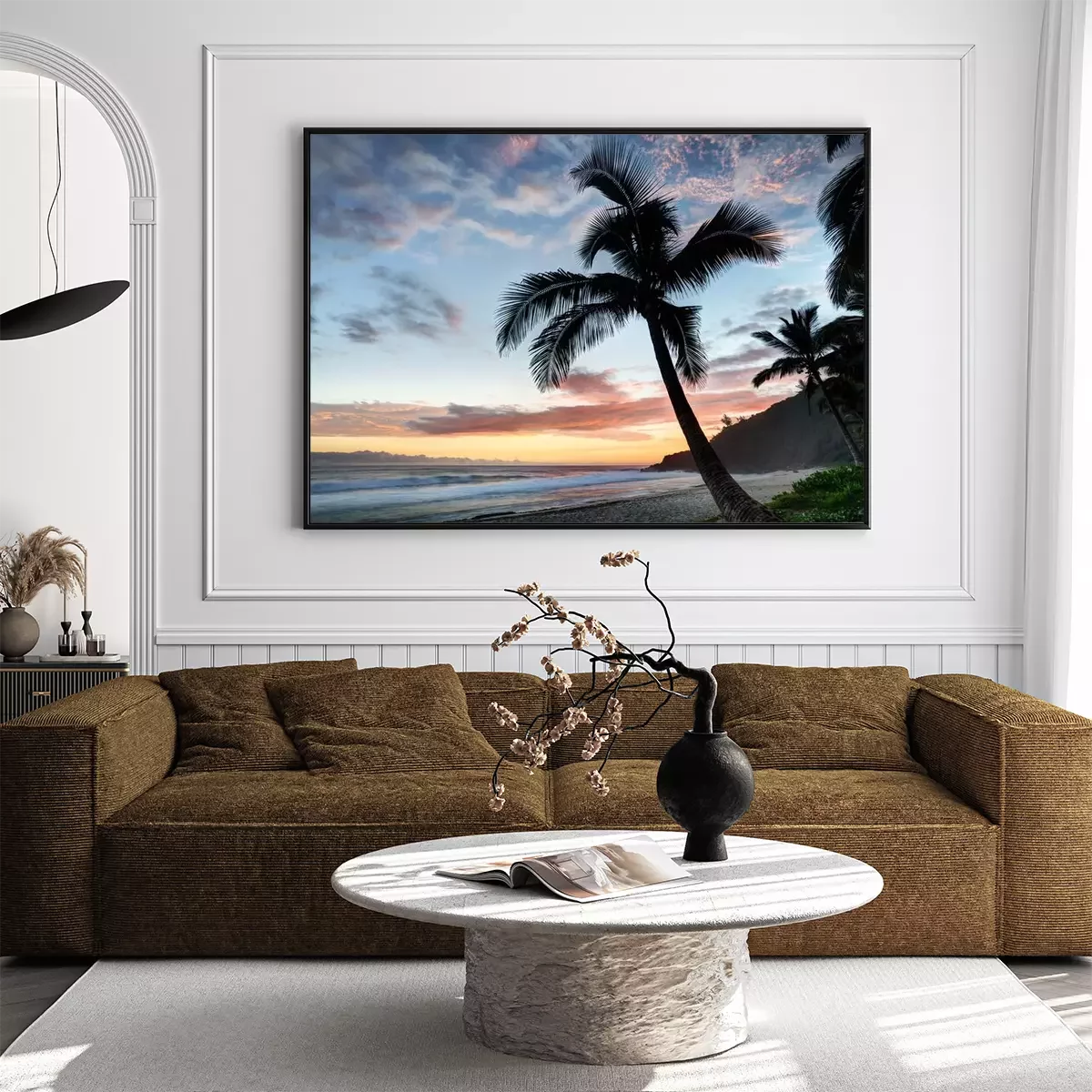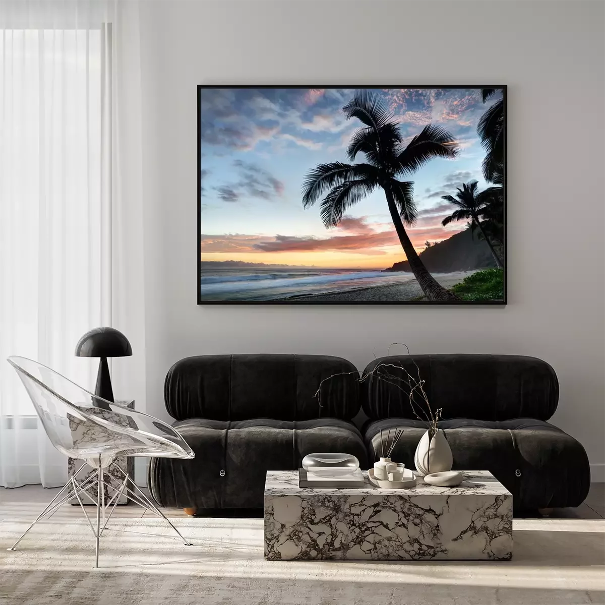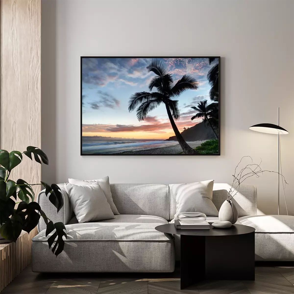 Poster Landschaft mit Palmen in der Abenddämmerung