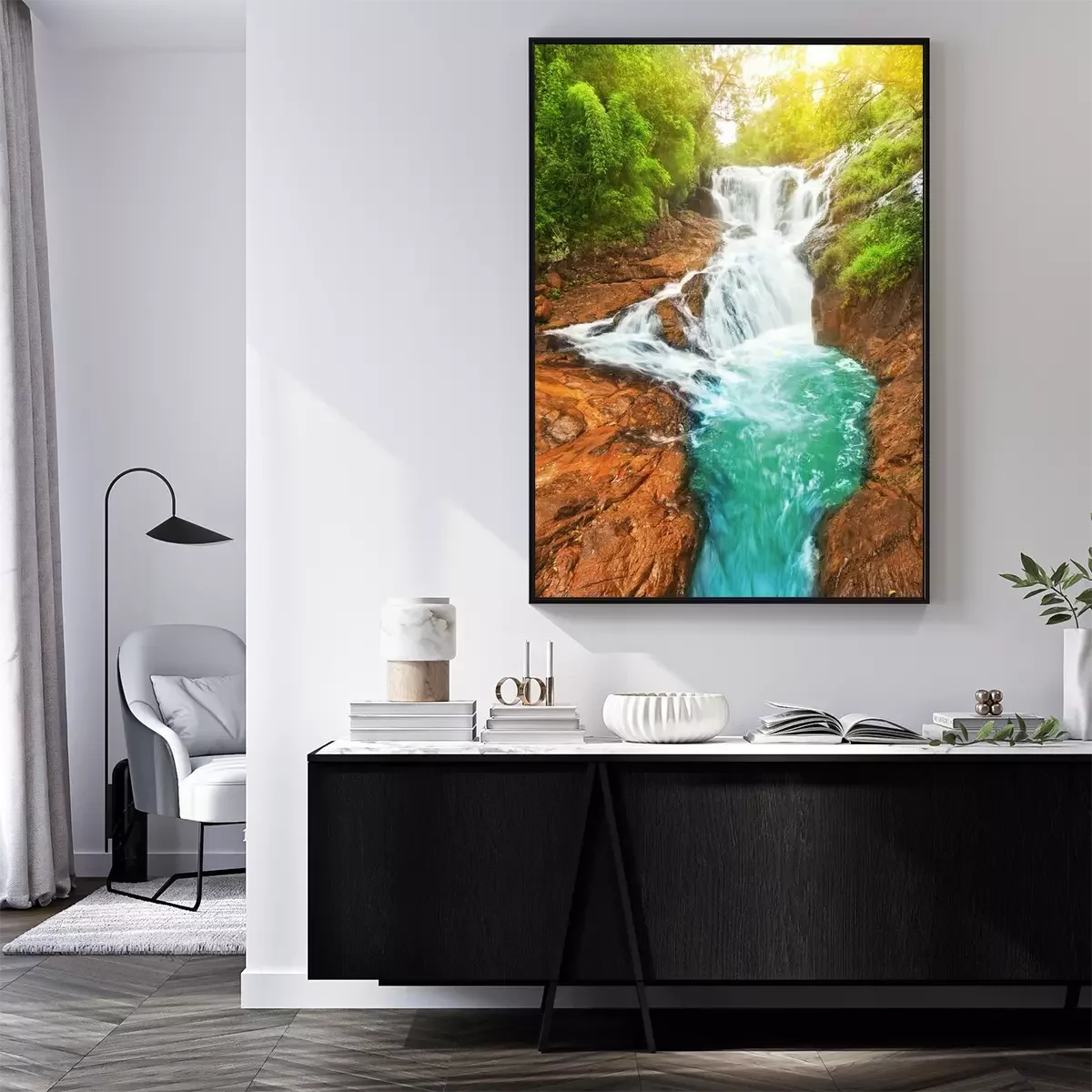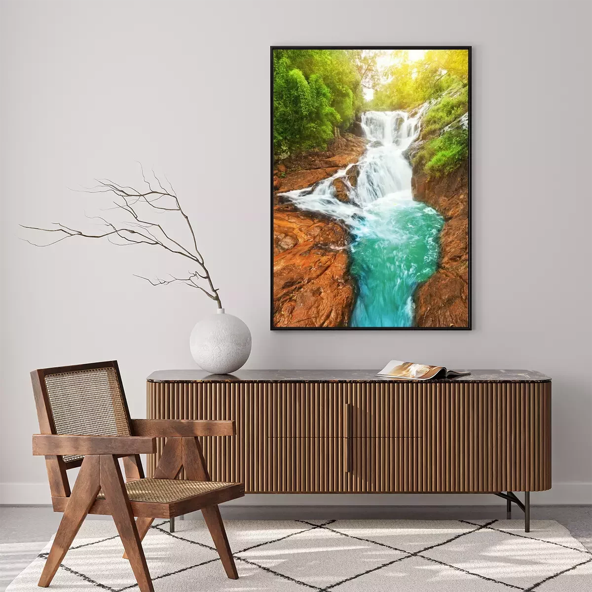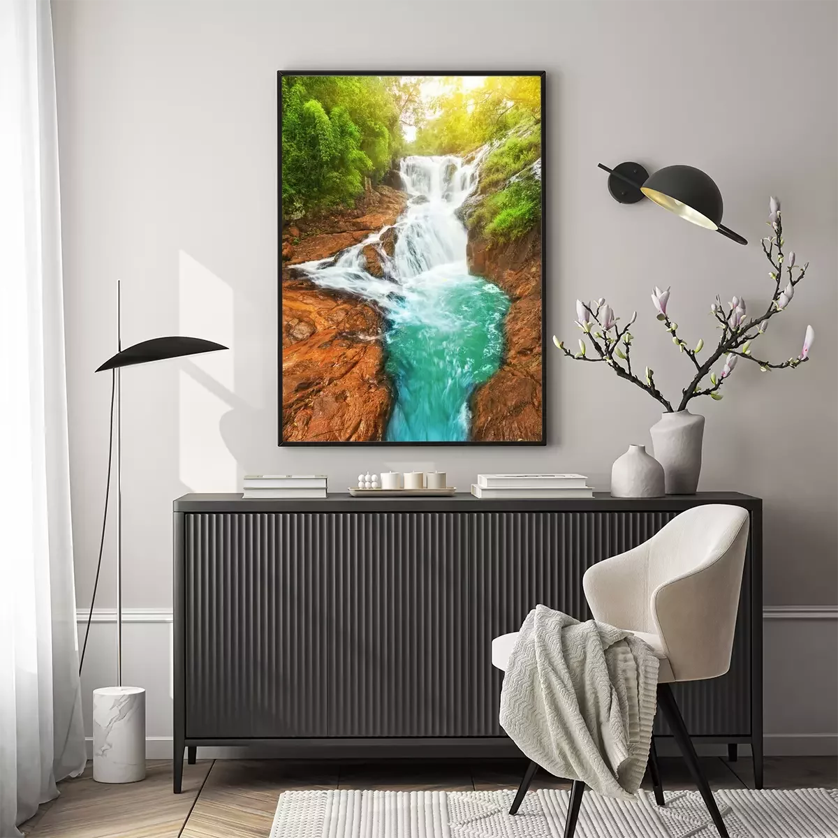 Poster Landschaft mit Wasserfall