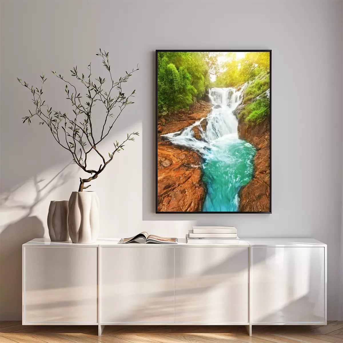 Poster: Landschaft mit Wasserfall