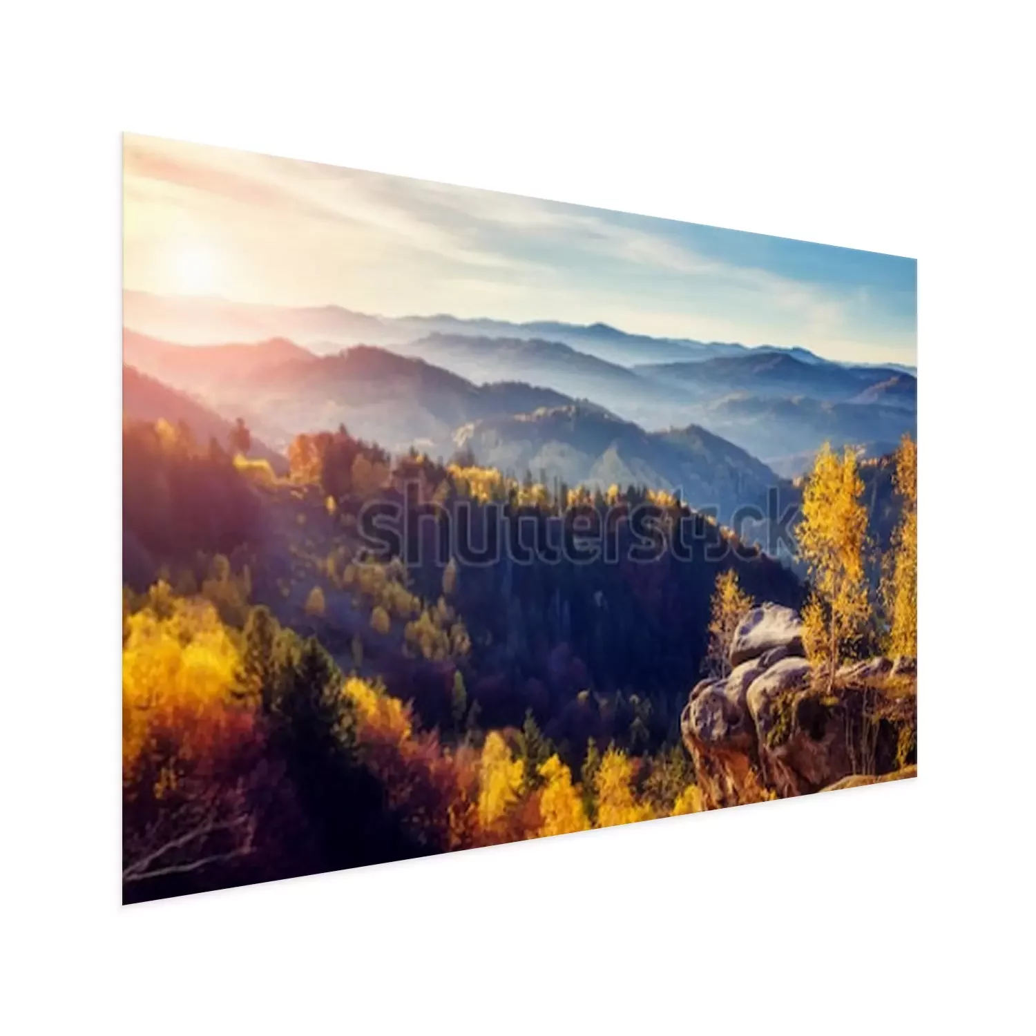 Poster: Landschaft Sonnenaufgang über den Bergen