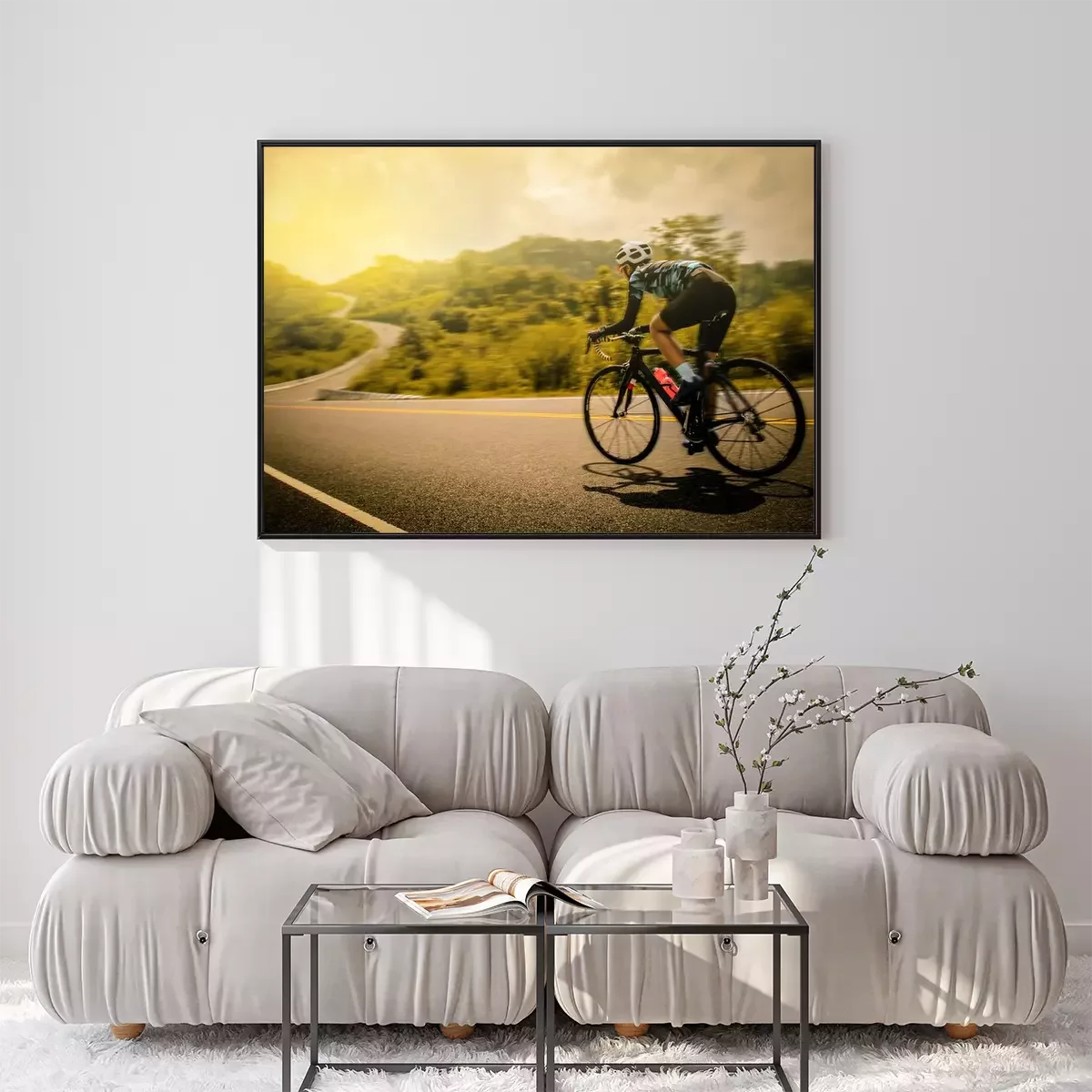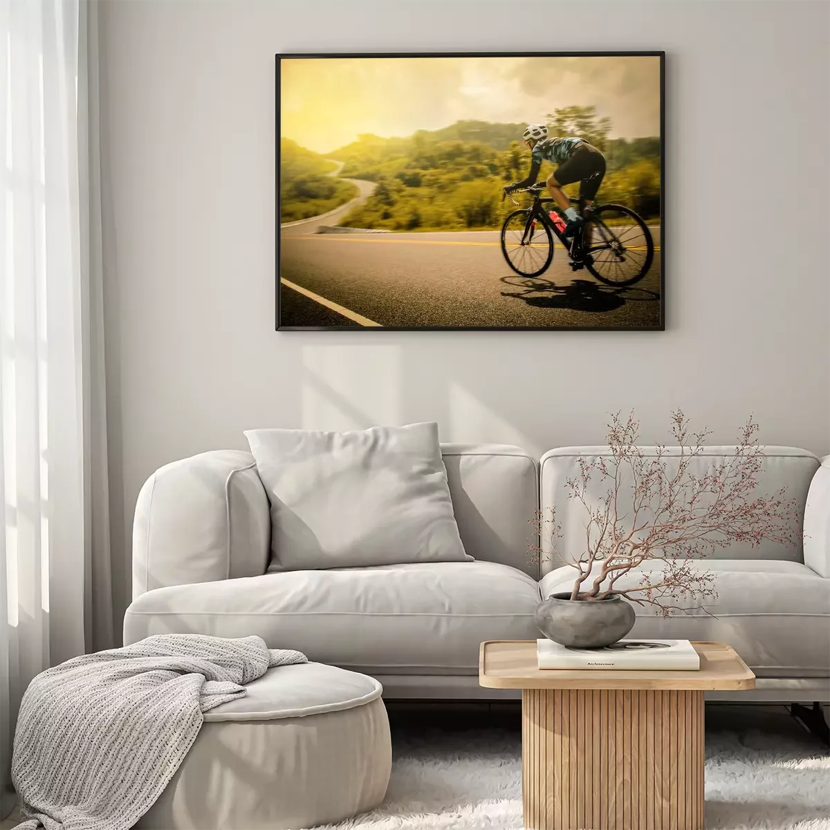 Poster: Landschaft und Radfahrer in Bewegung