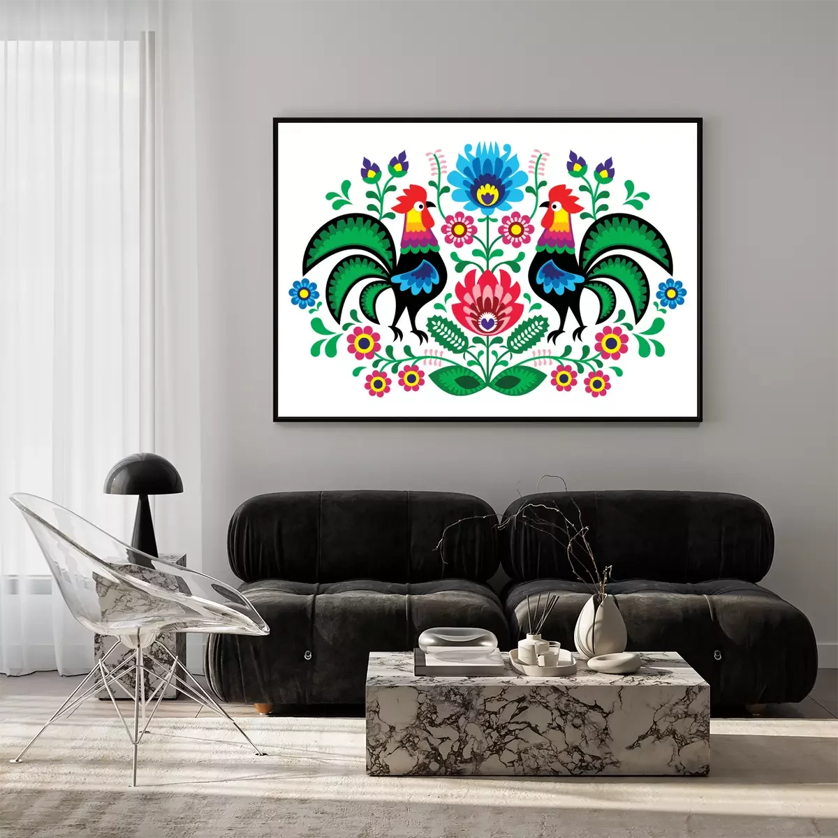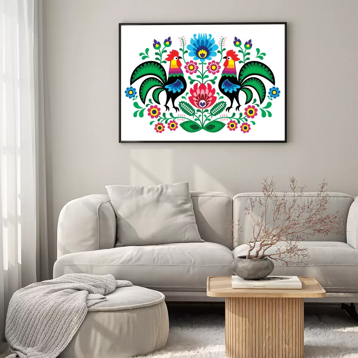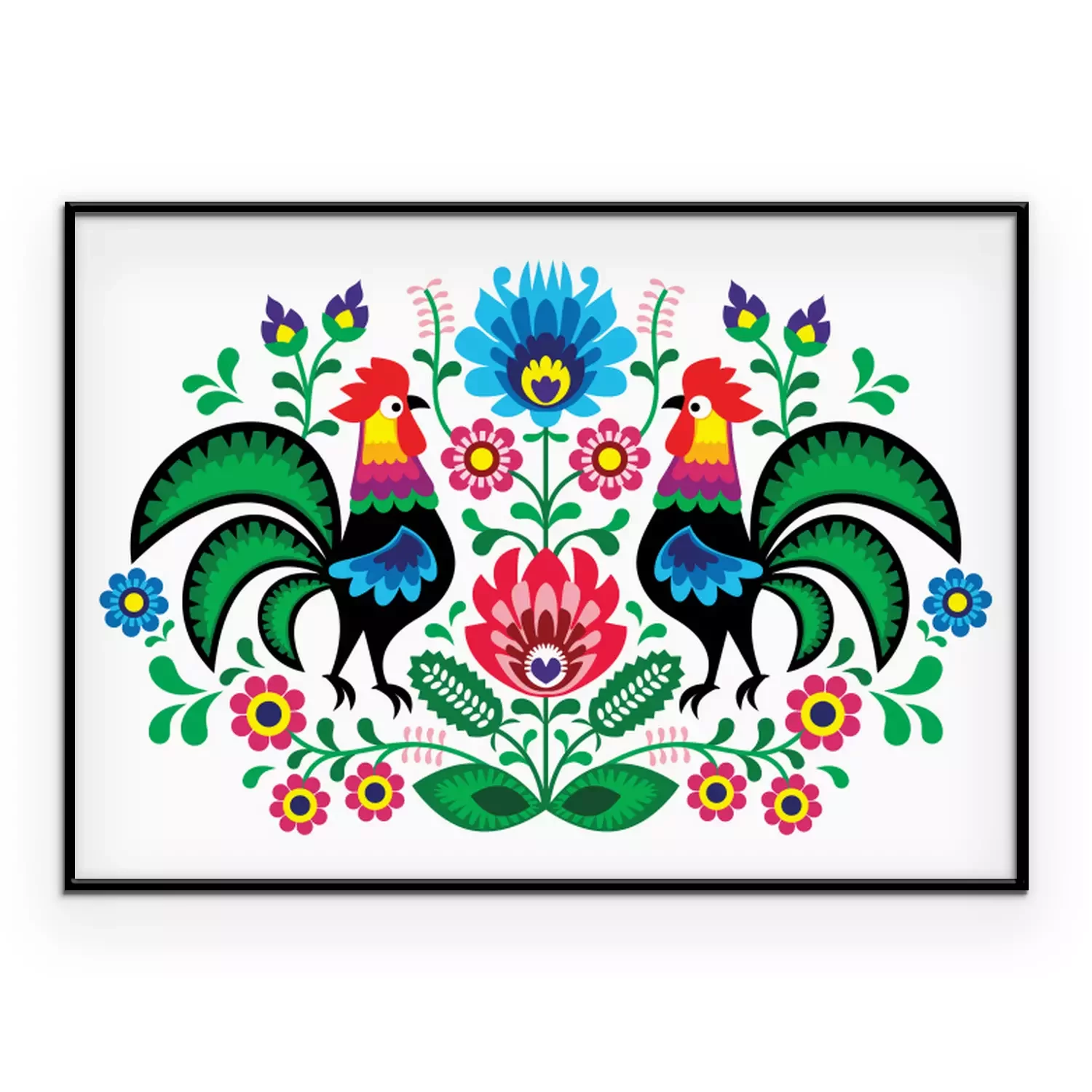 Poster: Landtiere folkloristische Hähne