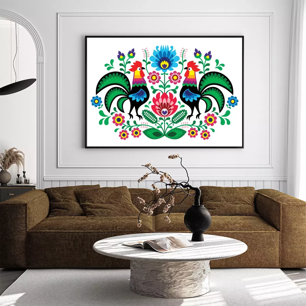 Poster Landtiere folkloristische Hähne