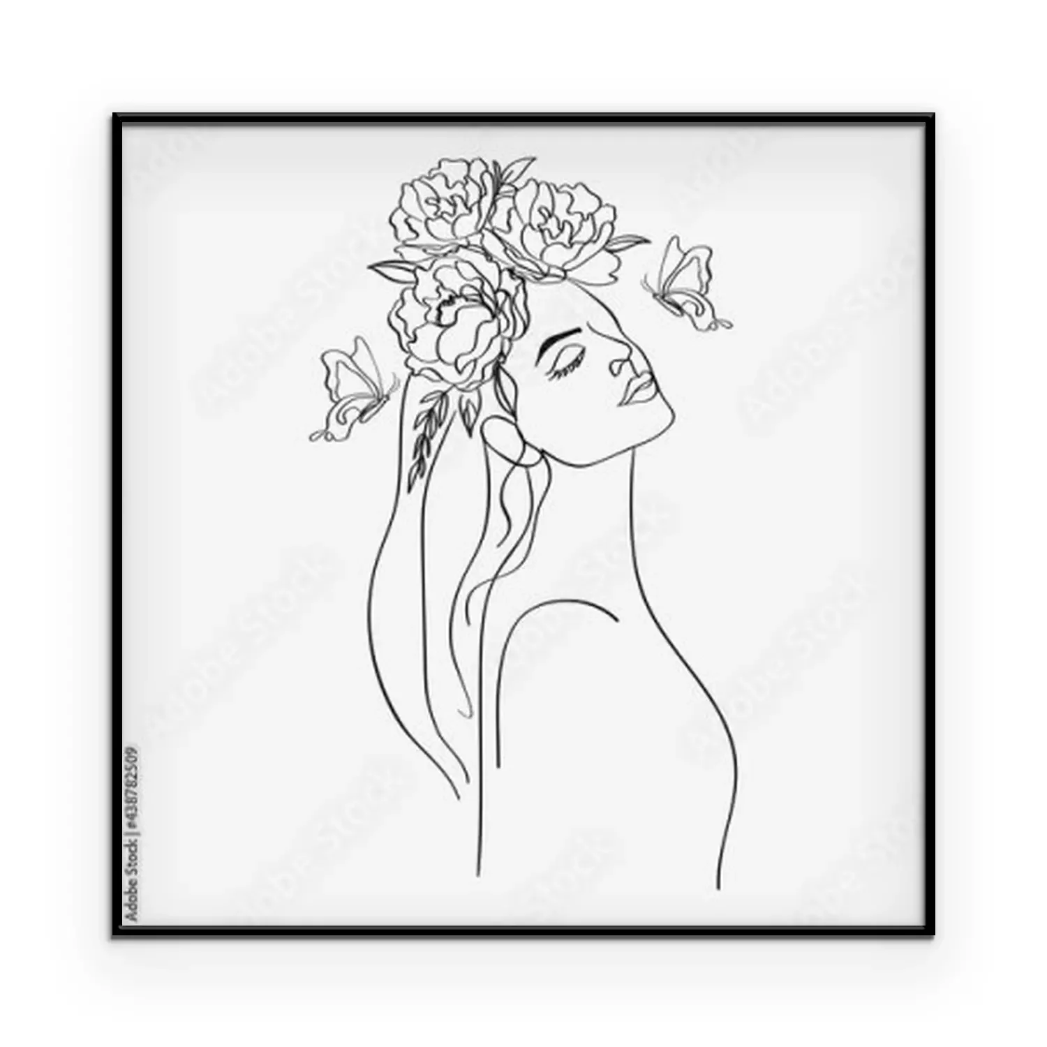 Poster Langhaarige Frau mit einem Kranz aus Pfingstrosen