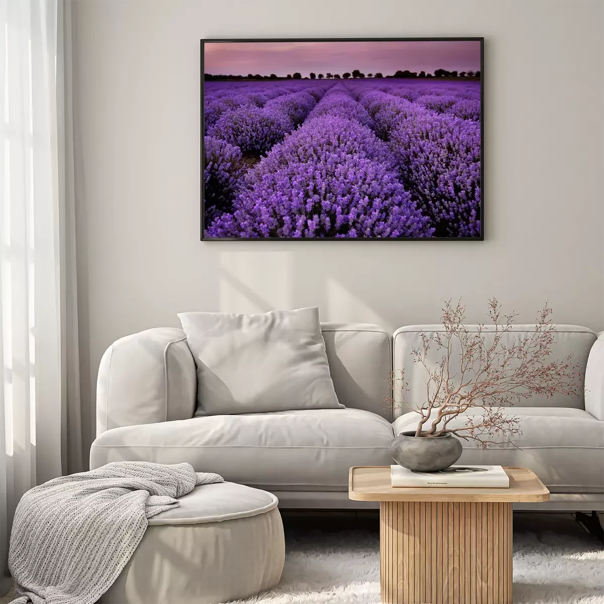 Atemberaubende Landschaft mit Lavendelfeld bei Sonnenuntergang