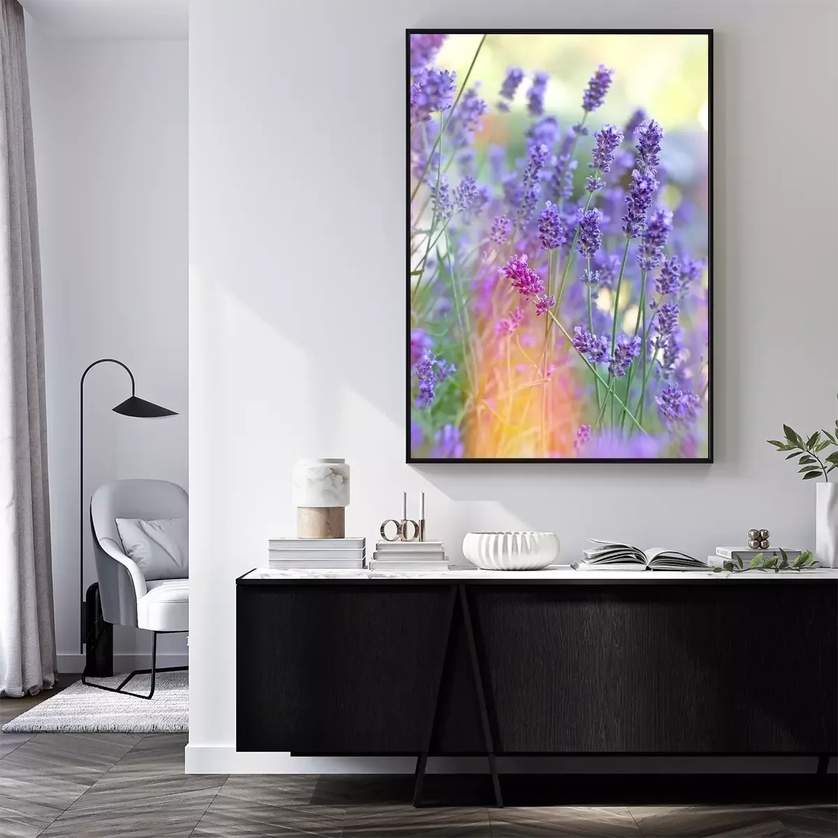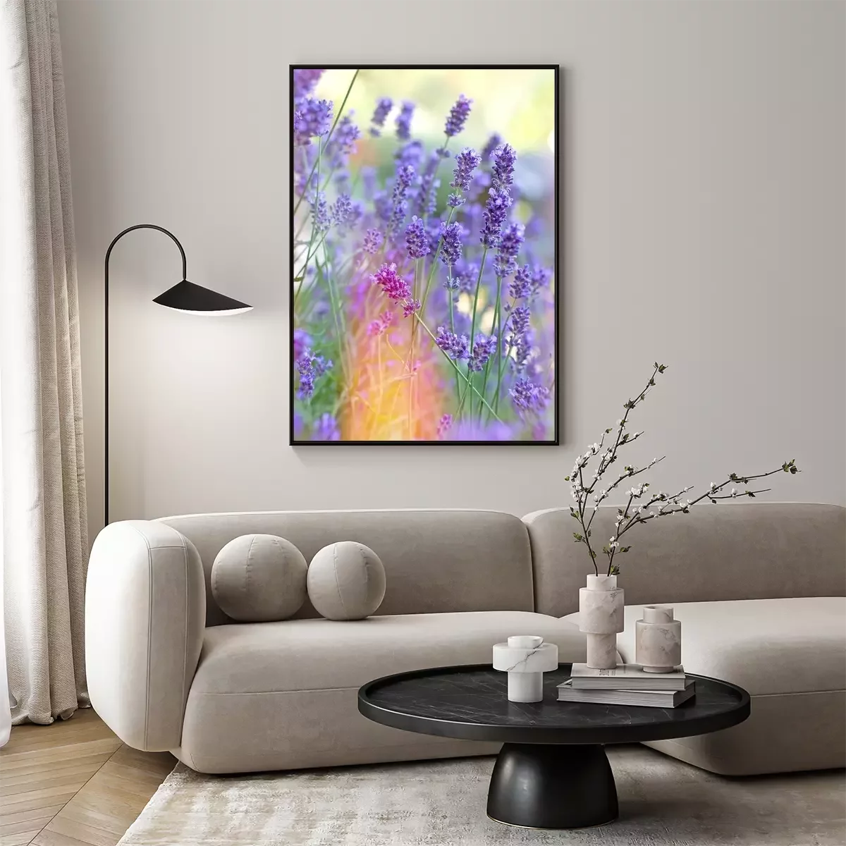 Poster Lavendelfeld Nahaufnahme von Zweigen
