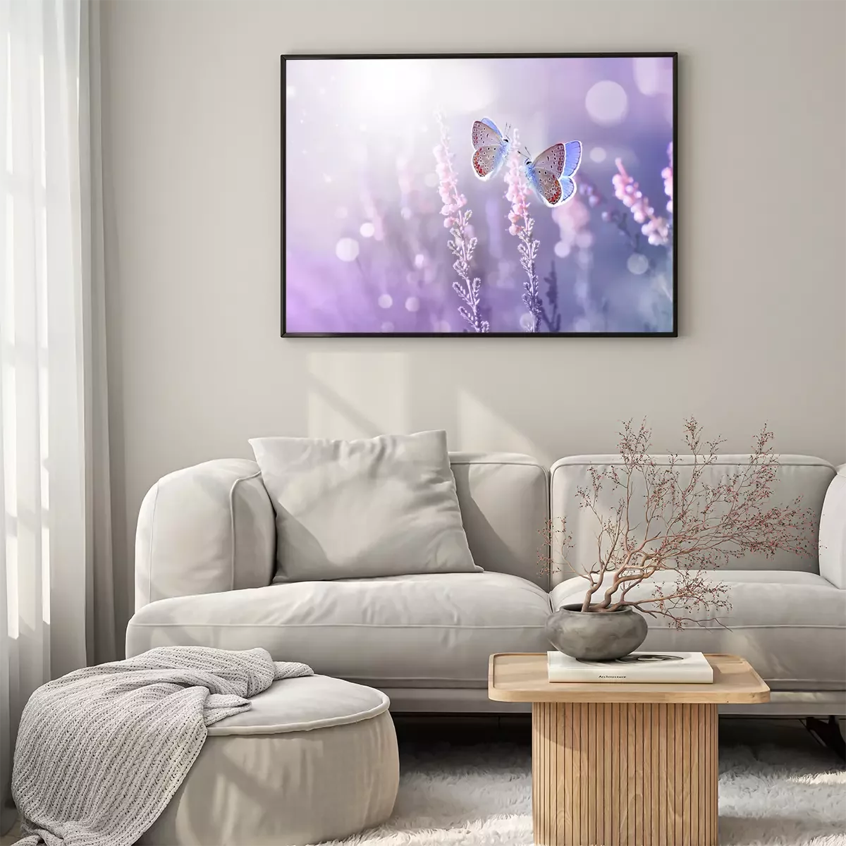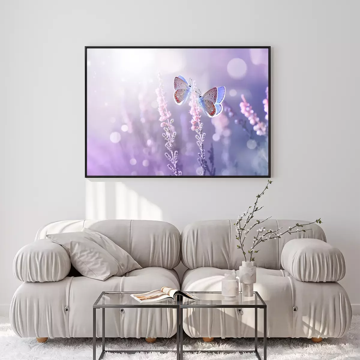 Poster: Lavendelfeld und Schmetterlinge in einem magischen Glanz