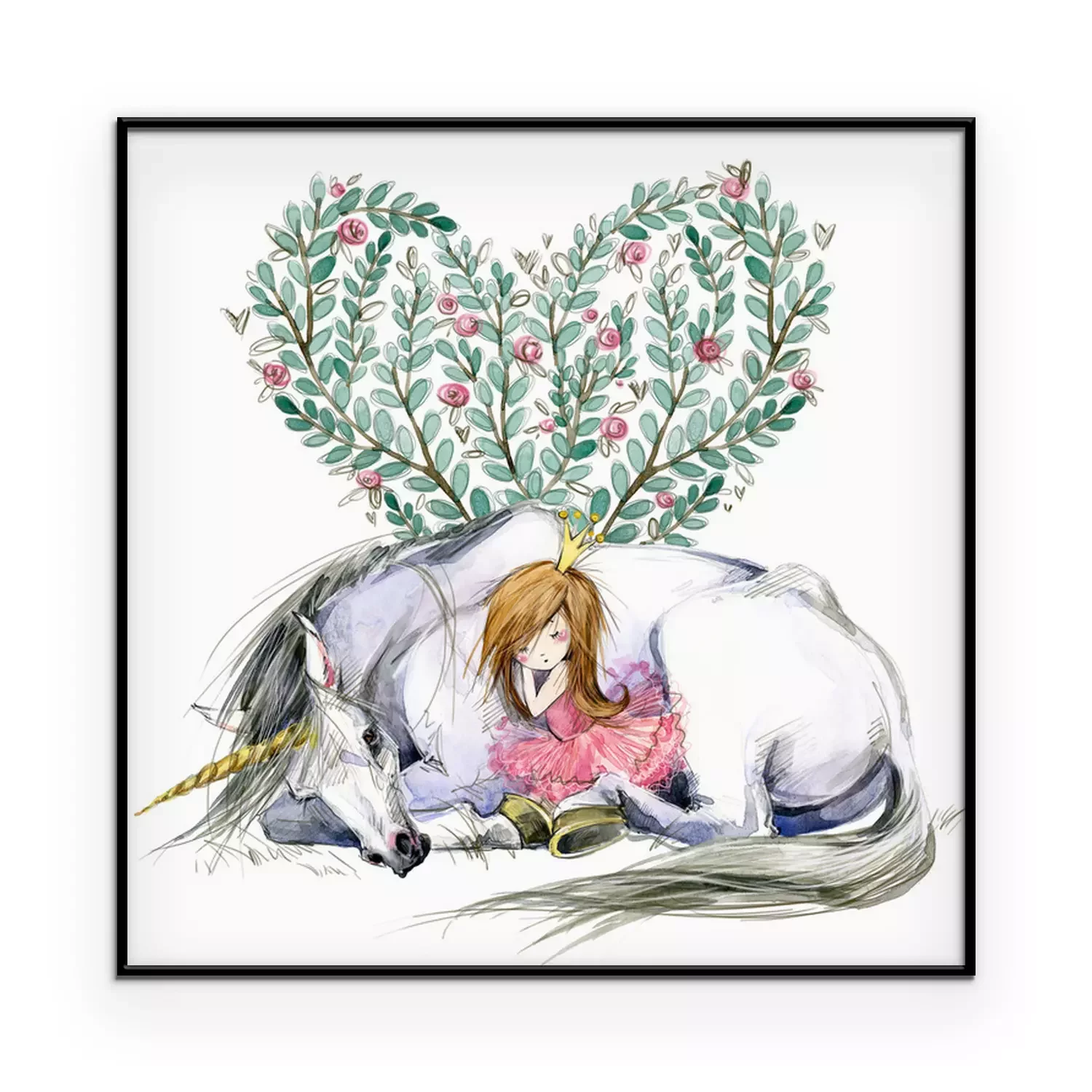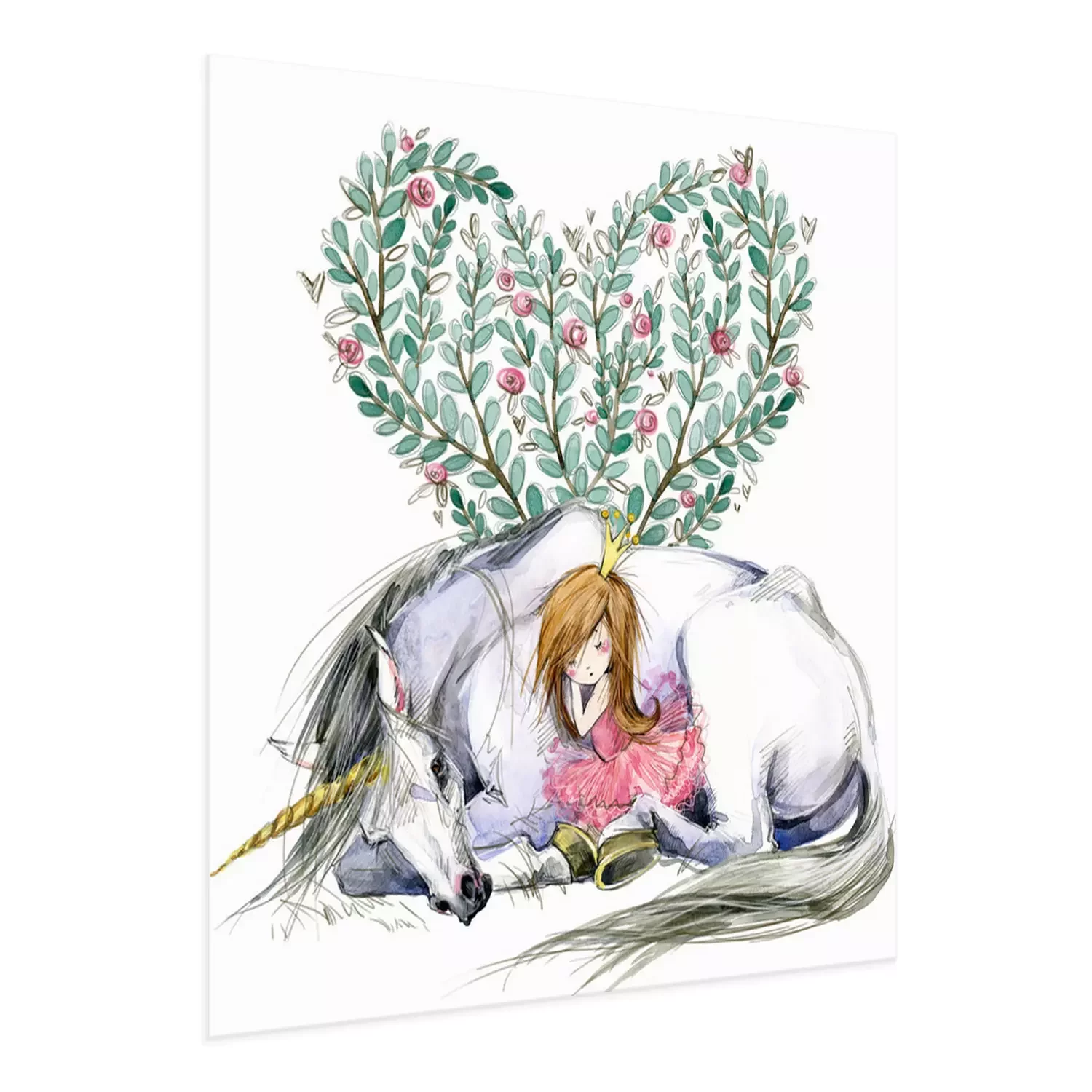 Poster: Liegendes Einhorn und eine darauf schlafende Prinzessin