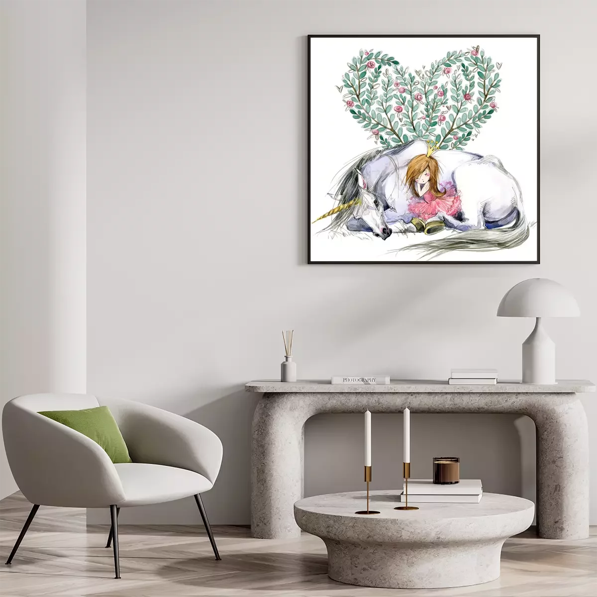 Einhorn und eine kuschelnde Prinzessin