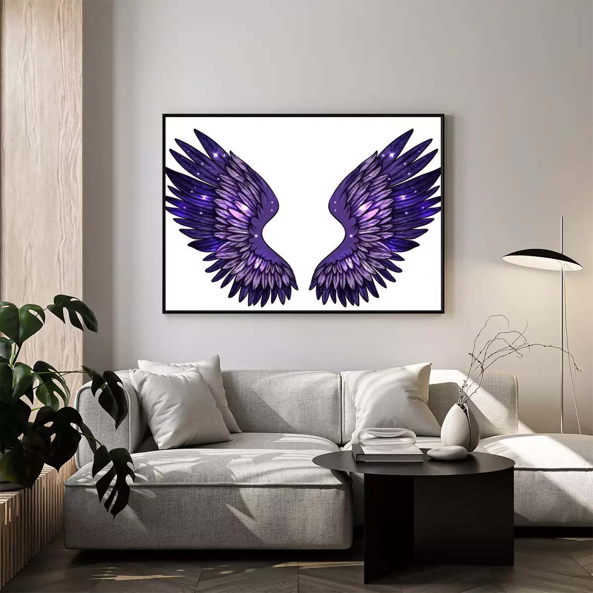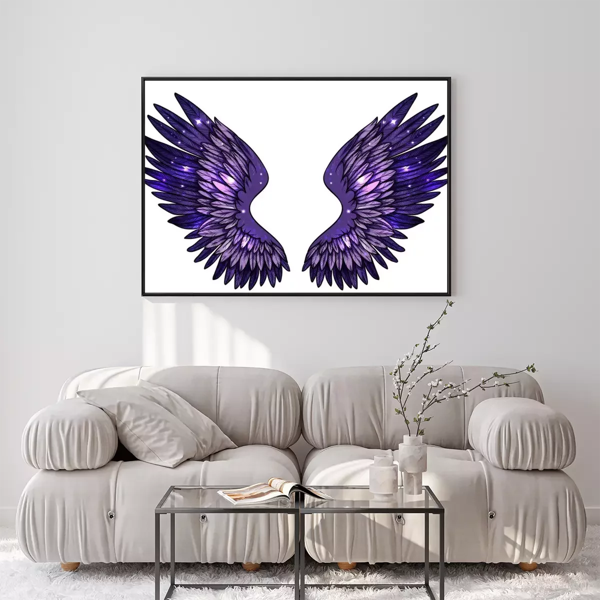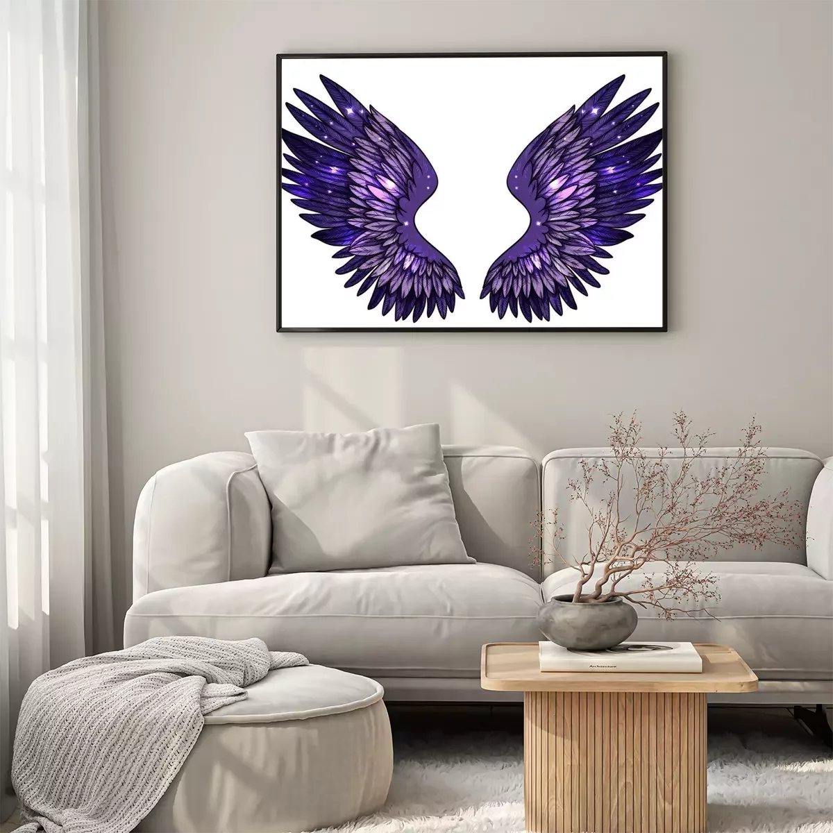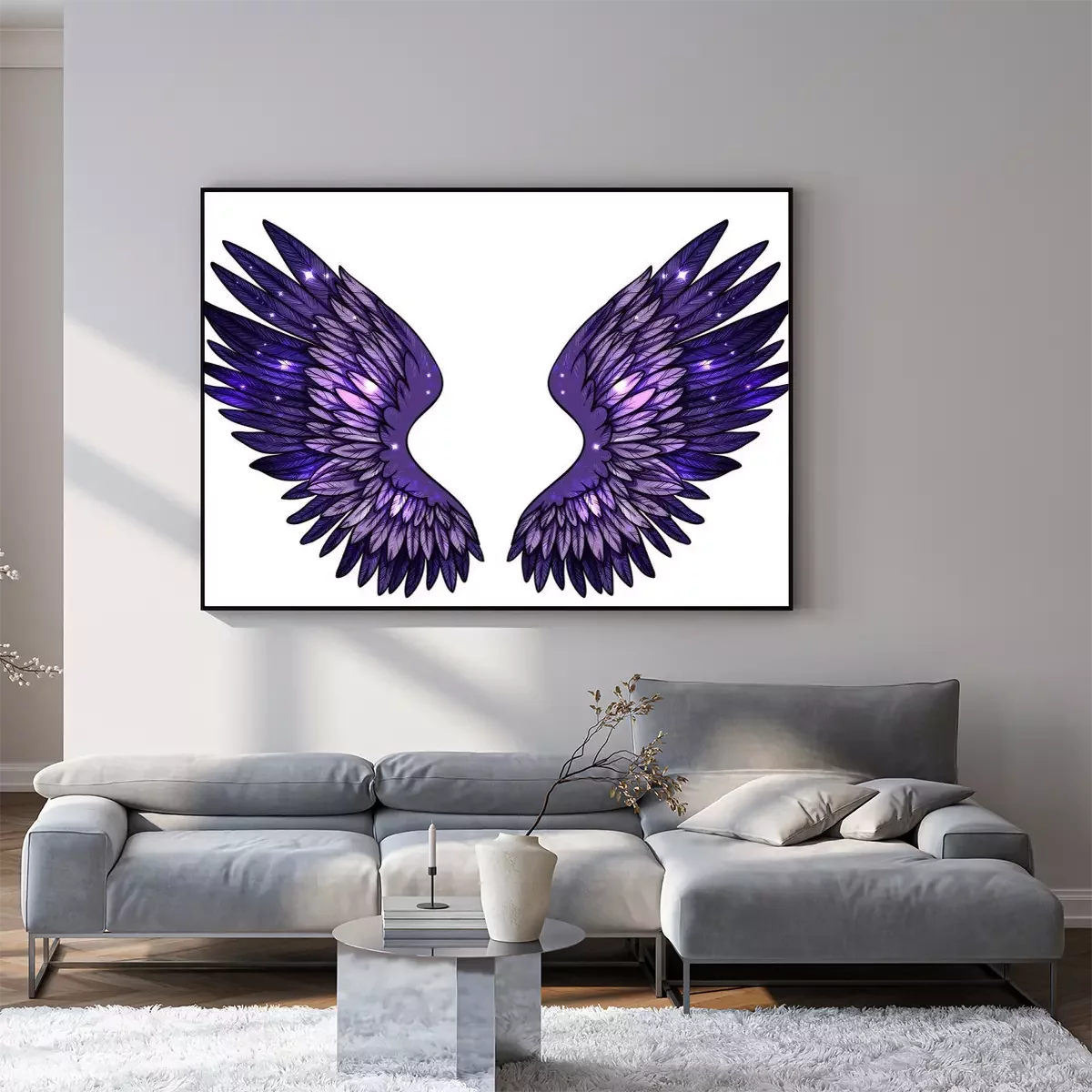 Poster: Lila und blaue Flügel, in denen sich die Sterne spiegeln