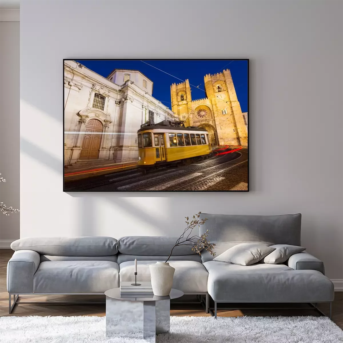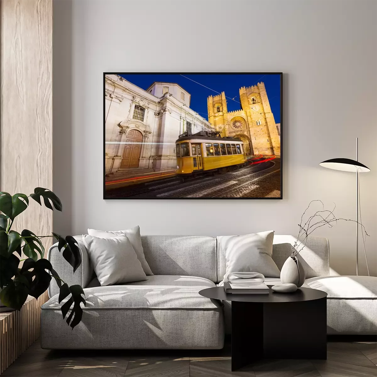 Poster: Lissabon gelbe Straßenbahn bei der Kathedrale