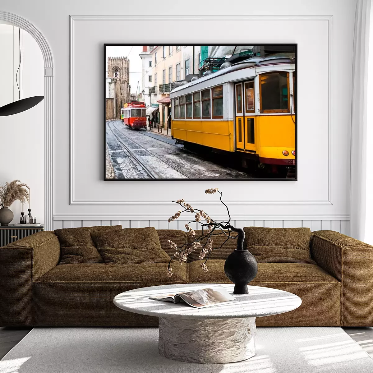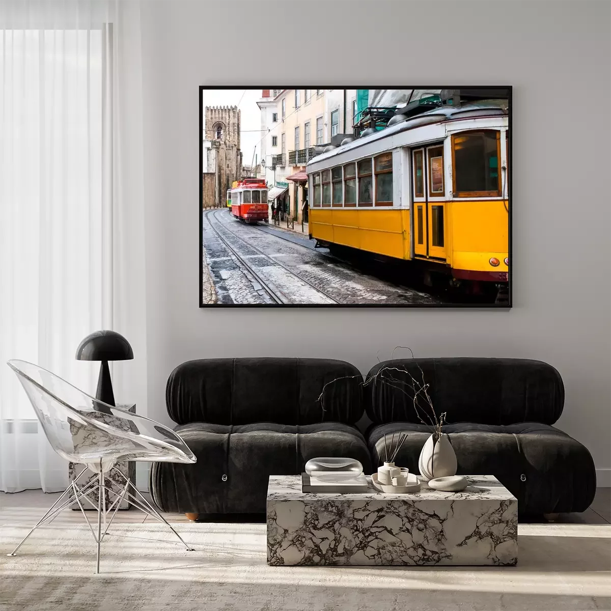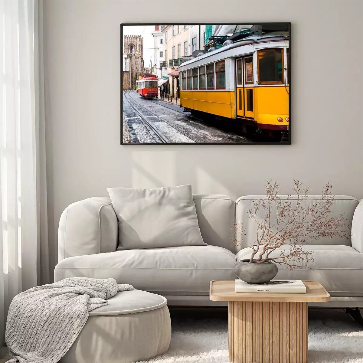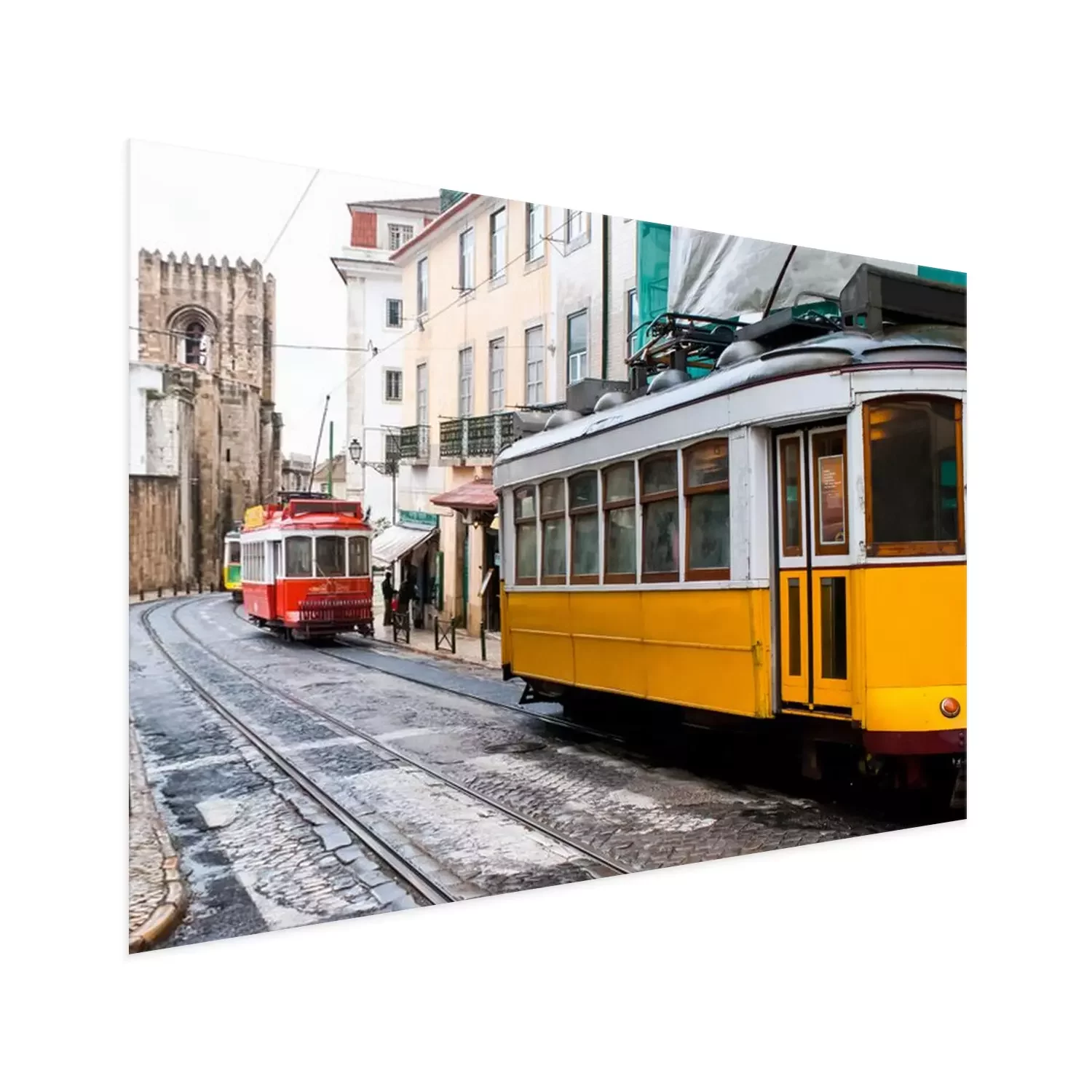 Poster Lissabon Portugal Straßenbahnen in der Gasse