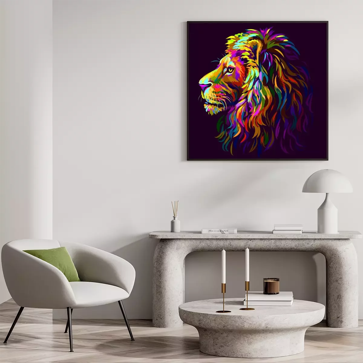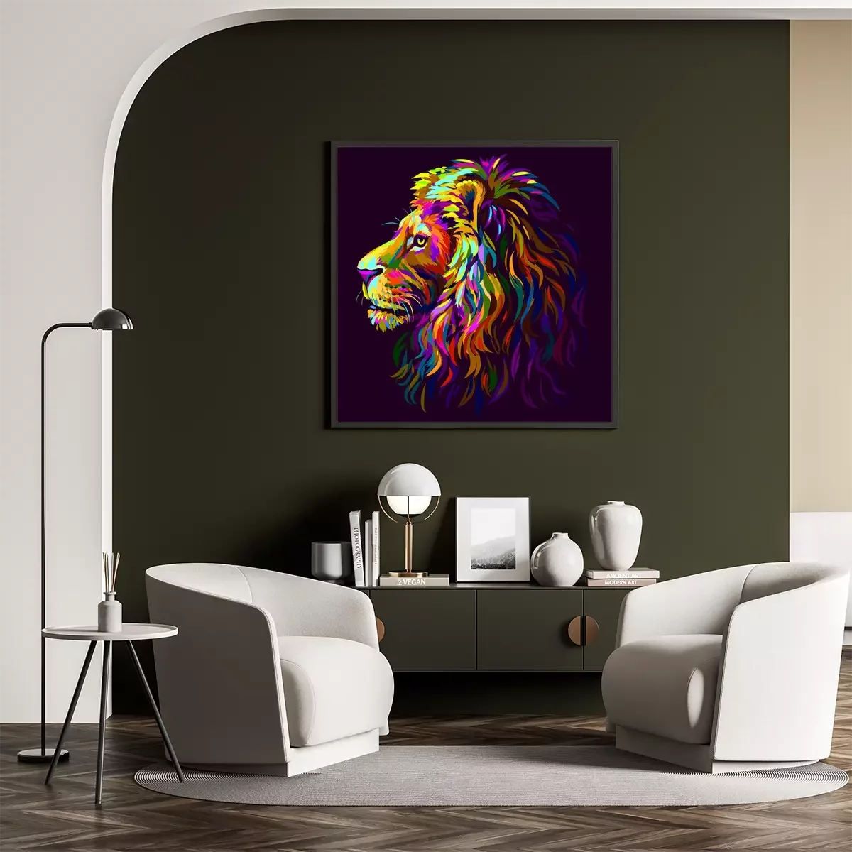 Wandernder Löwe in Regenbogenfarben
