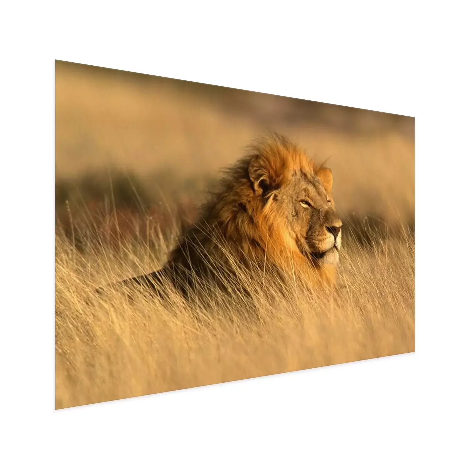 Poster: Löwe in der Savanne im Gras