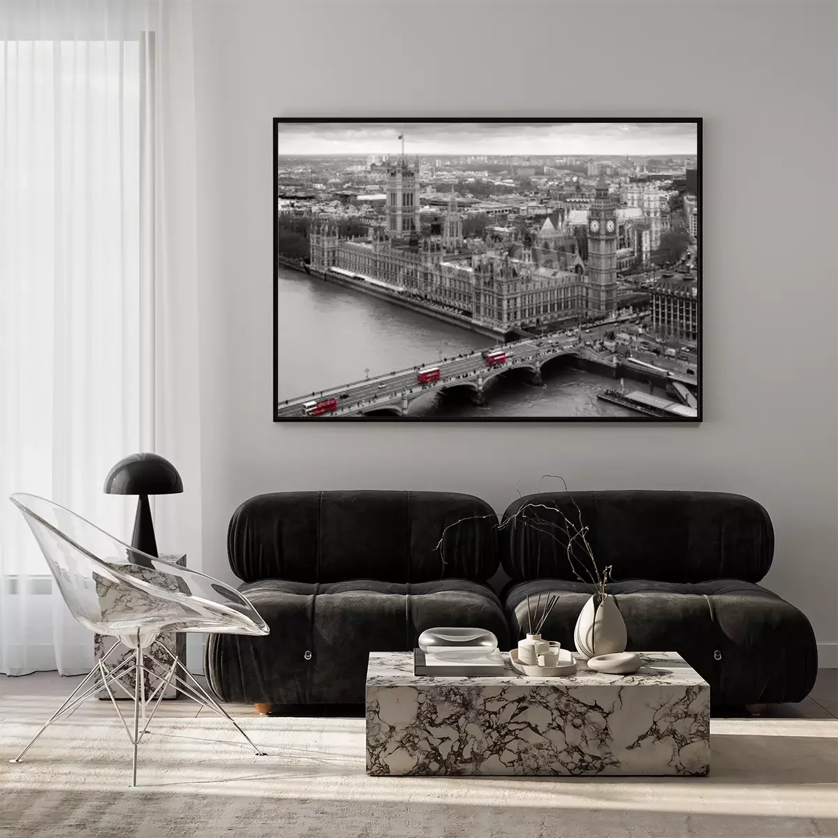 Poster London aus der Vogelperspektive in schwarz-weiß