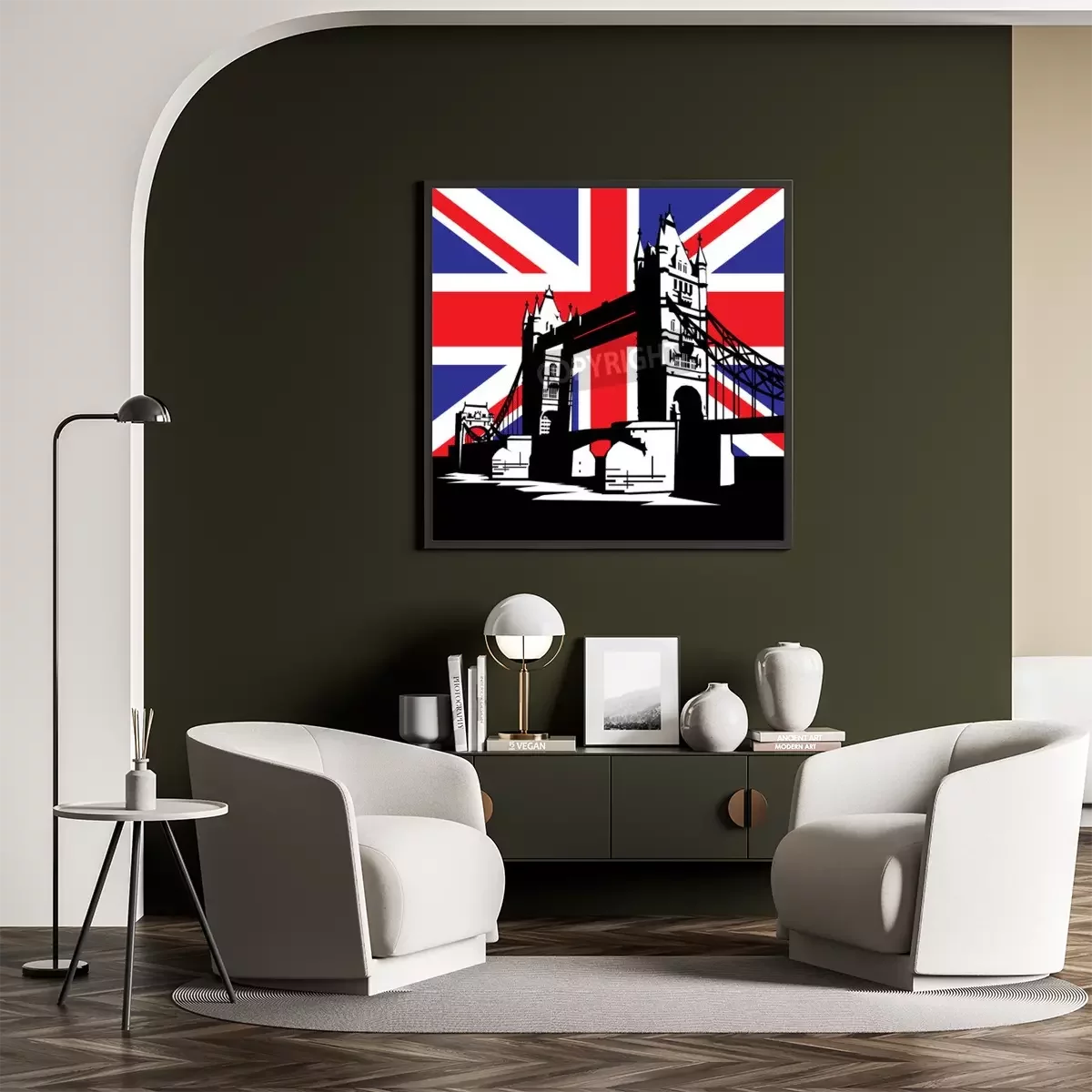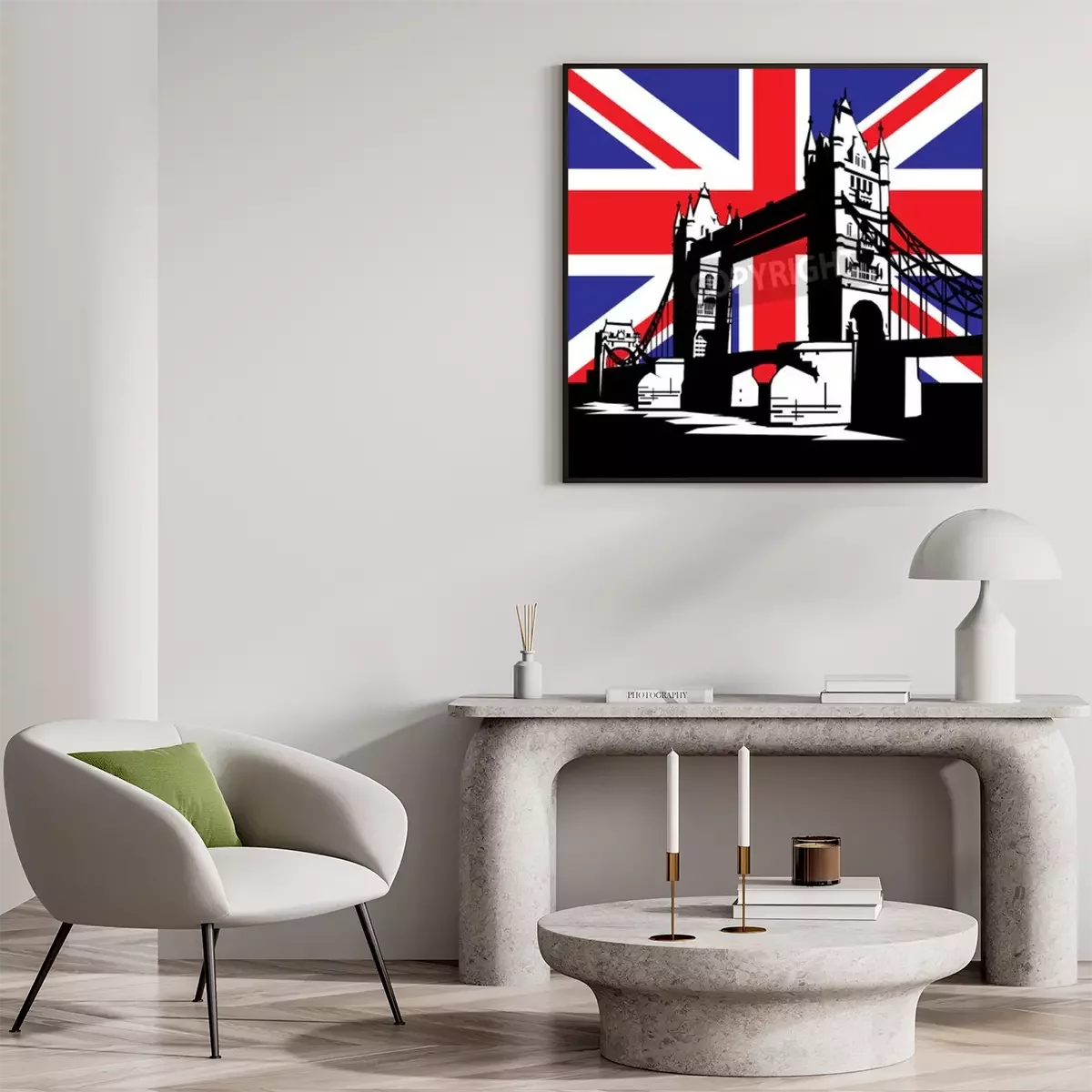 Poster: London Bridge auf dem Hintergrund der britischen Flagge