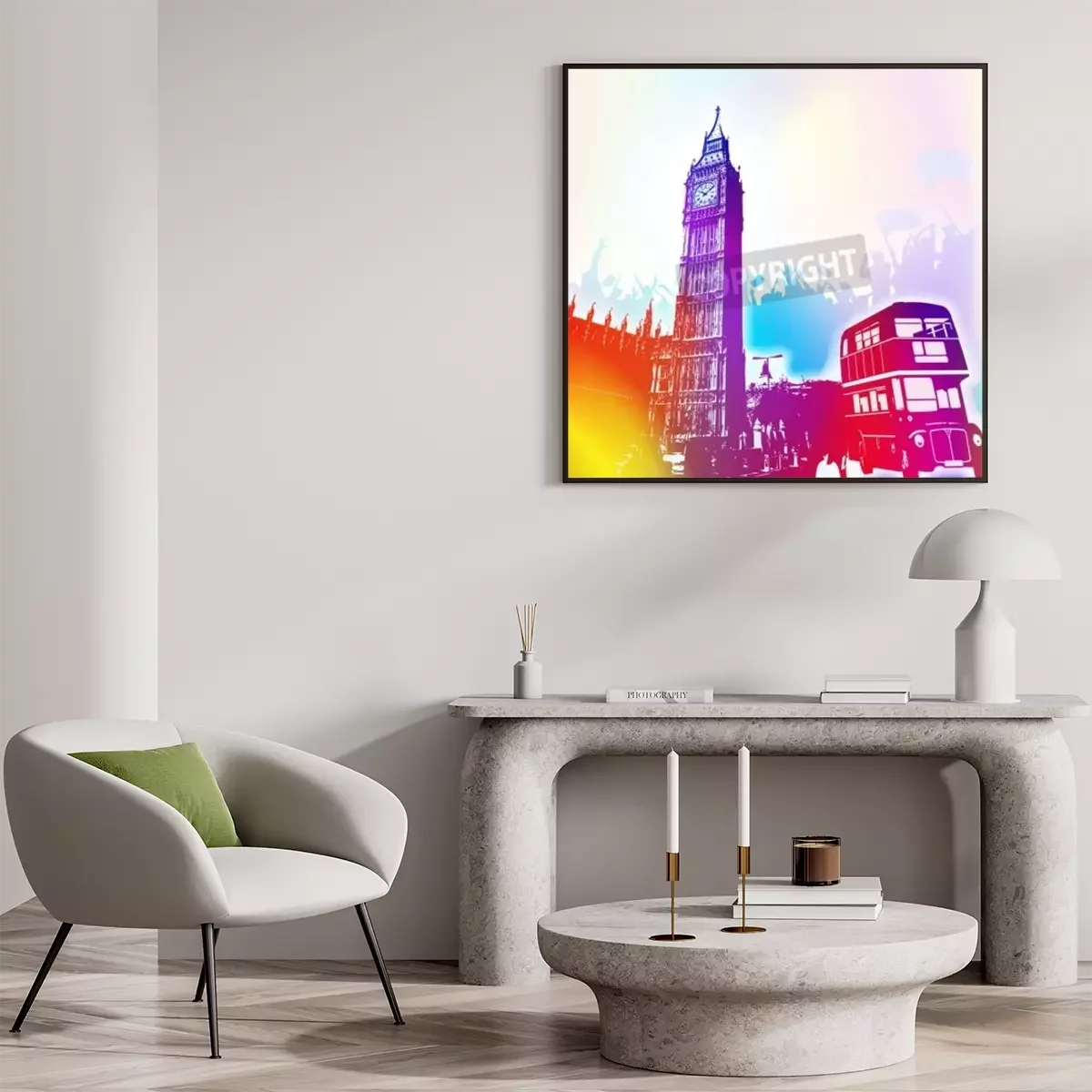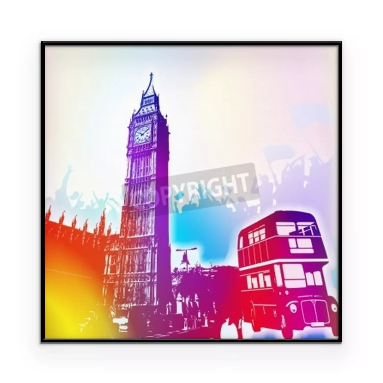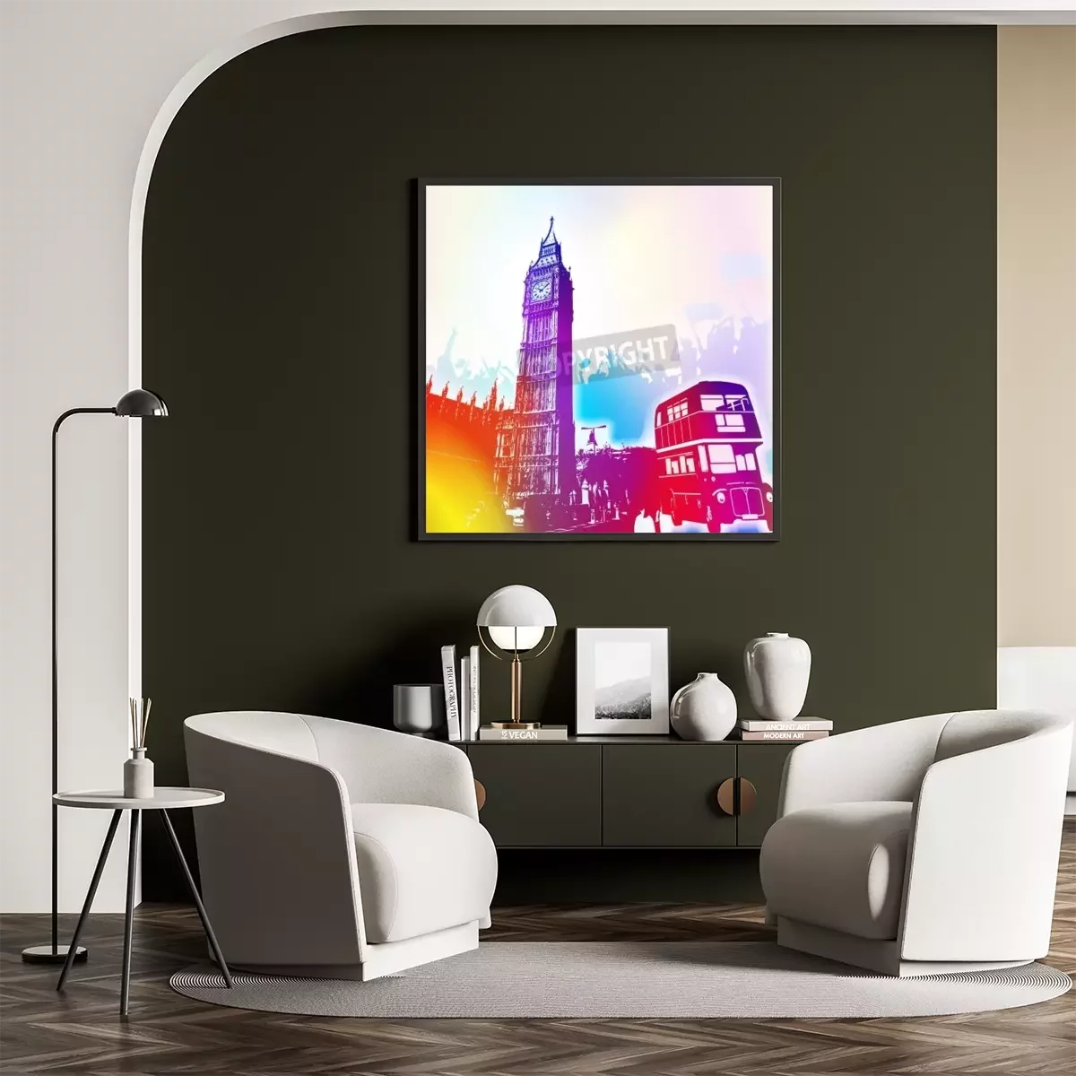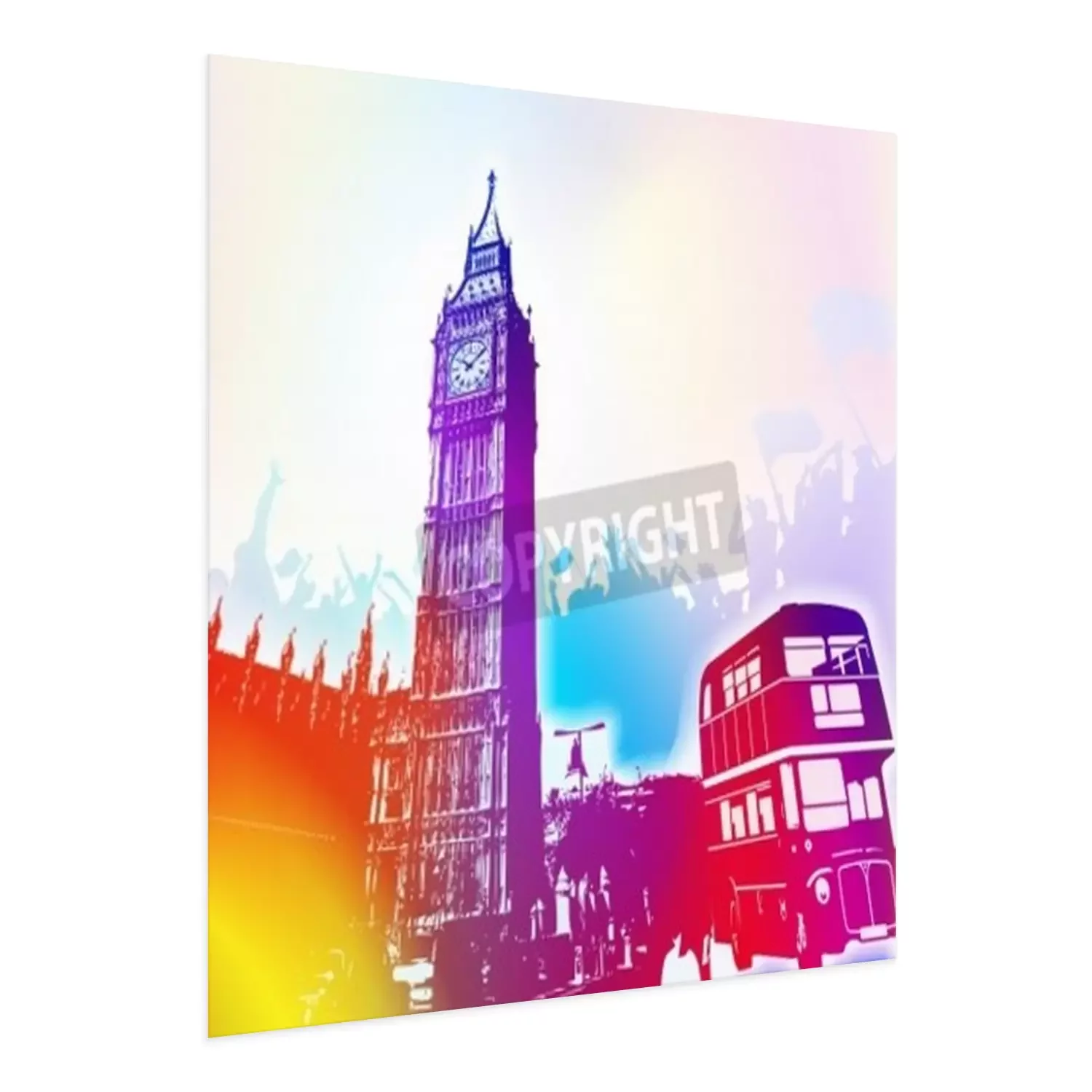 Poster: London Bus und Big Ben auf dem bunten Hintergrund