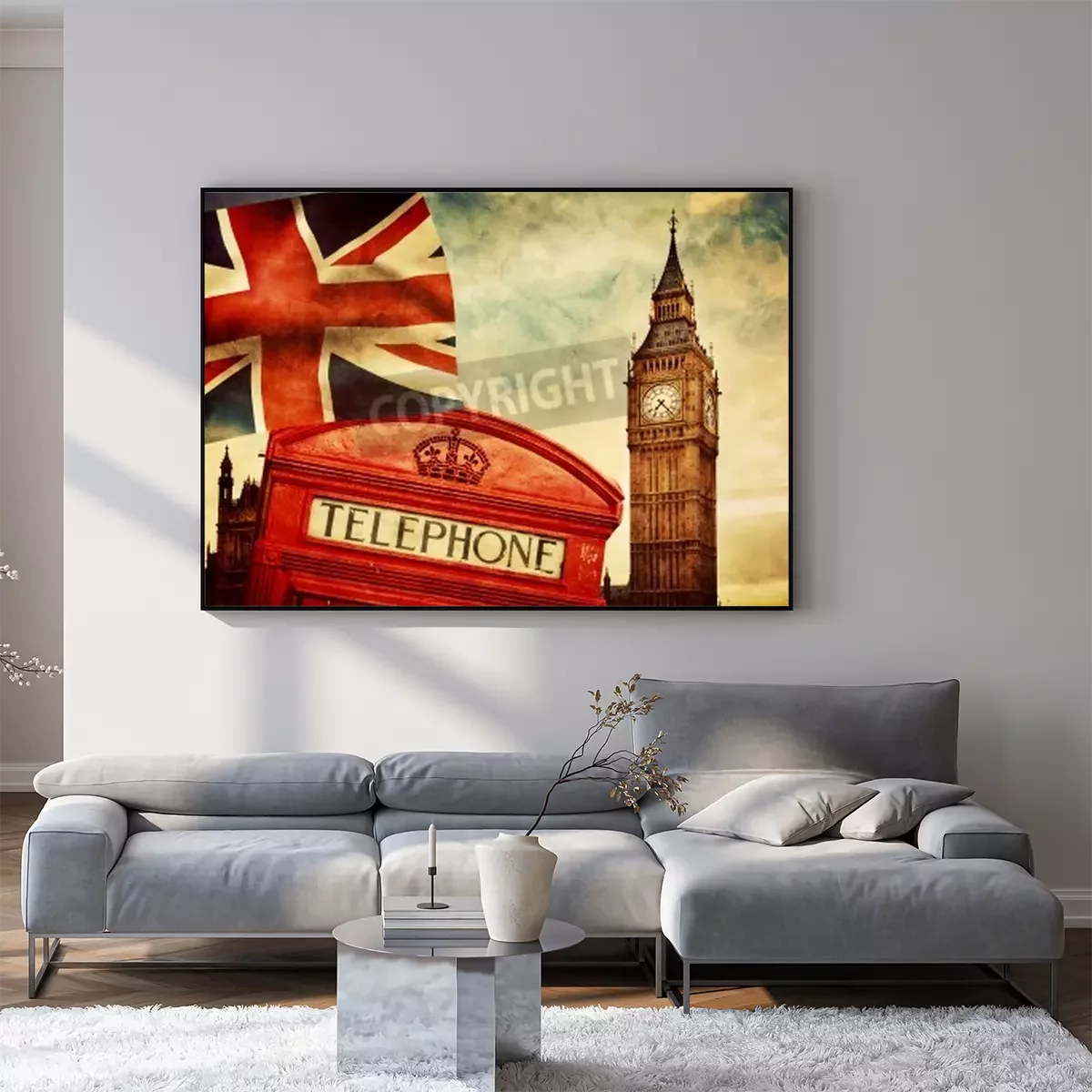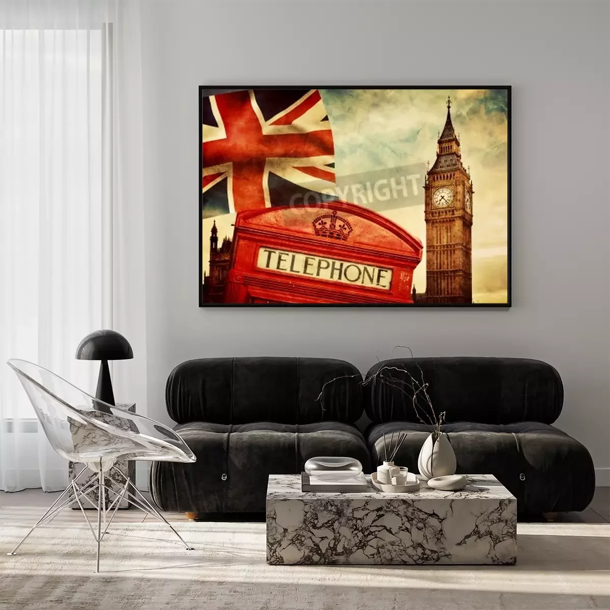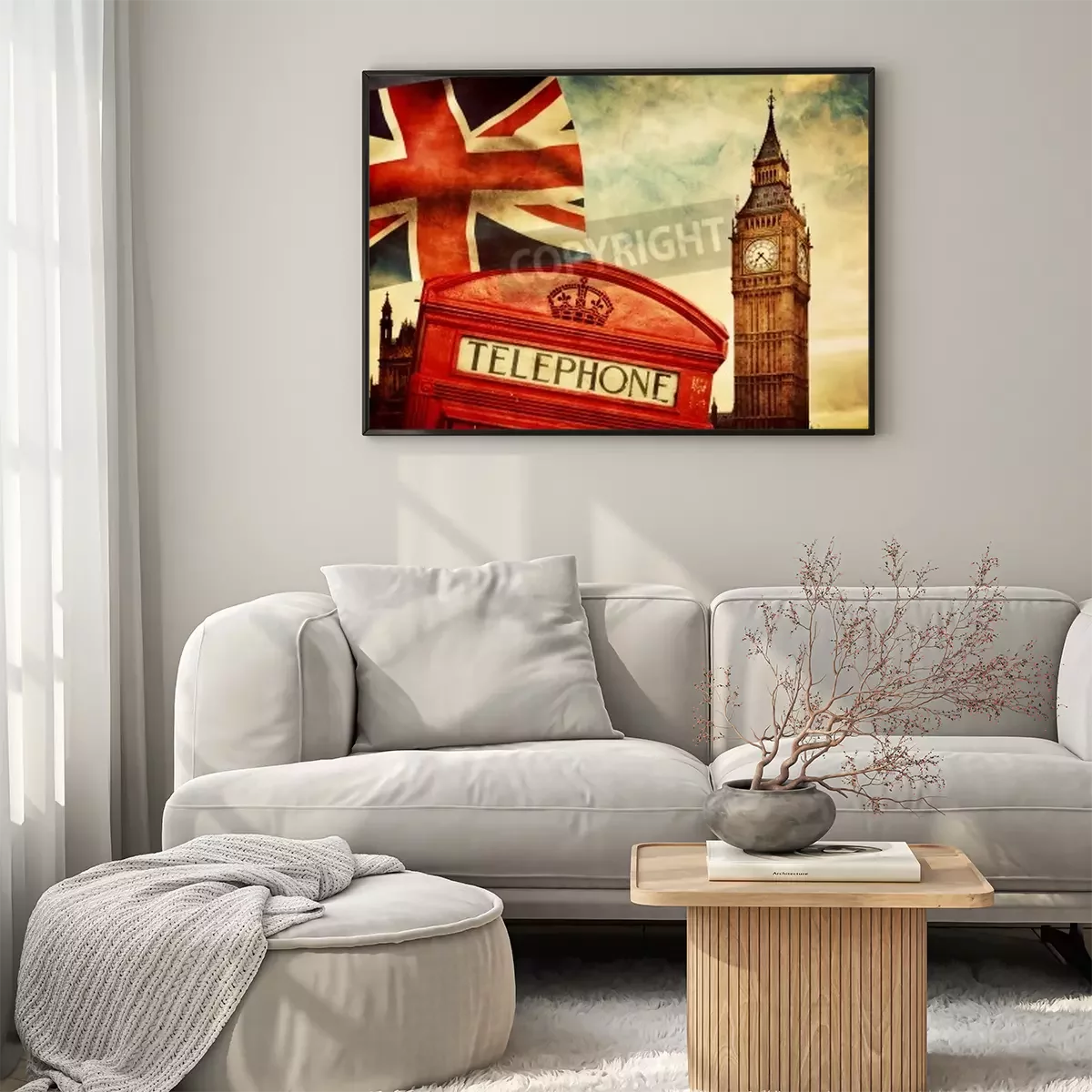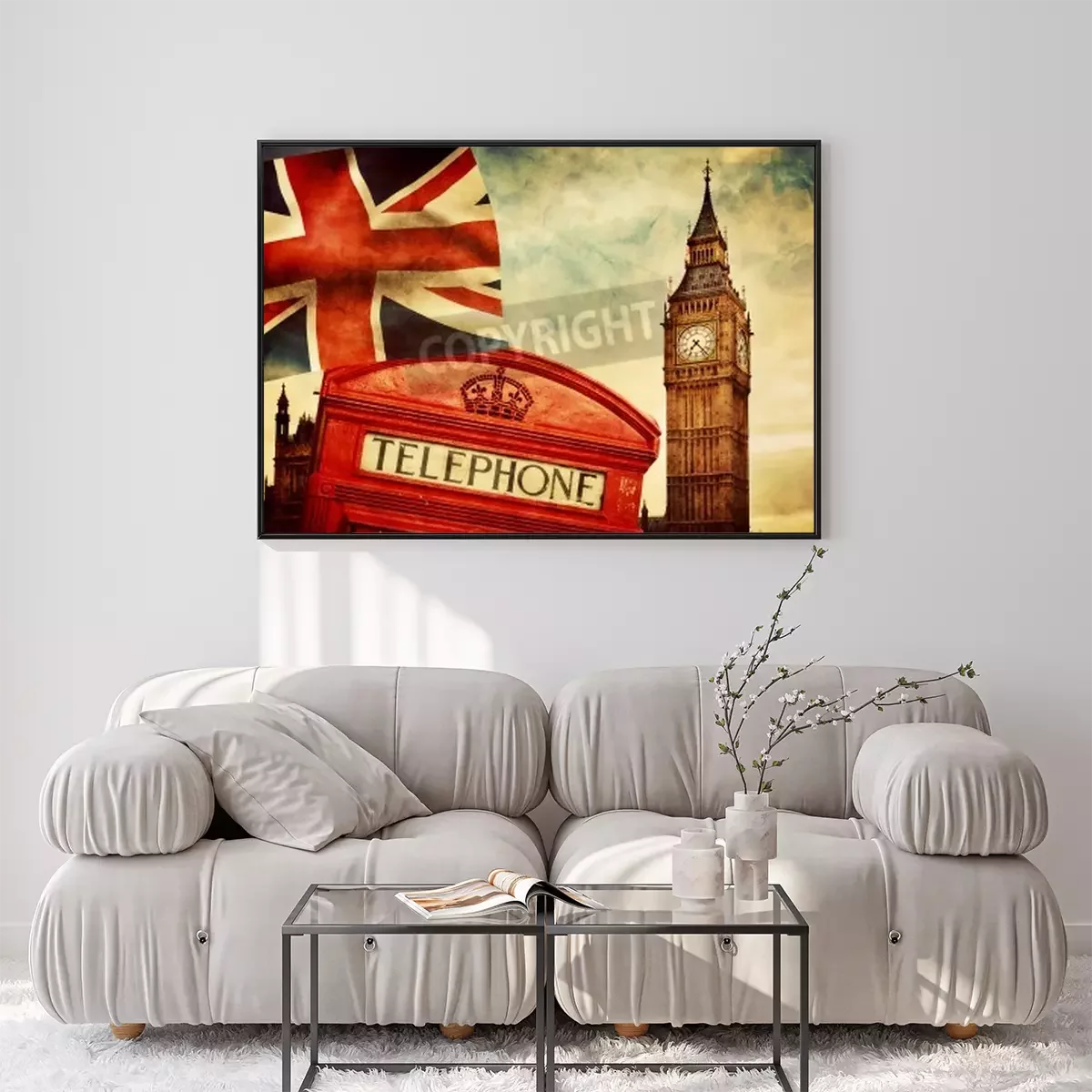 Poster: London im Retro-Stil mit Symbolen der Stadt