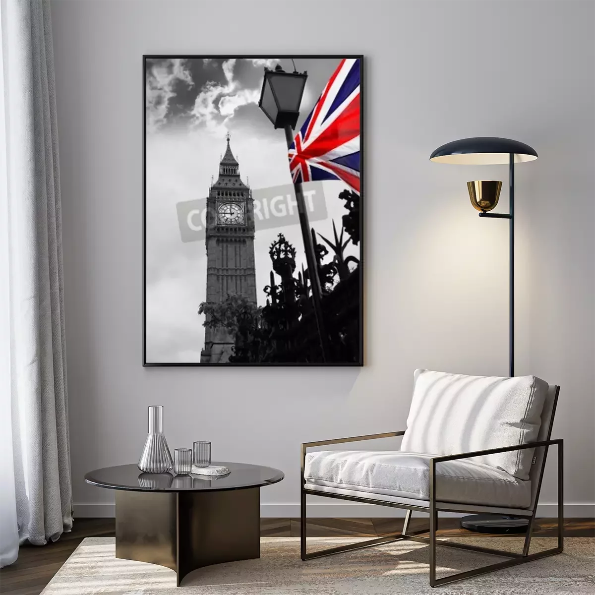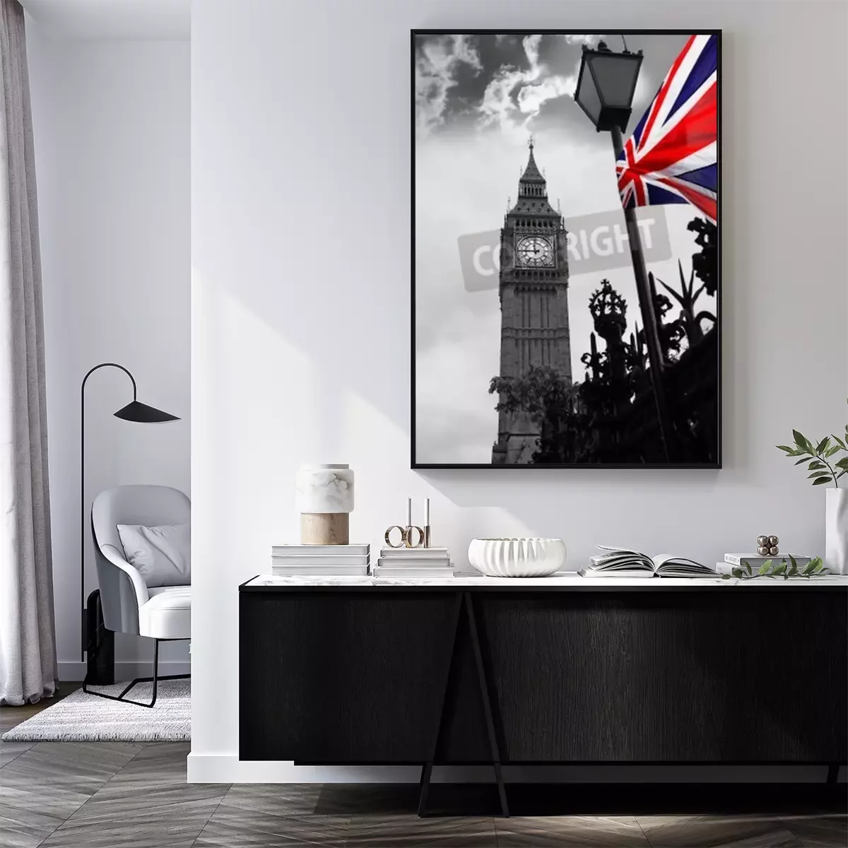 Poster London und Big Ben mit der Flagge von England