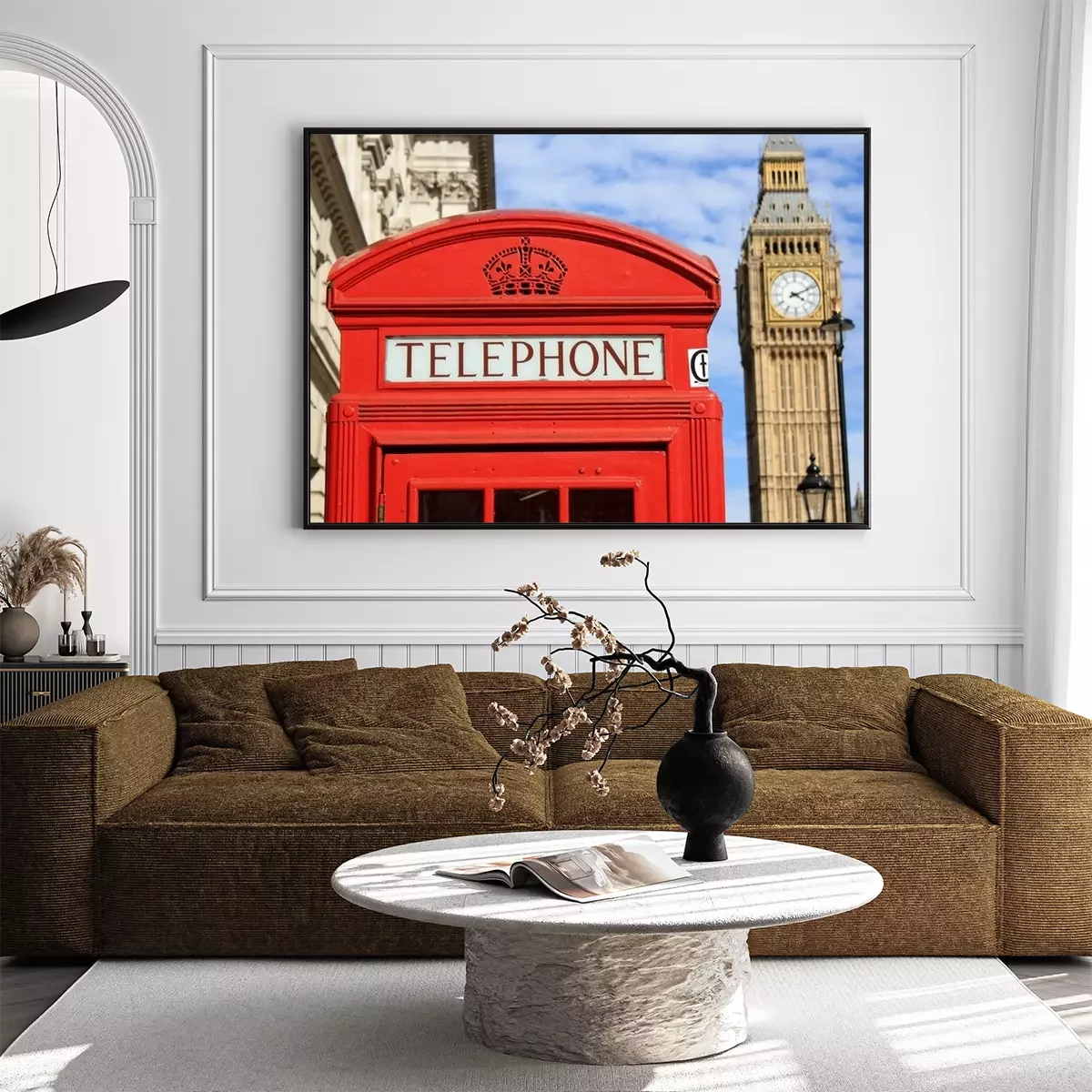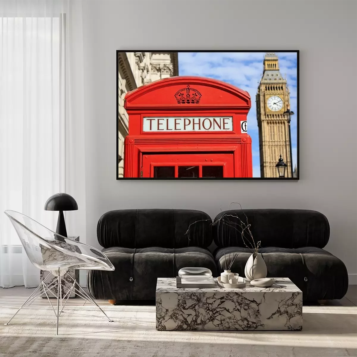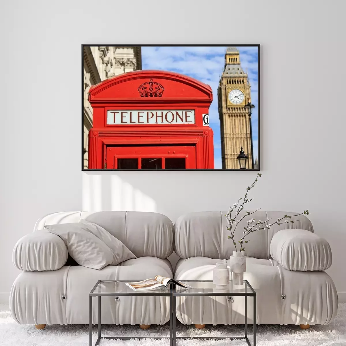 Poster Londoner Ansicht von Big Ben und Telefonzelle
