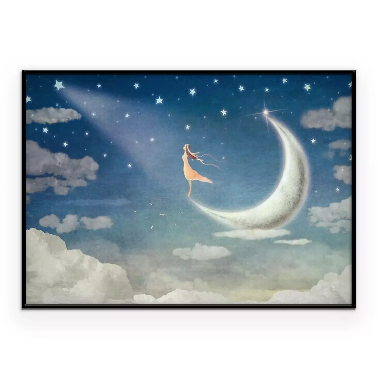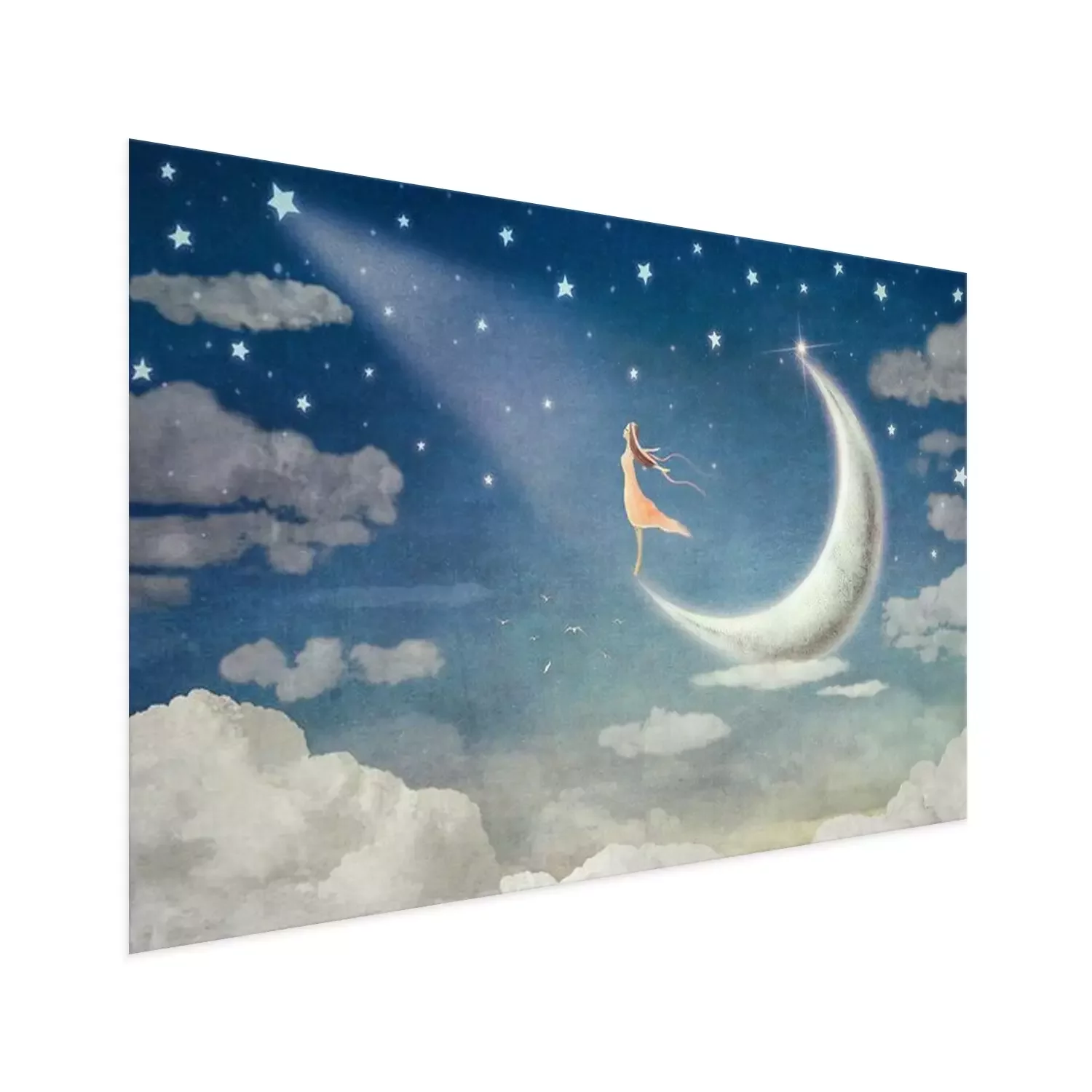 Poster: Mädchen auf dem Mond, beleuchtet von einem Stern