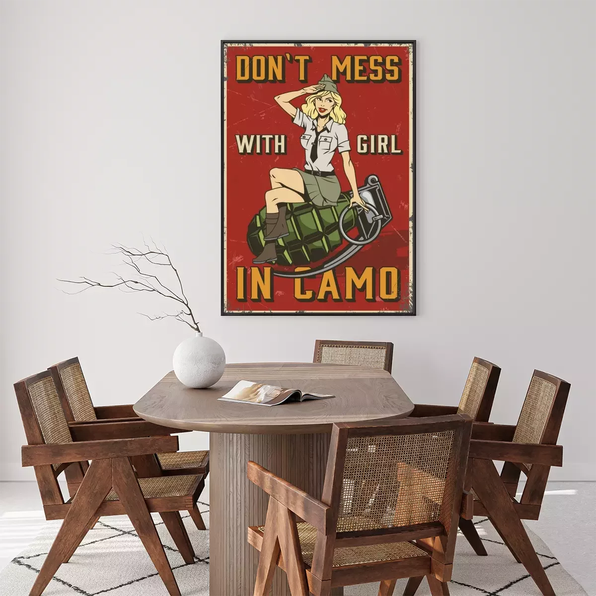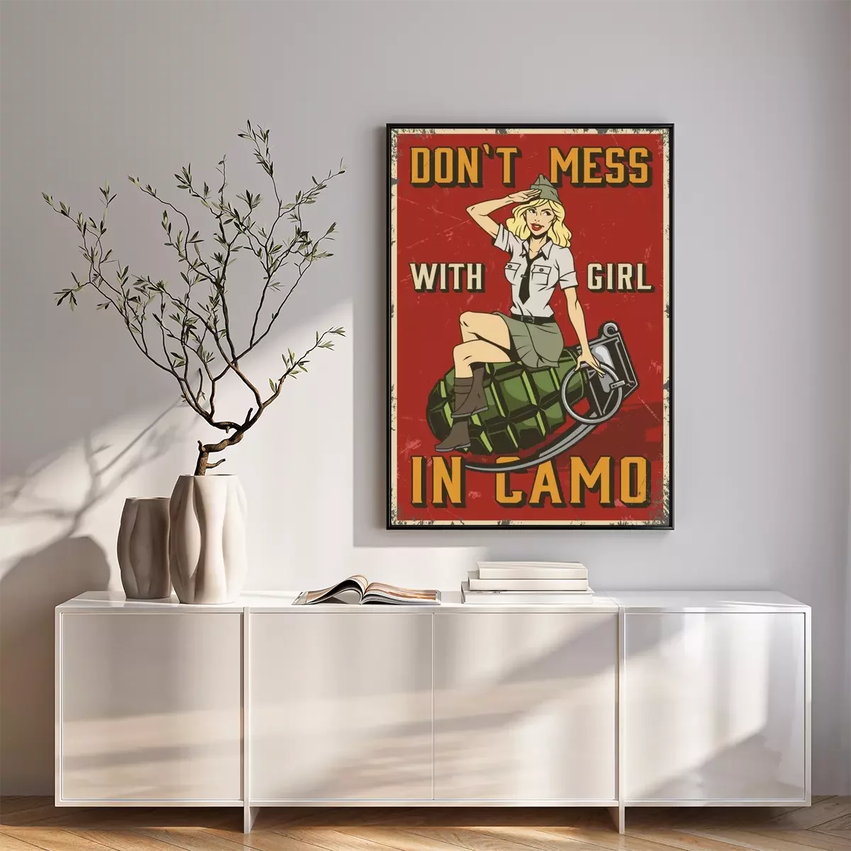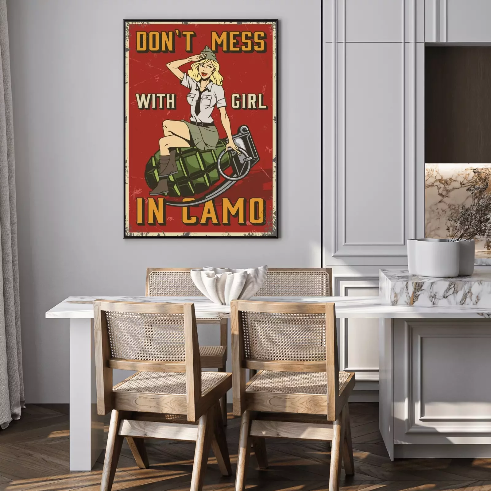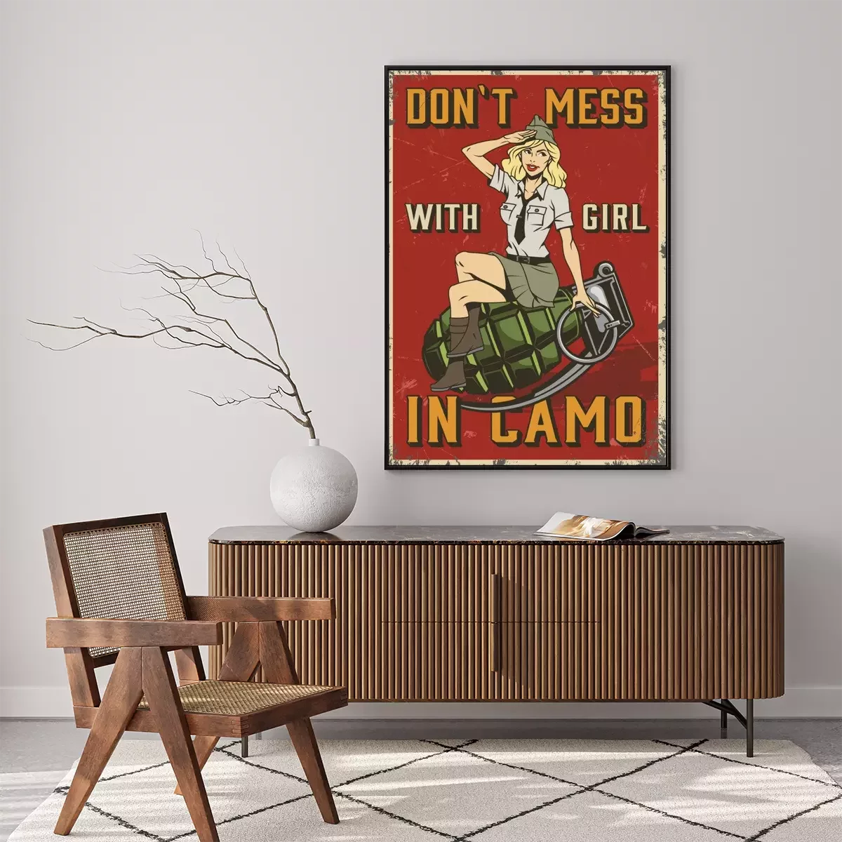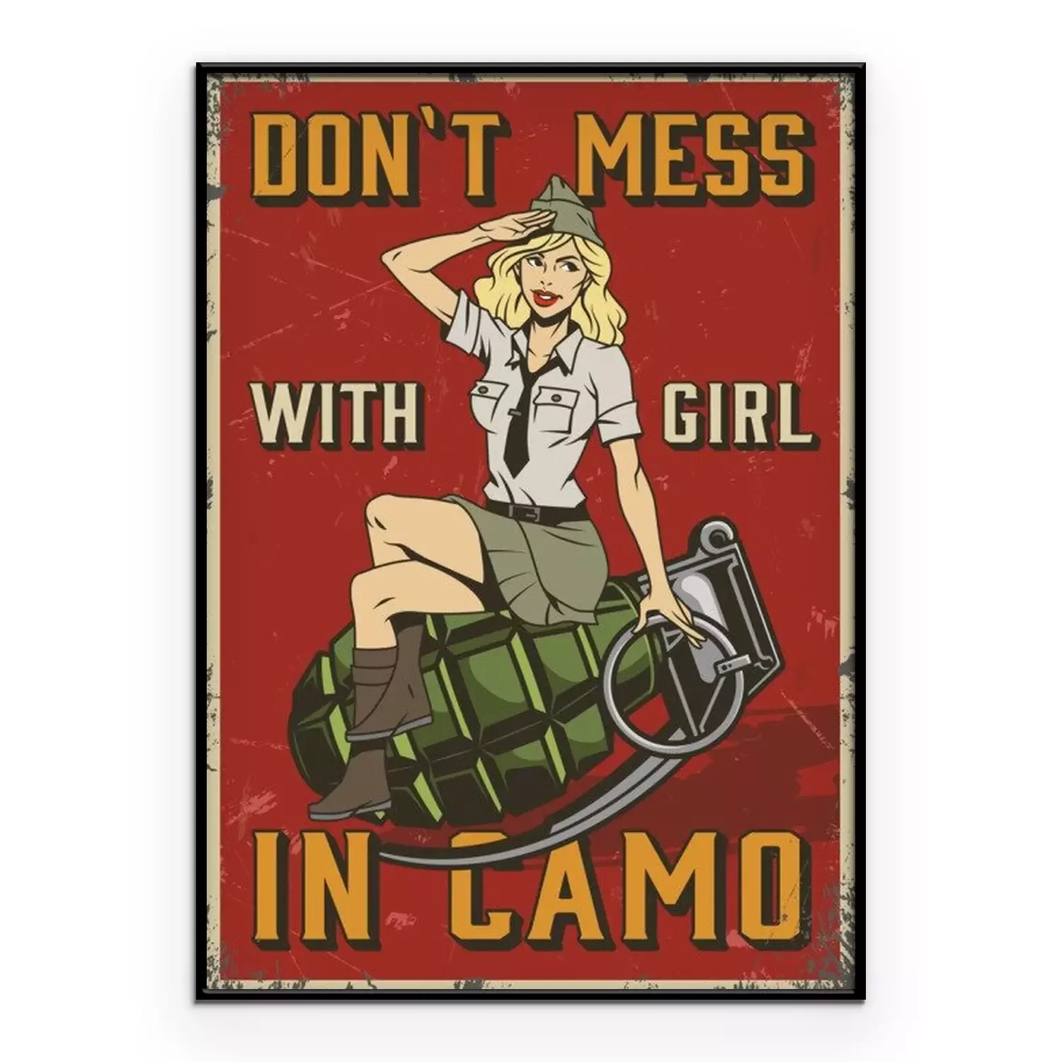 Poster: Mädchen auf militärischer Vintage-Illustration