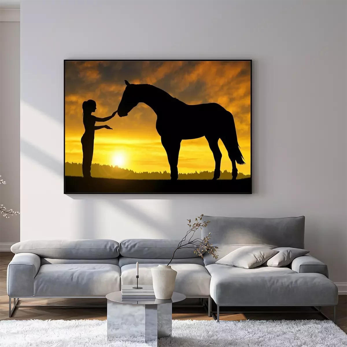 Frau und Pferd in SonnenstrahlenProblemlose Lieferung durch vertrauenswürdige Spediteure