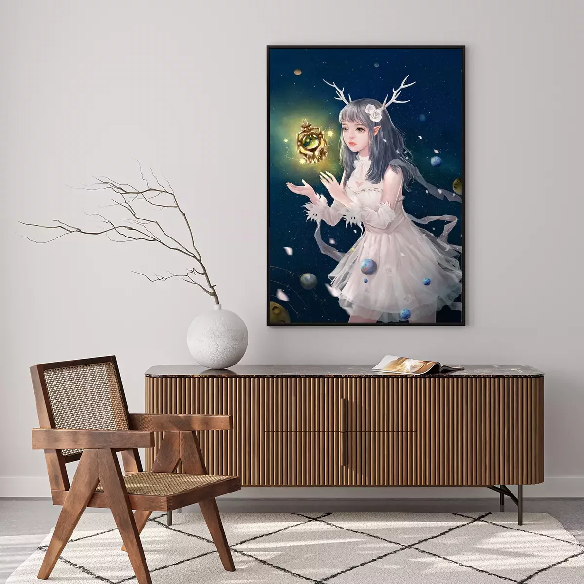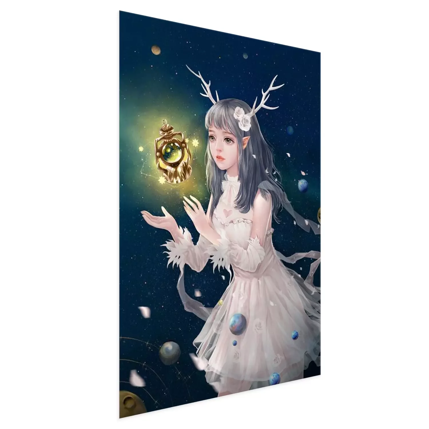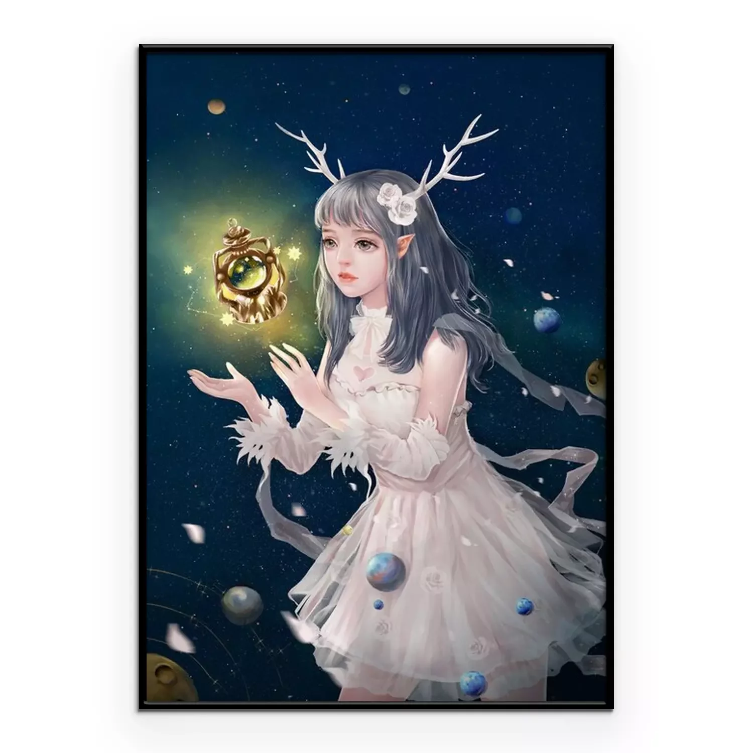 Poster: Mädchen mit Elfenohren und kosmischem Hintergrund