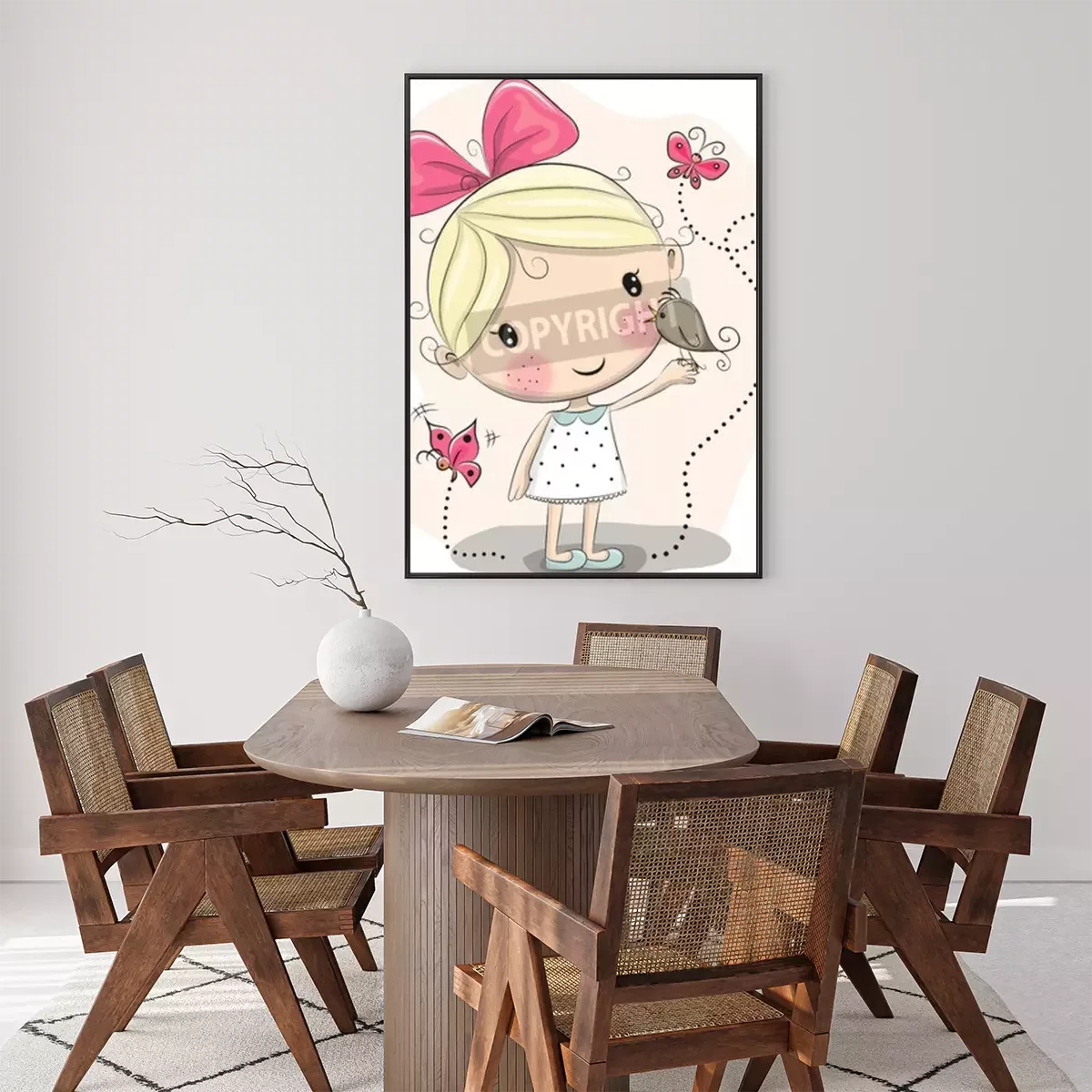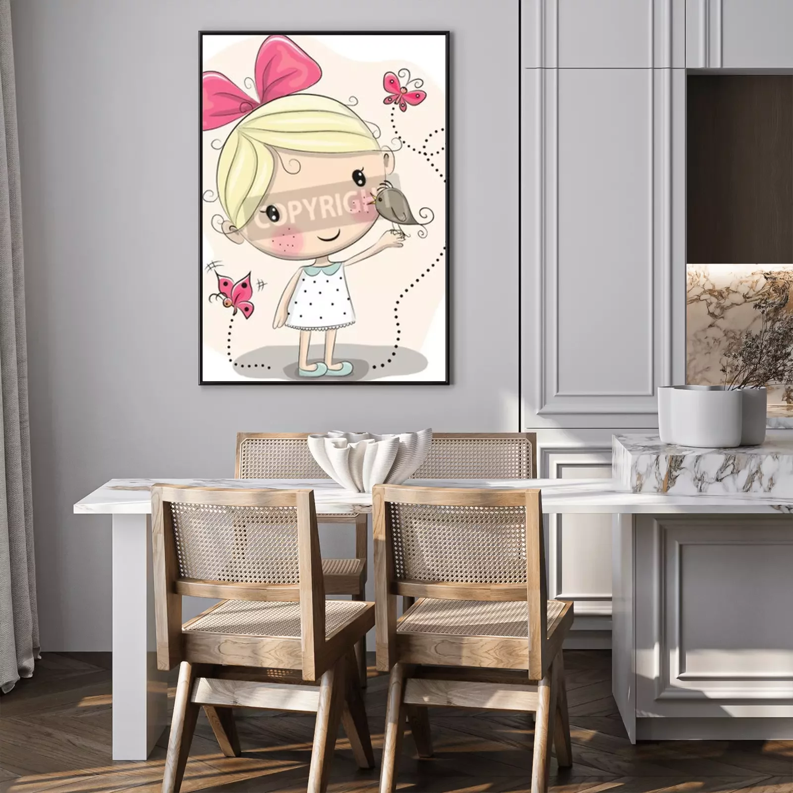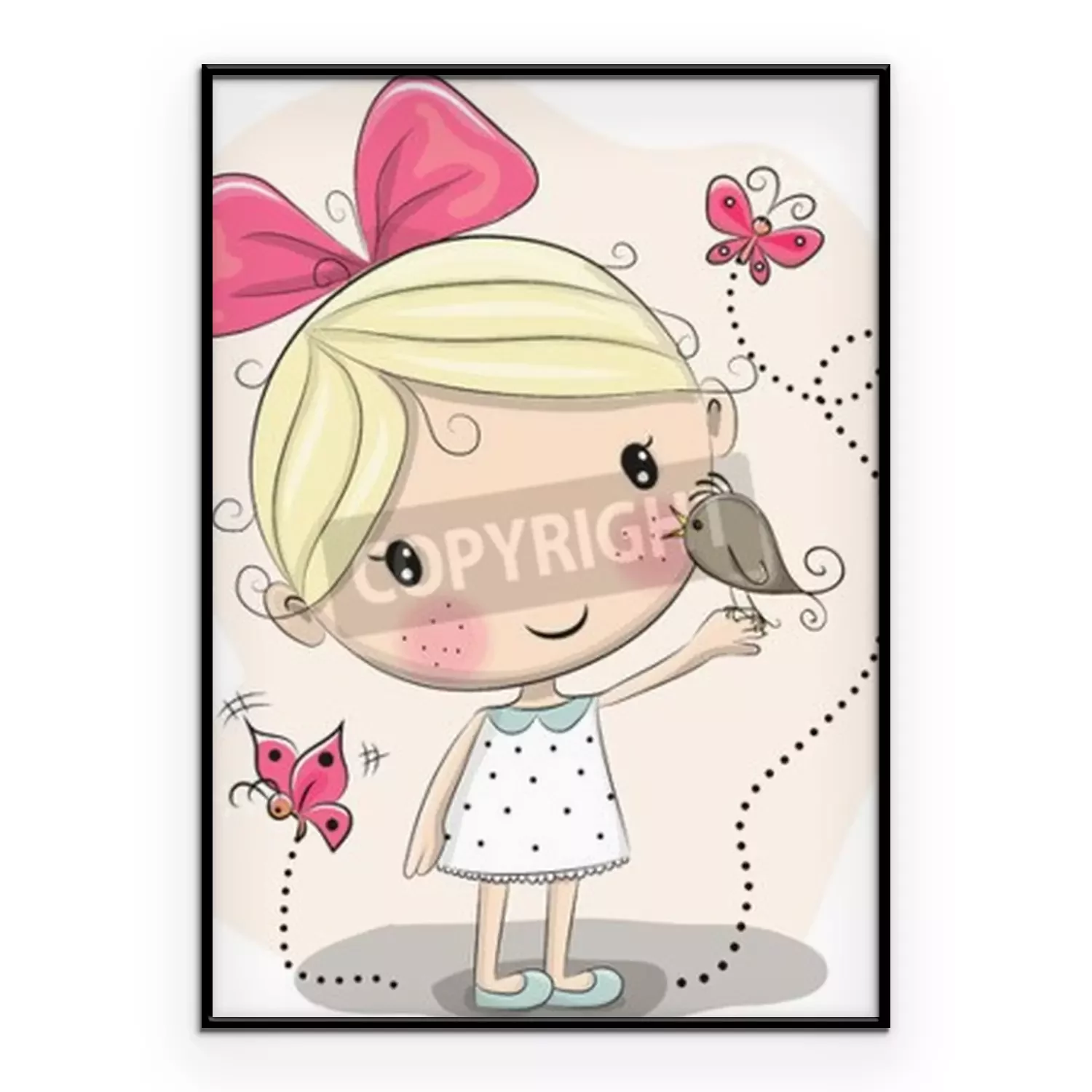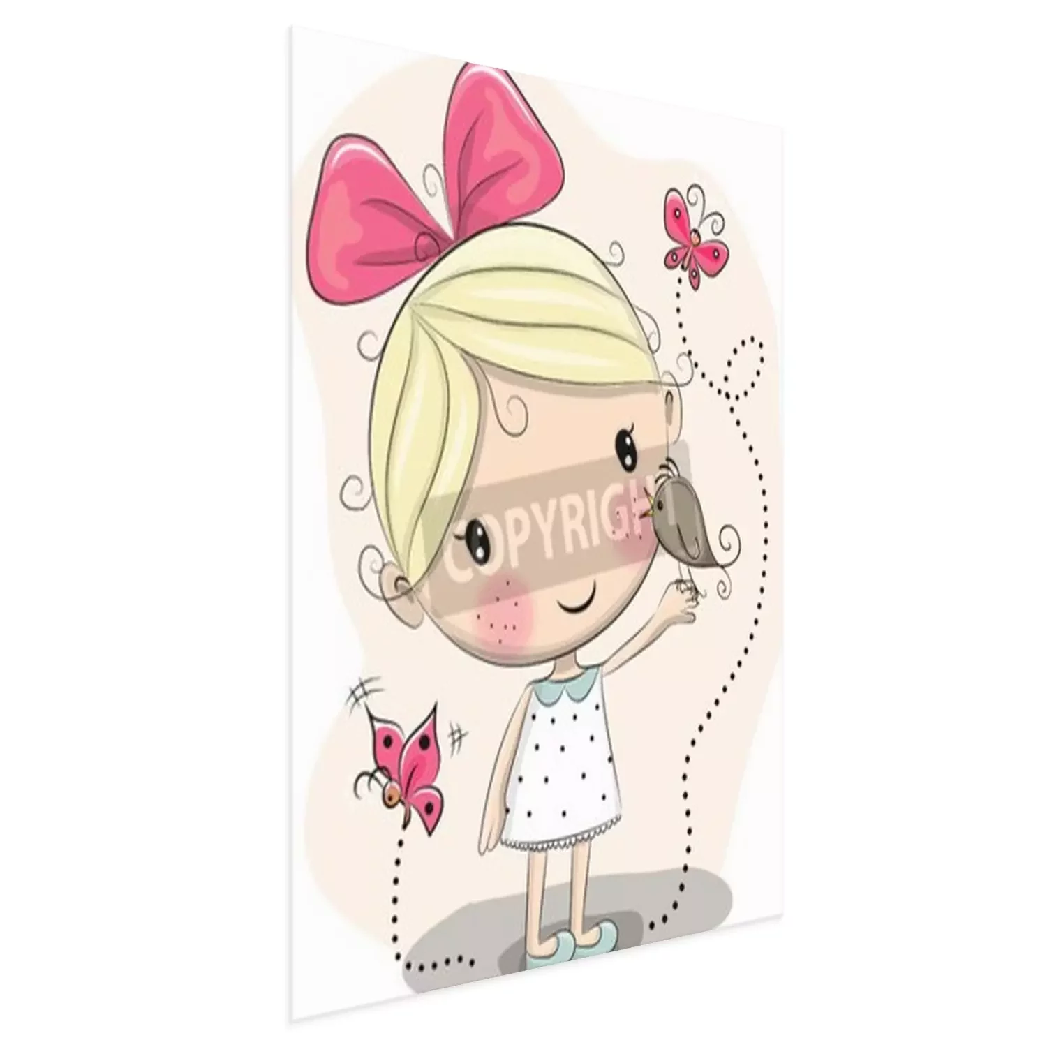 Poster: Mädchen mit rosa Schleife und Schmetterlinge