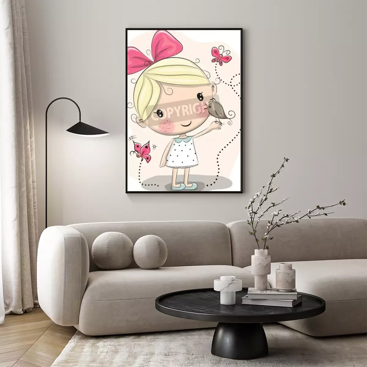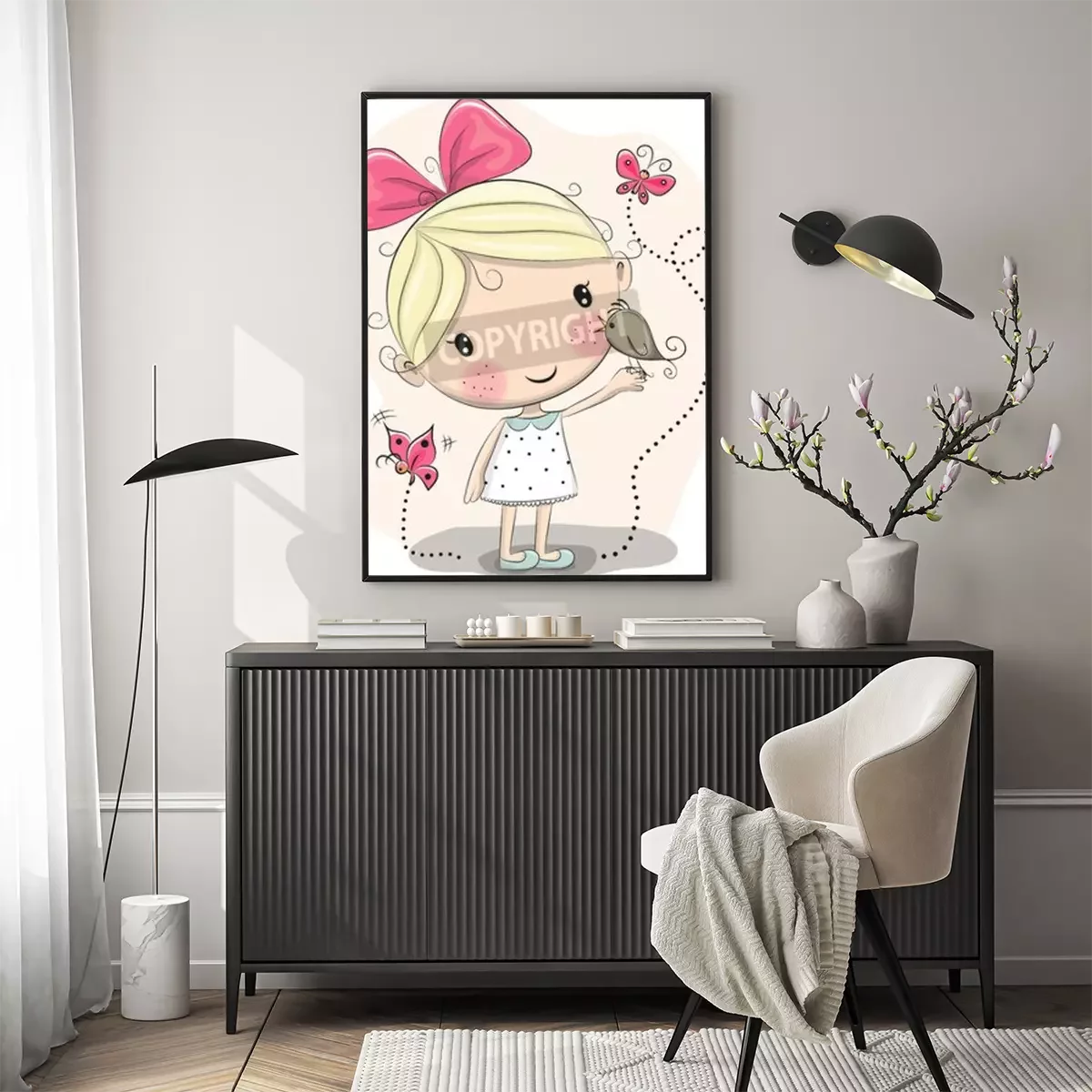 Poster Mädchen mit rosa Schleife und Schmetterlinge