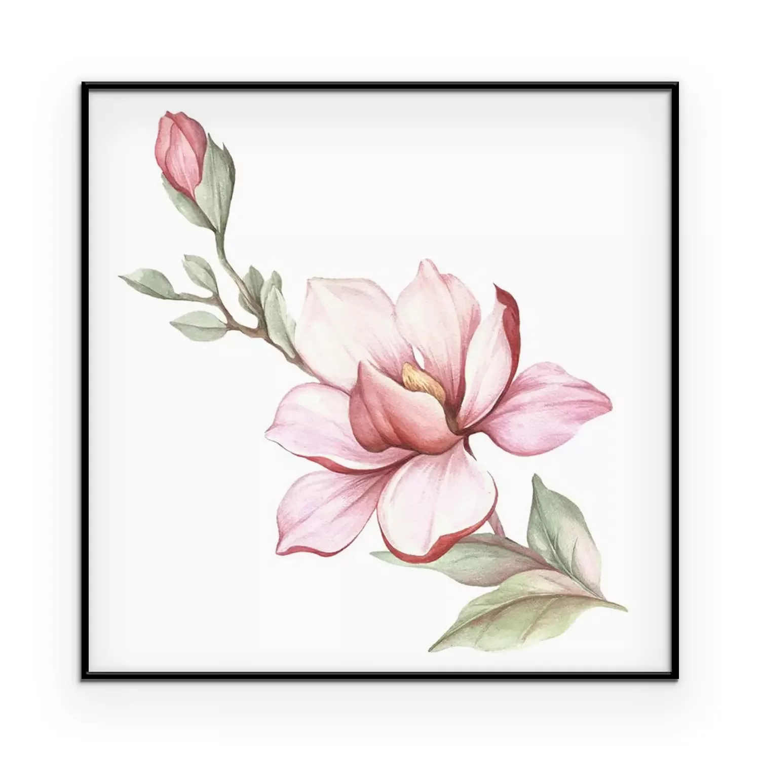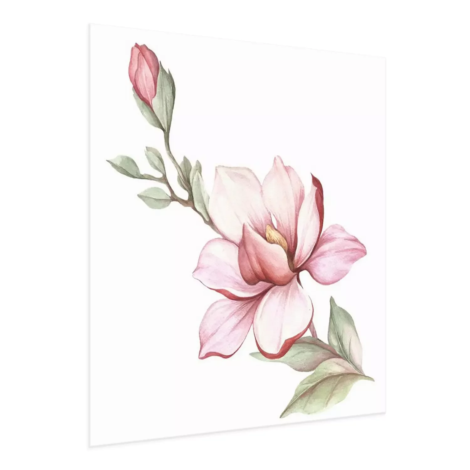 Poster: Magnolie auf weißem Hintergrund und unentwickelte Blütenknospe