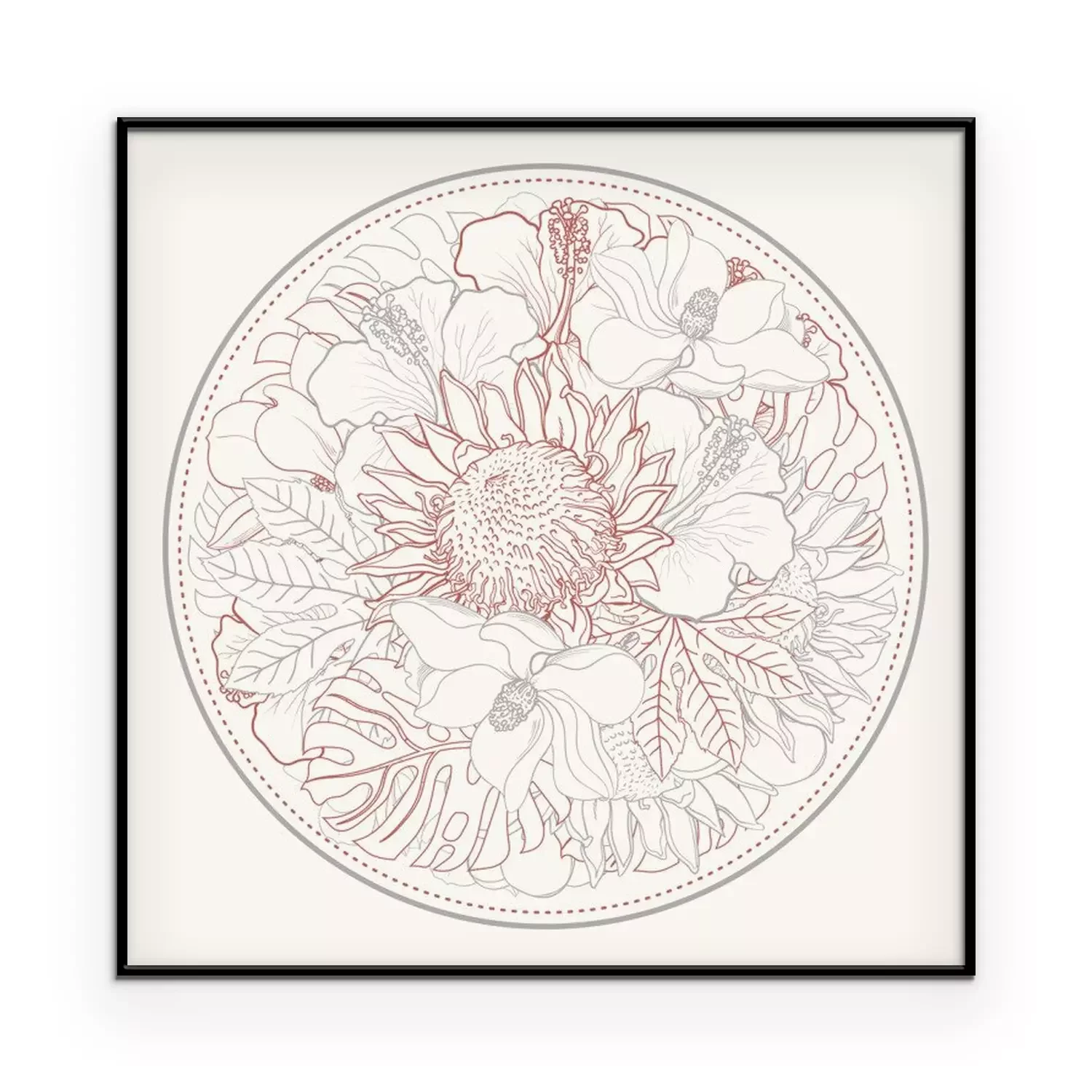 Poster: Magnolien und tropische Pflanzen bunt umrissen