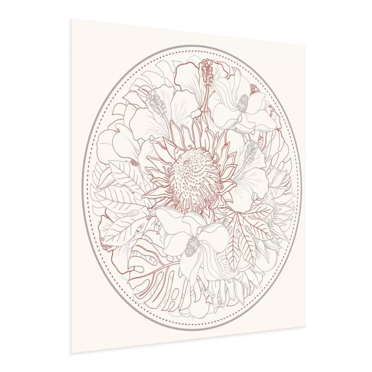 Poster Magnolien und tropische Pflanzen bunt umrissen