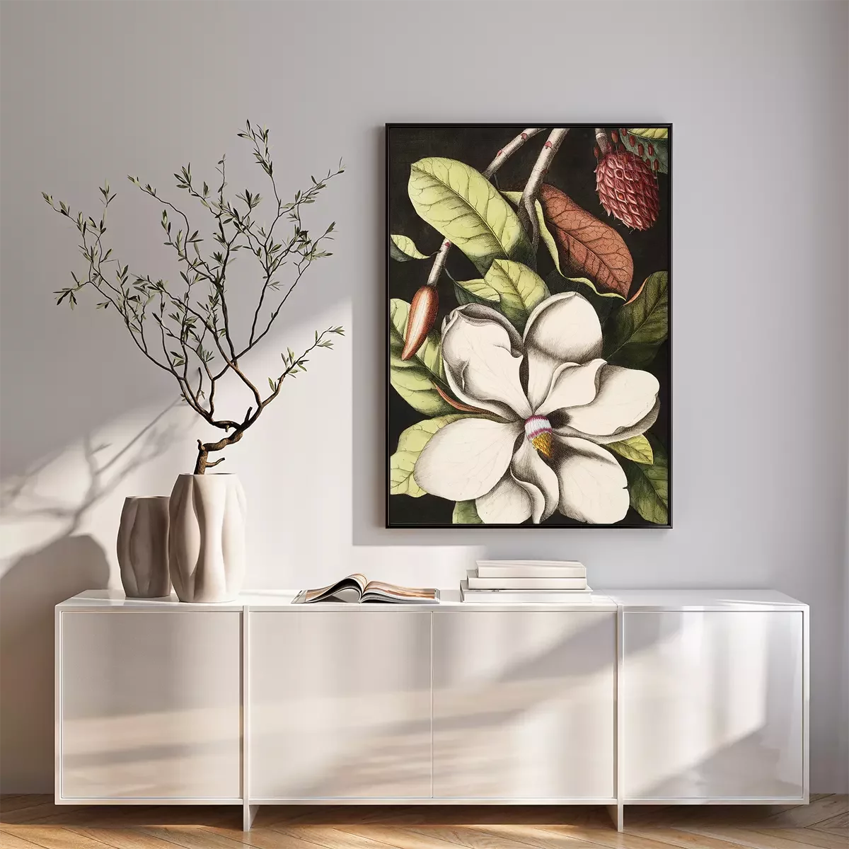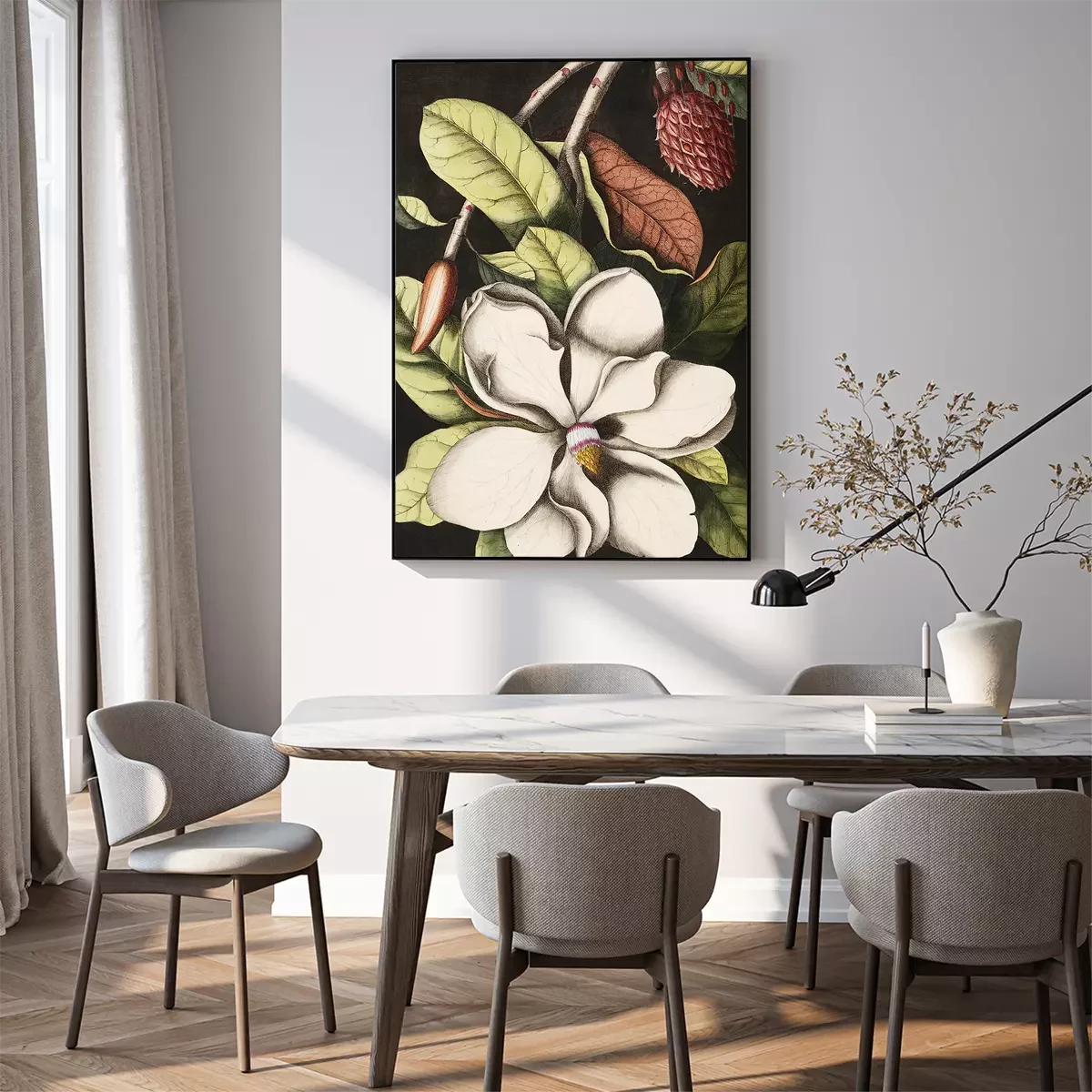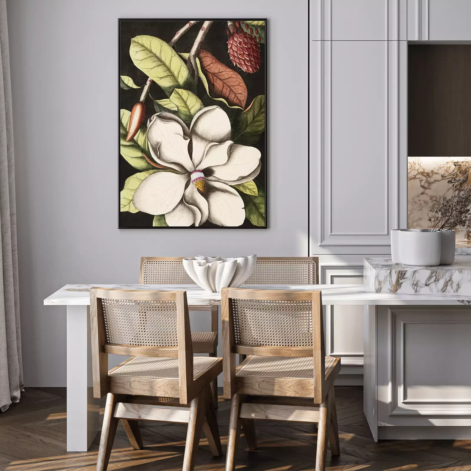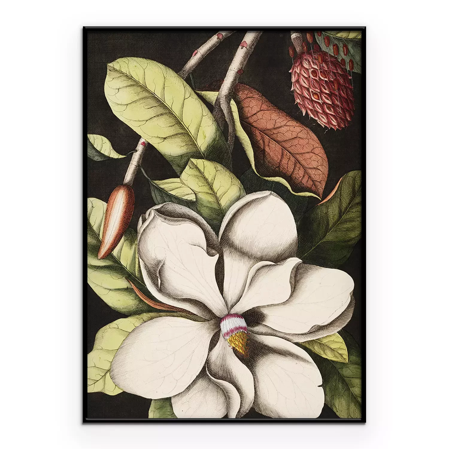 Poster: Magnolienblüte auf dunklem Hintergrund