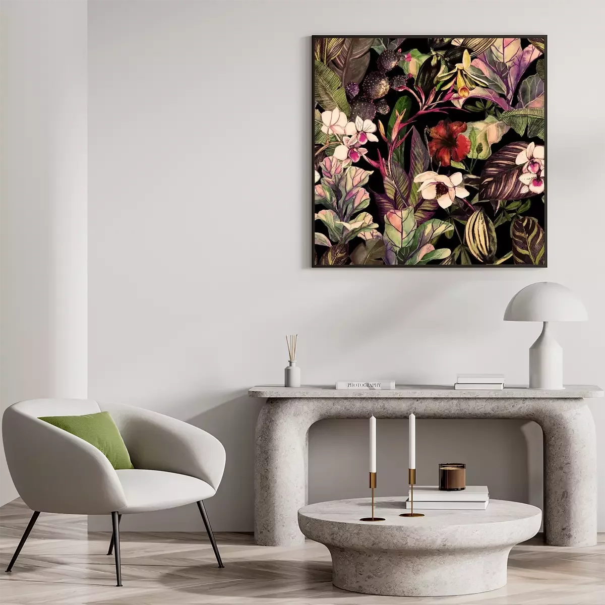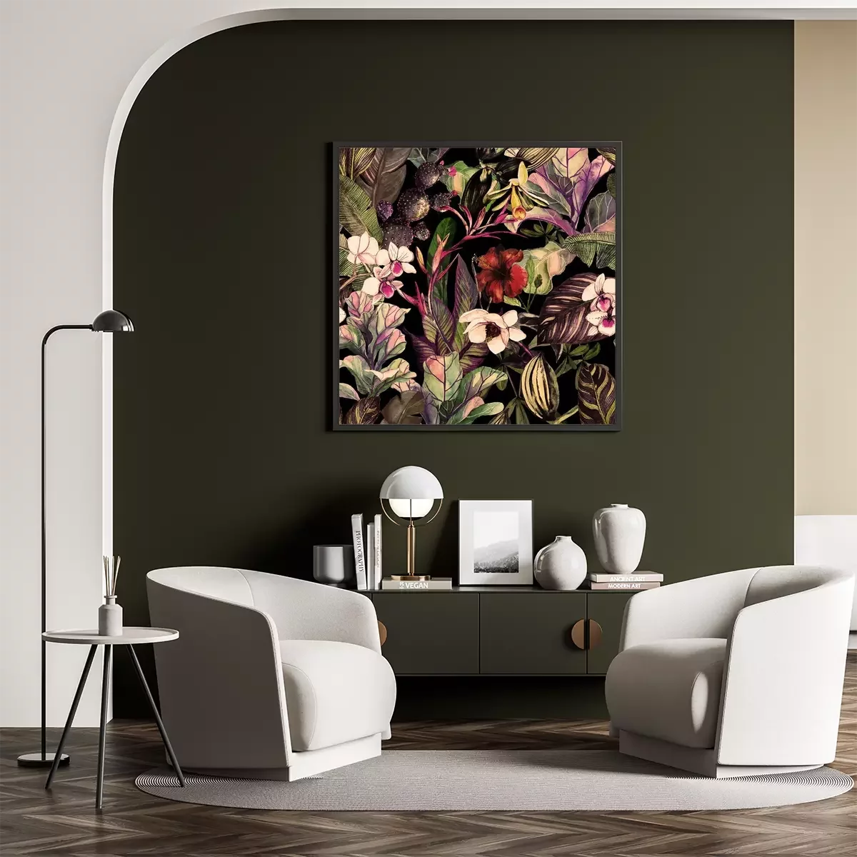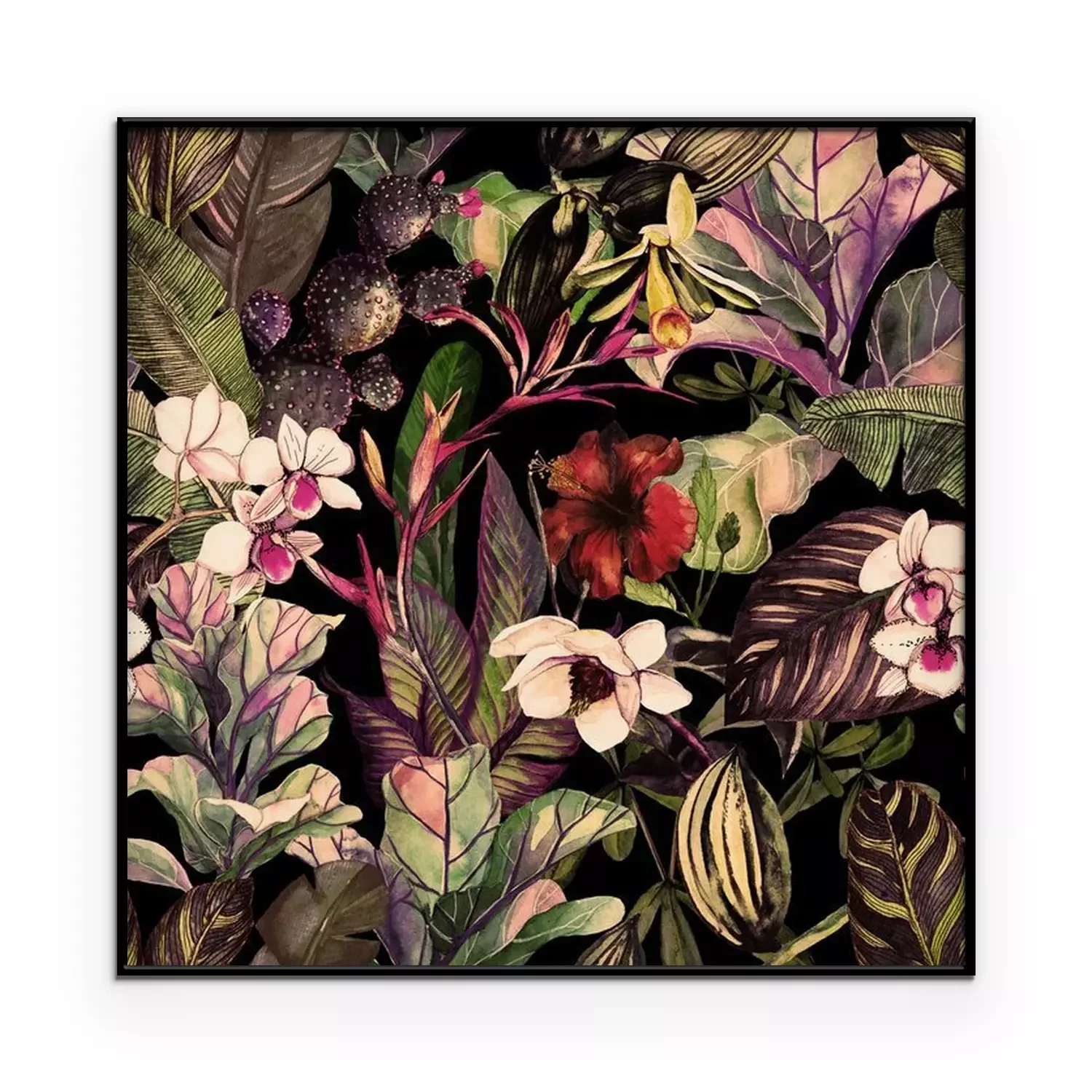 Seamless pattern with tropical leaves and flowers. watercolor pattern with a magnolia flower, orchids, cactus, white orchid phalinopsis. Botanical background