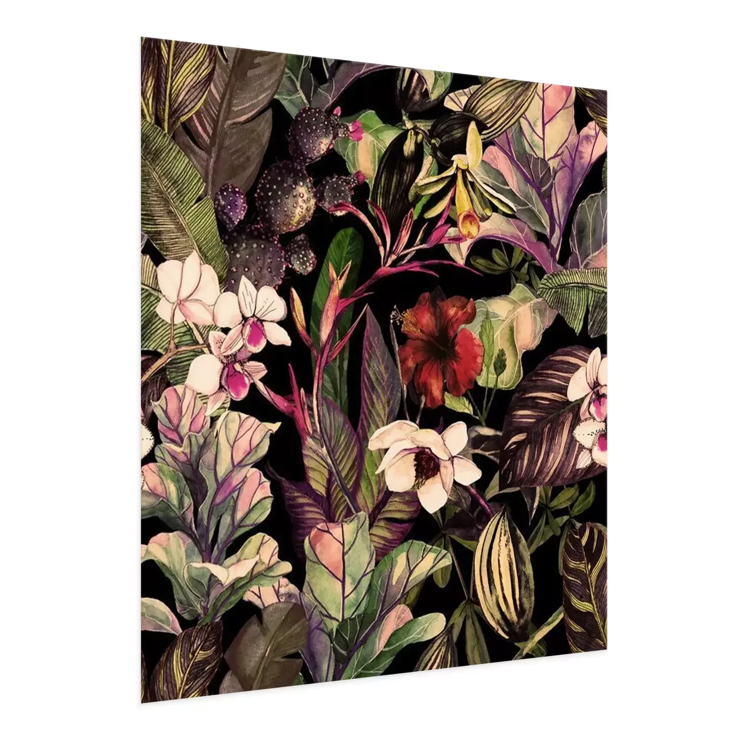 Nahtloses Muster mit tropischen Blättern und Blüten. Aquarellmuster mit einer Magnolienblume, Orchideen, Kaktus, weiße Orchideenphalinopsis. Botanischer Hintergrund