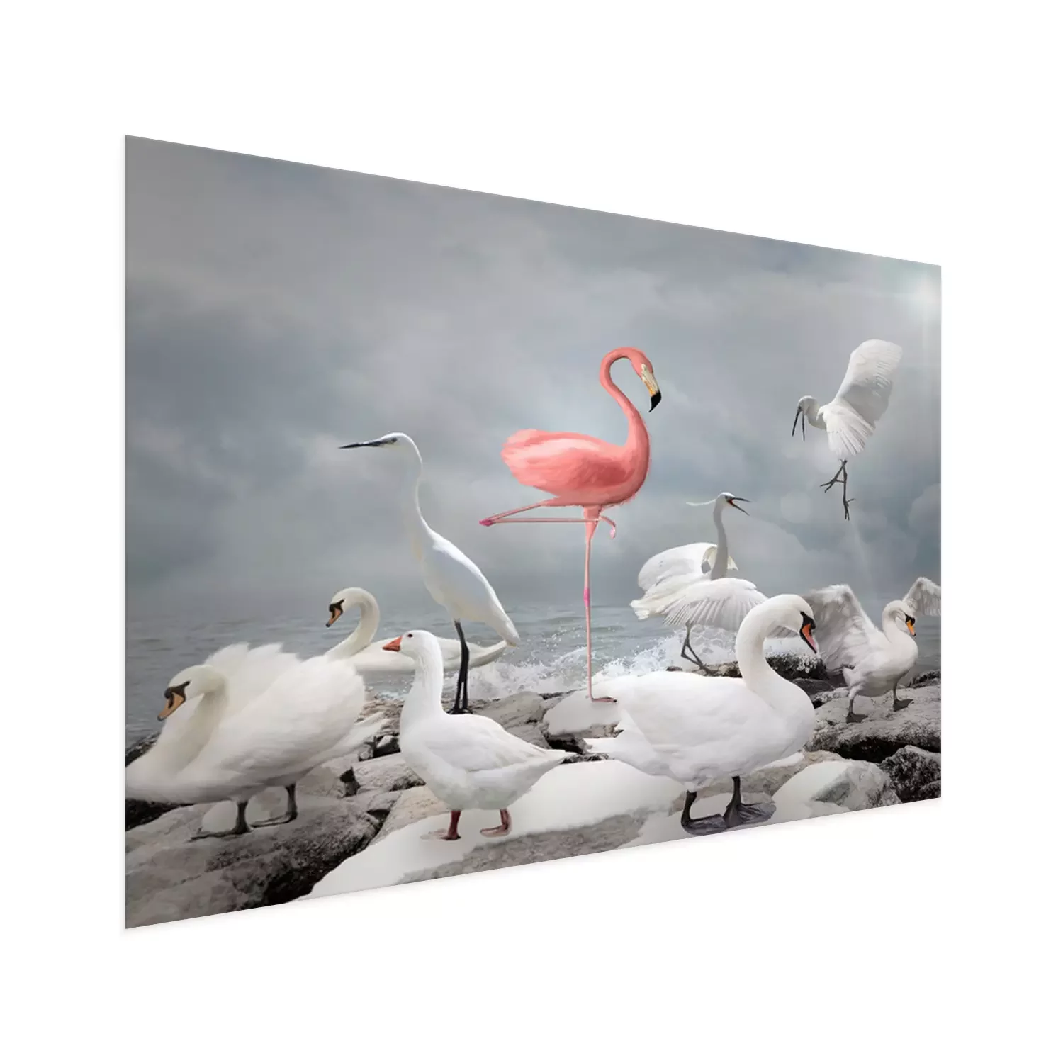 Poster Majestätischer Flamingo unter weißen Vögeln