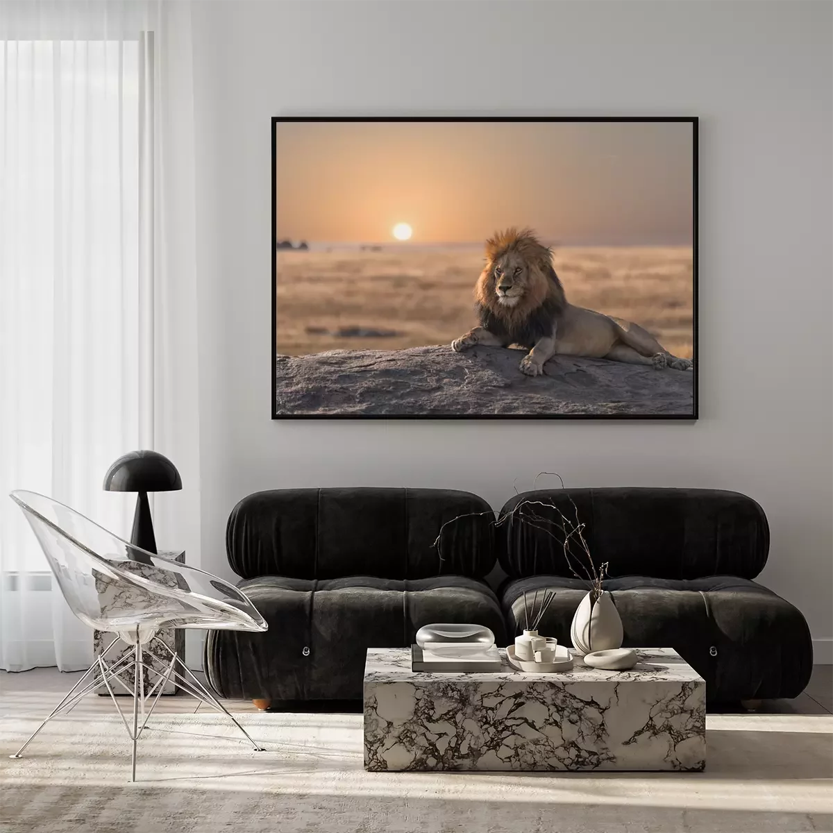 Poster: Majestätischer Löwe bei Sonnenuntergang