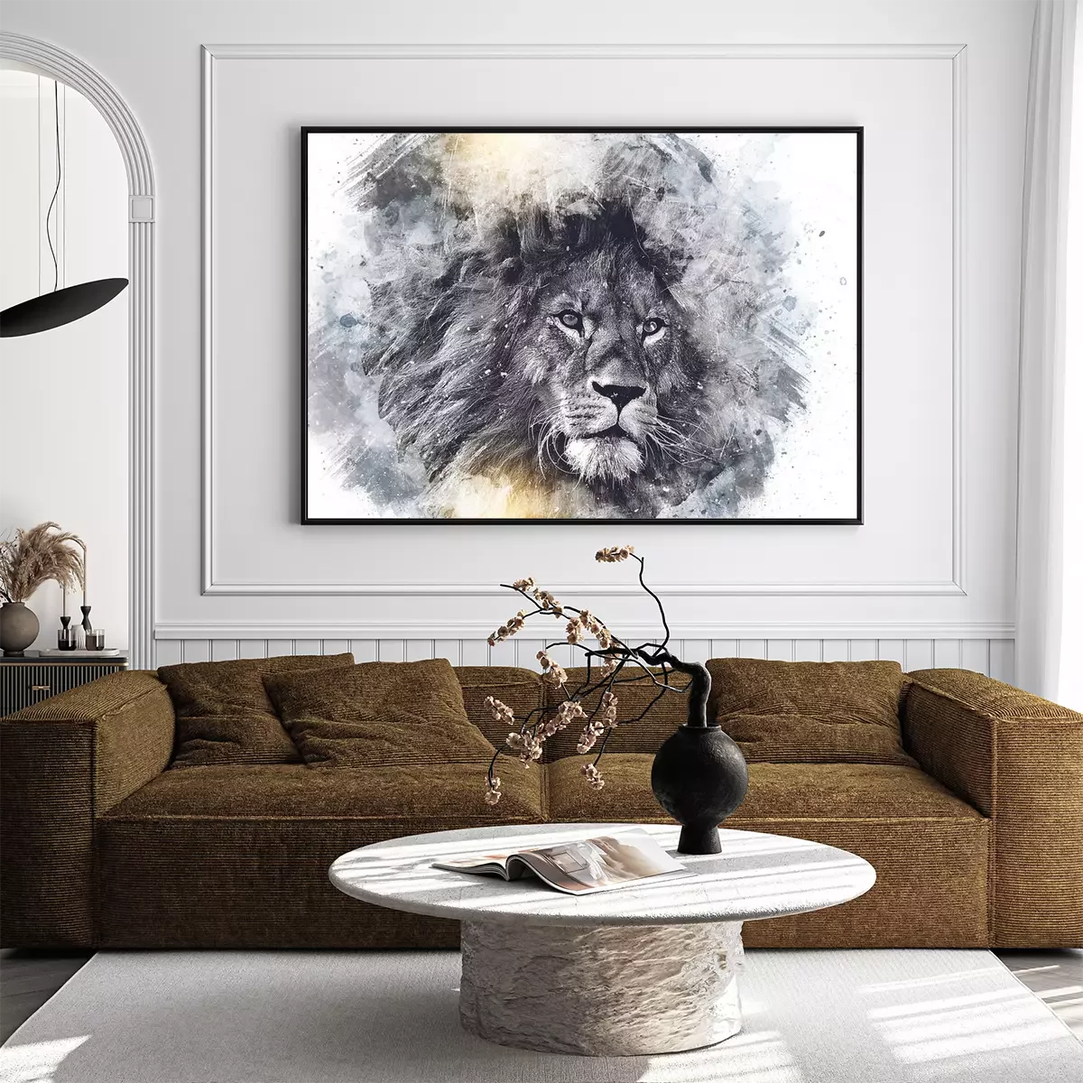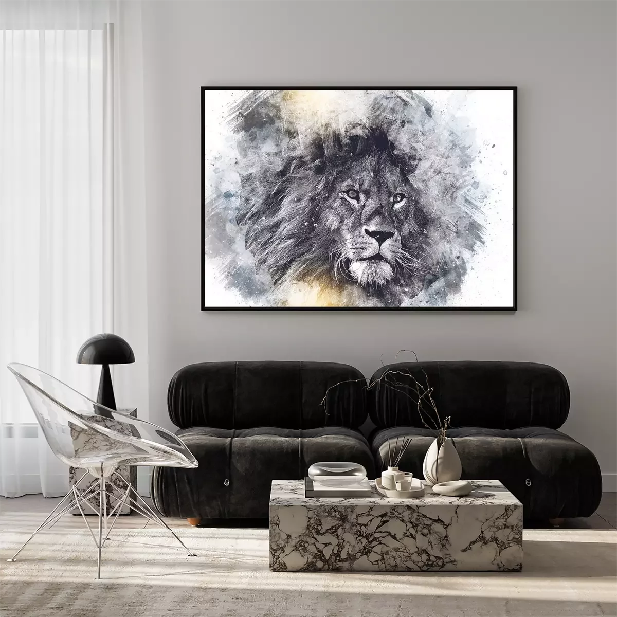Poster Majestätischer Löwe in Grautönen