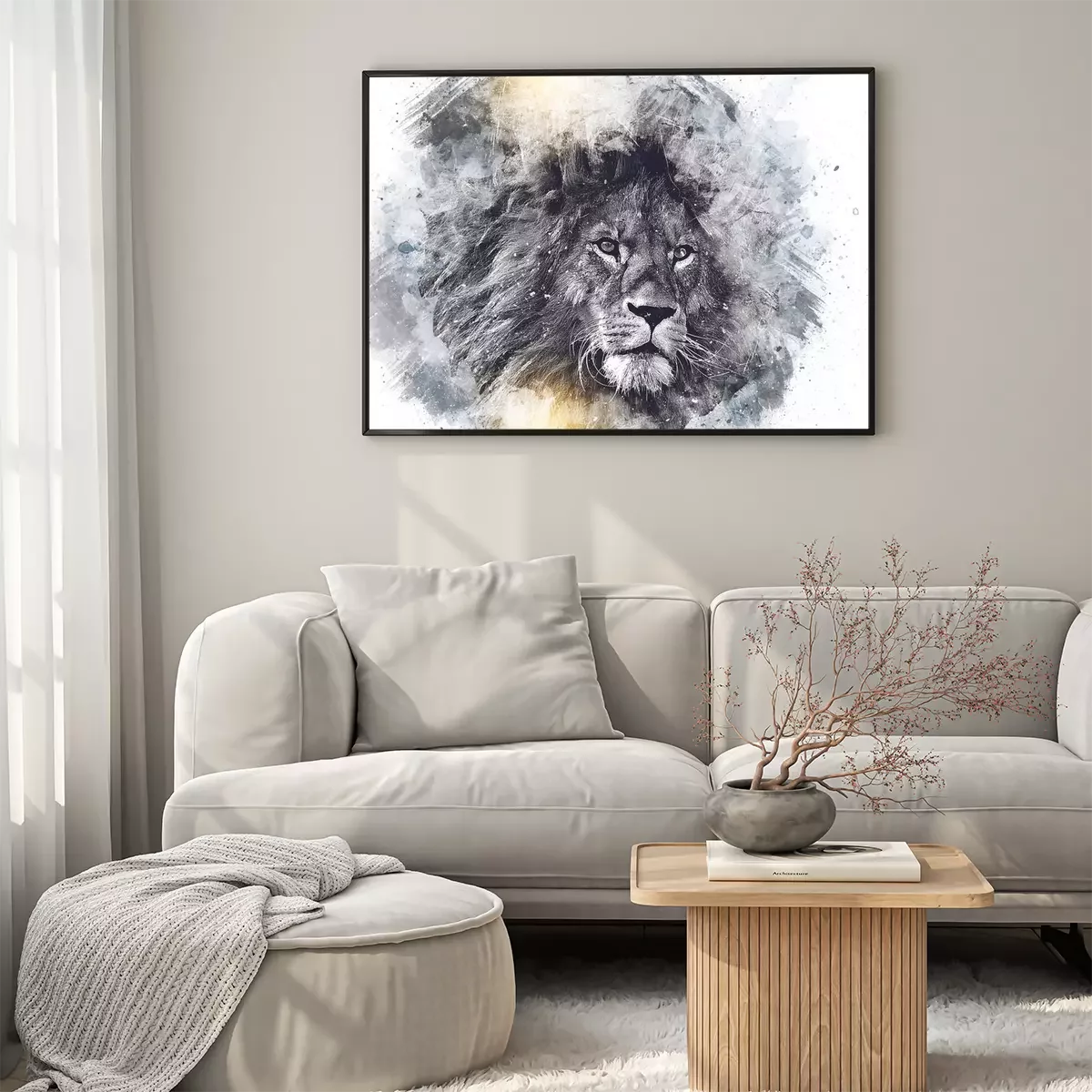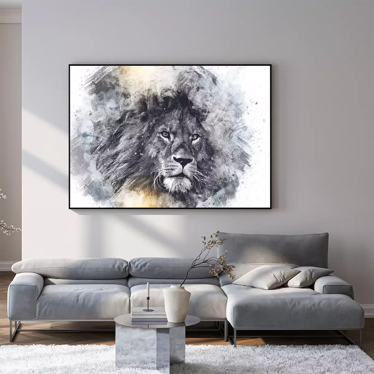 Poster: Majestätischer Löwe in Grautönen