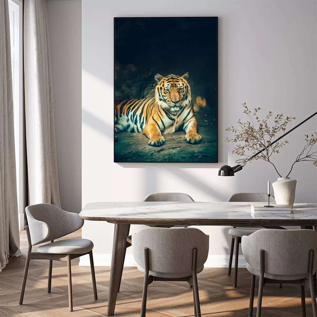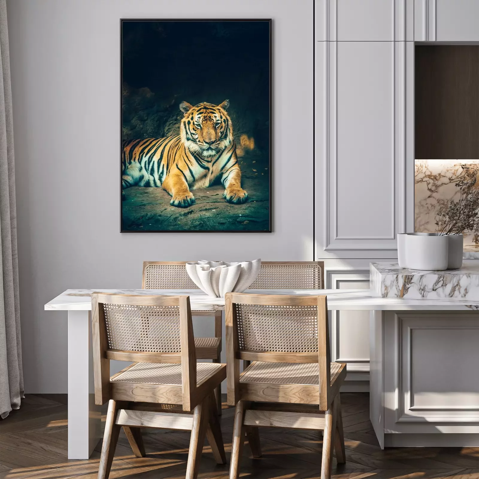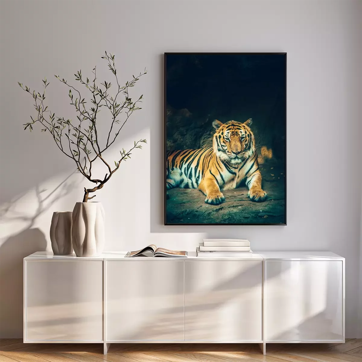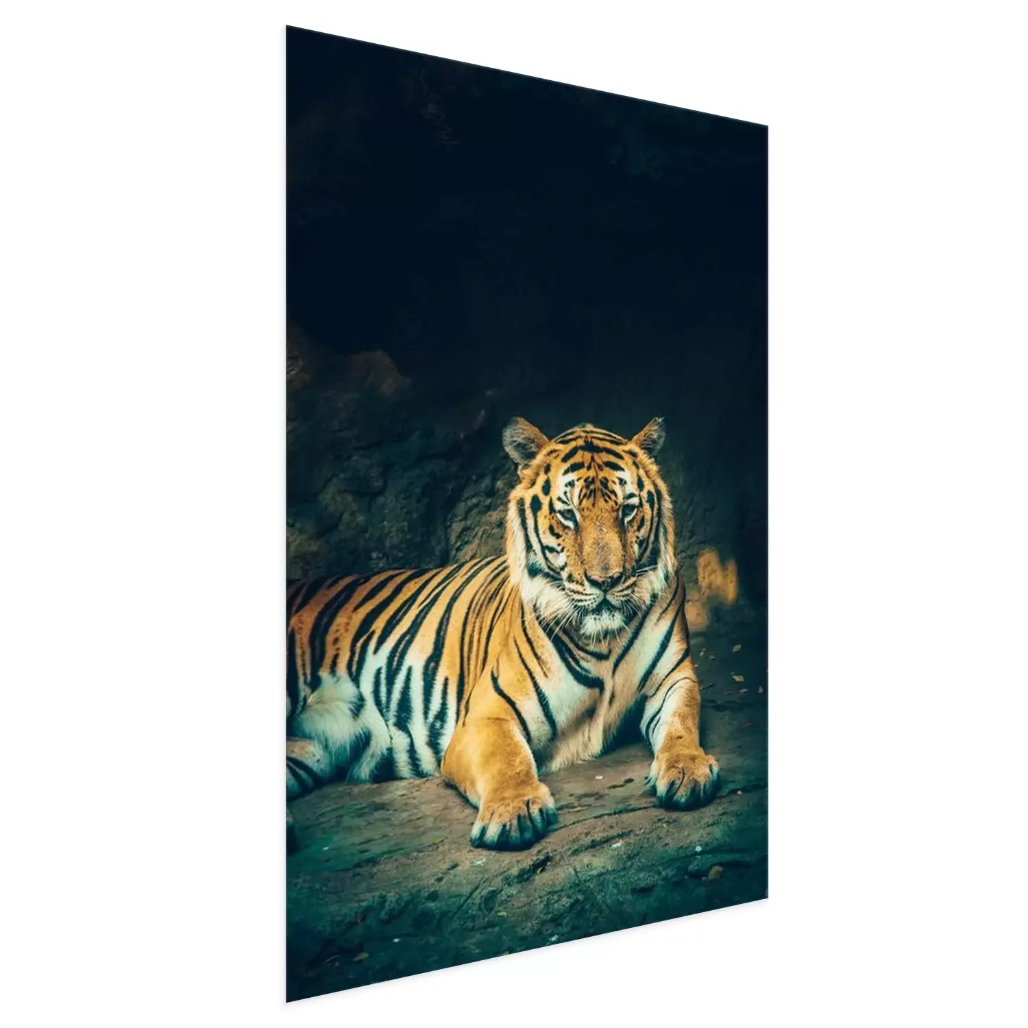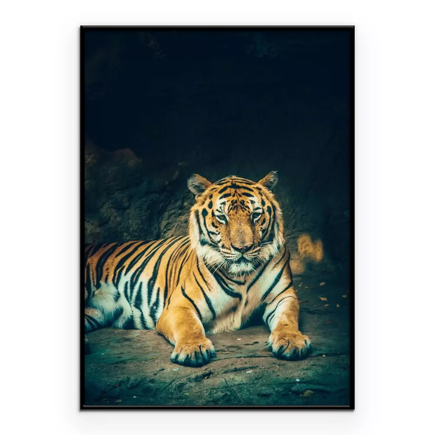 Poster: Majestätischer tiger mit felsen im hintergrund