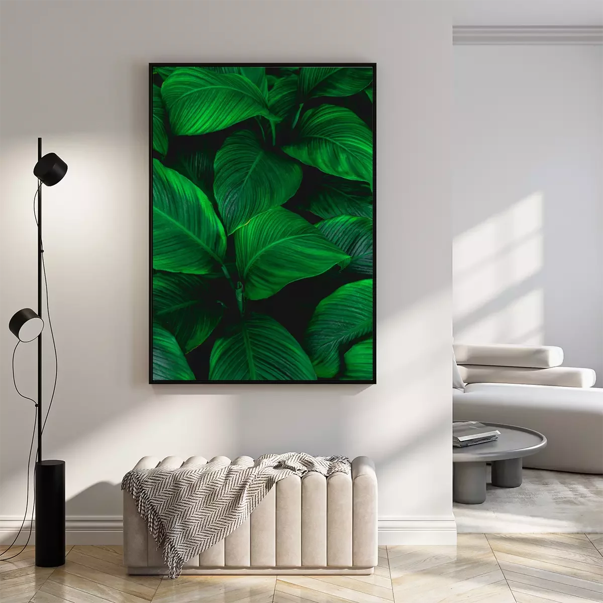 Leaves of Spathiphyllum cannifolium, abstract green texture, nature background, tropical leaf
