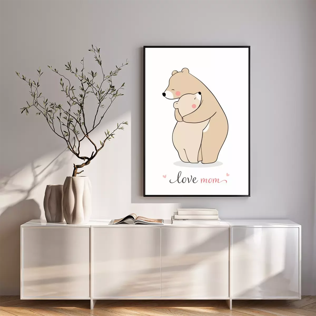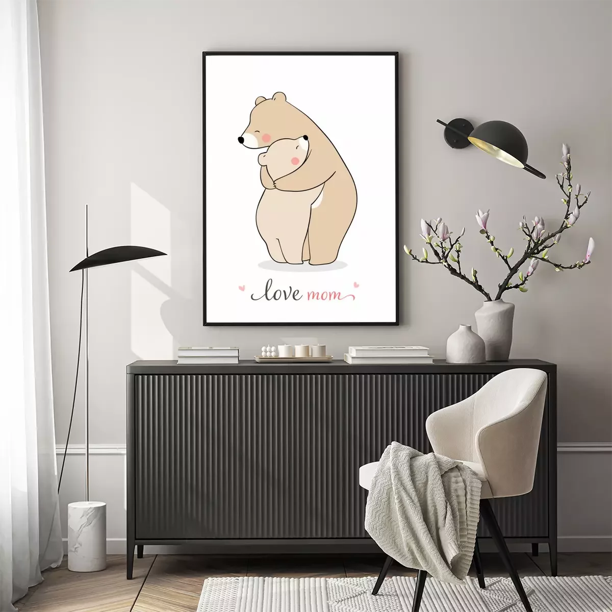 Poster: Mama Bär und Baby Bär in einer Umarmung