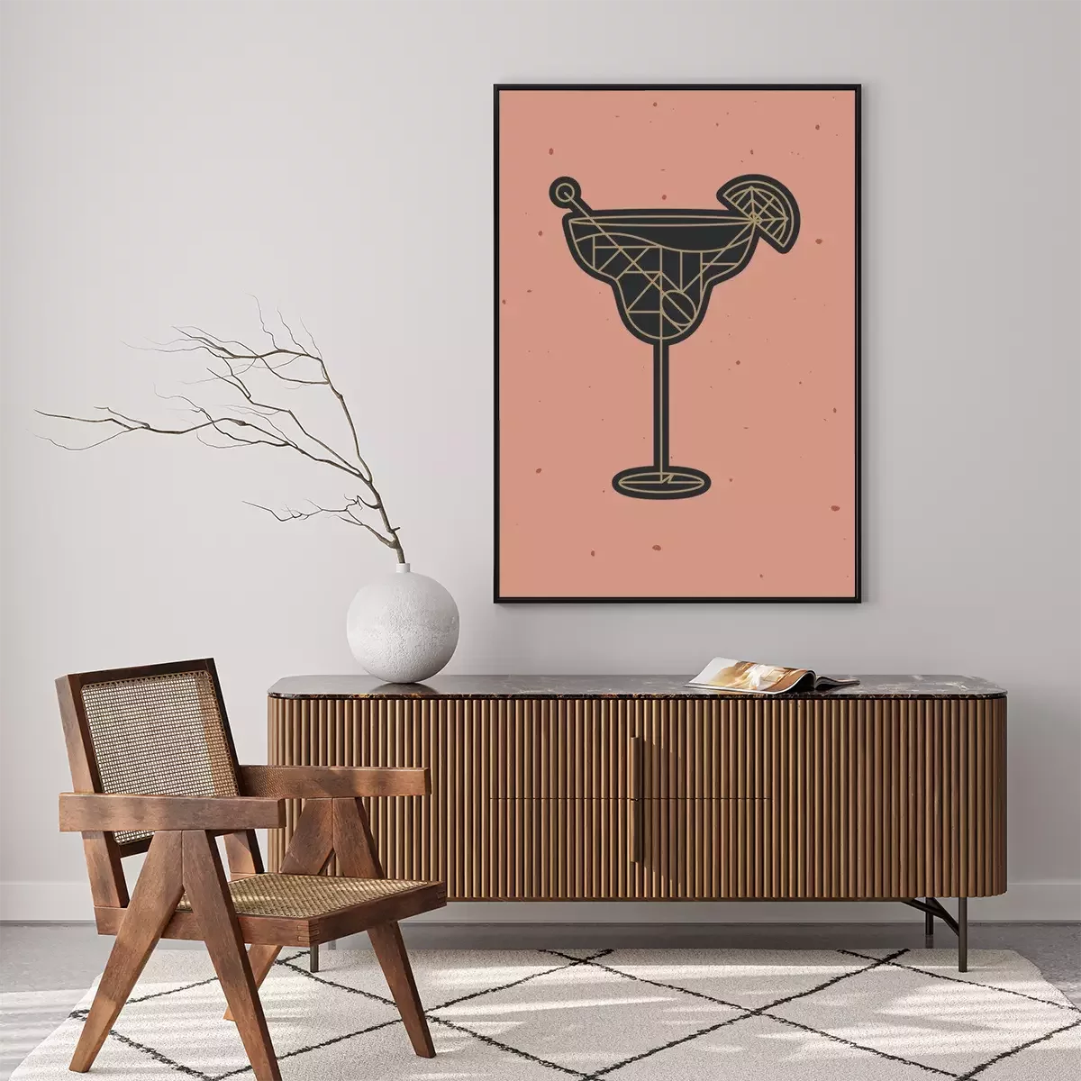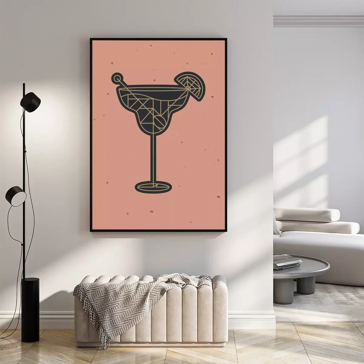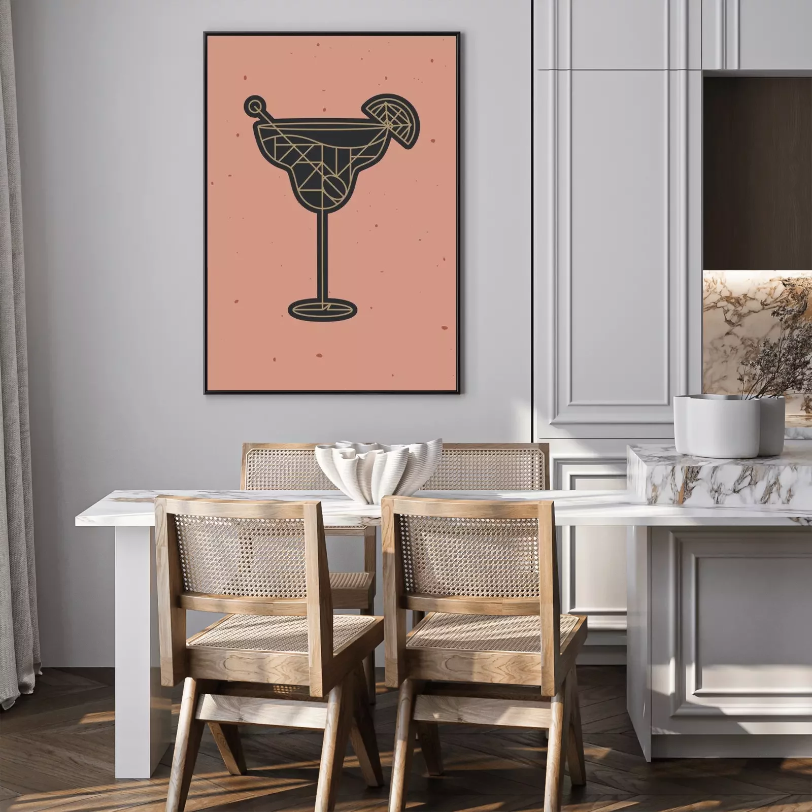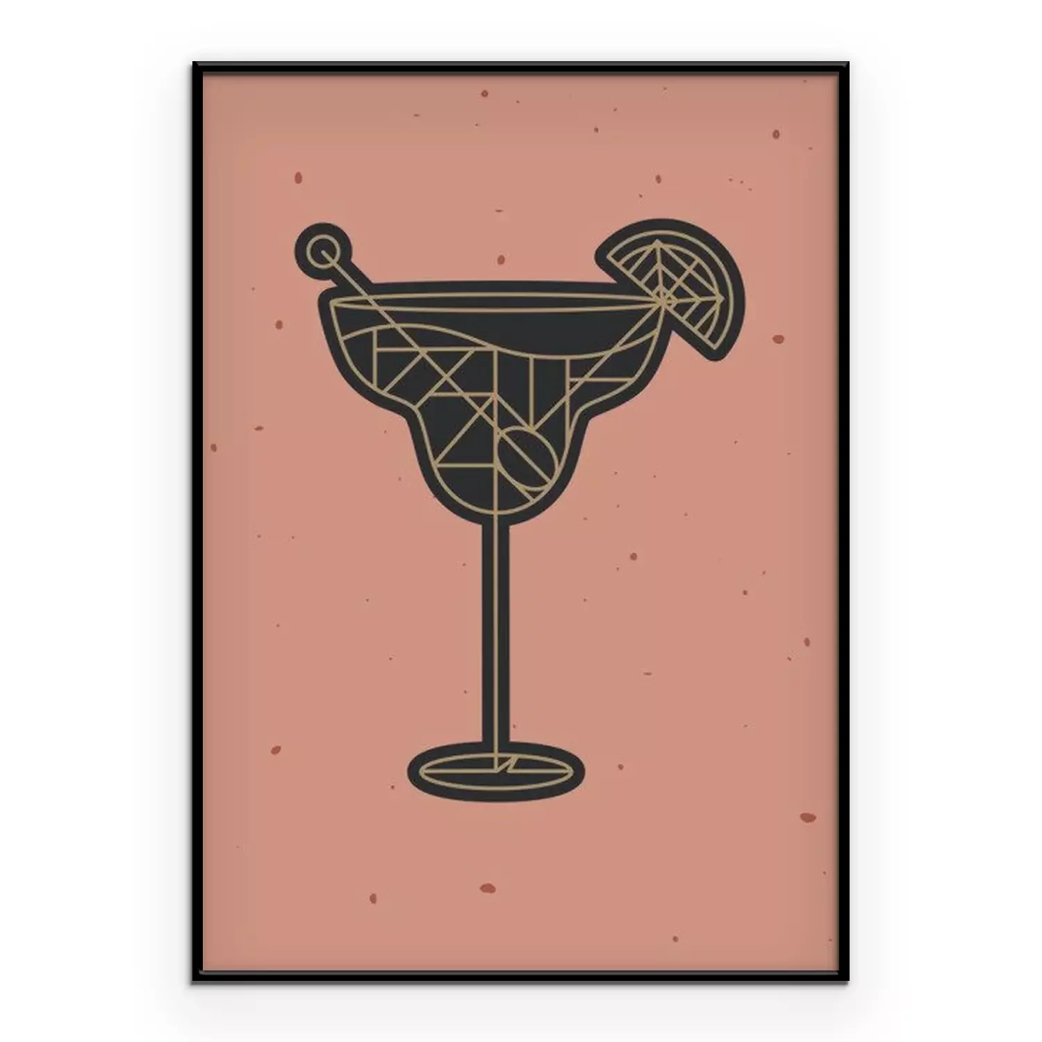 Poster: Margarita-Cocktail Art Déco auf Korallenhintergrund