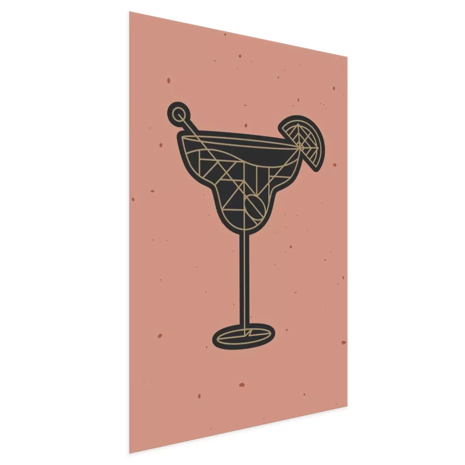 Poster Margarita-Cocktail Art Déco auf Korallenhintergrund